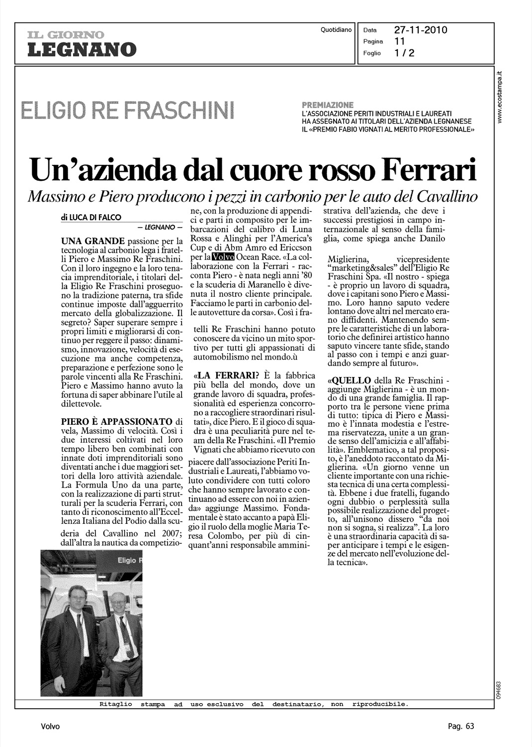 Author: DI FALCO, LUCALine: Corporate Model: Corporate Subject: Volvo Ocean Race Title: UN'AZIENDA DAL CUORE ROSSO FERRARIHighlight: COMPONENTISTICA - TEAM VOLVO OCEAN RACE