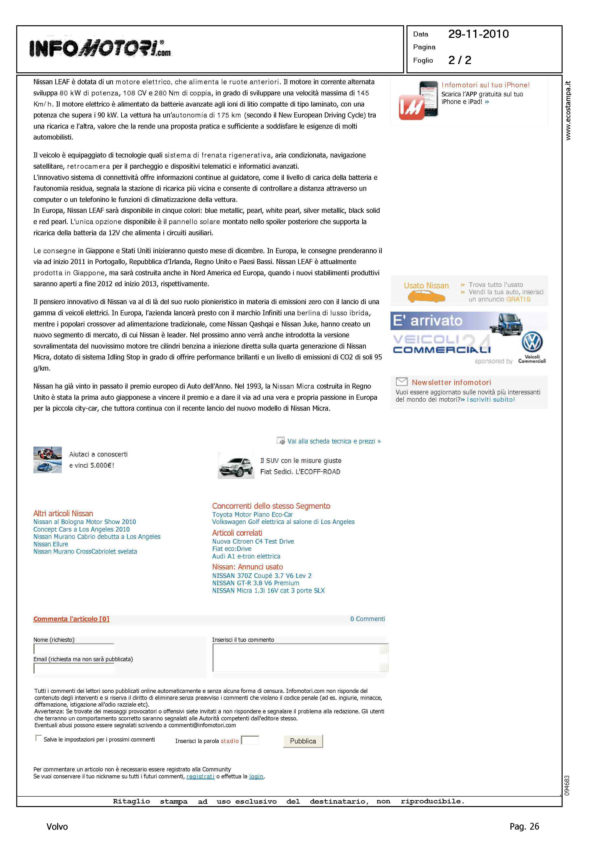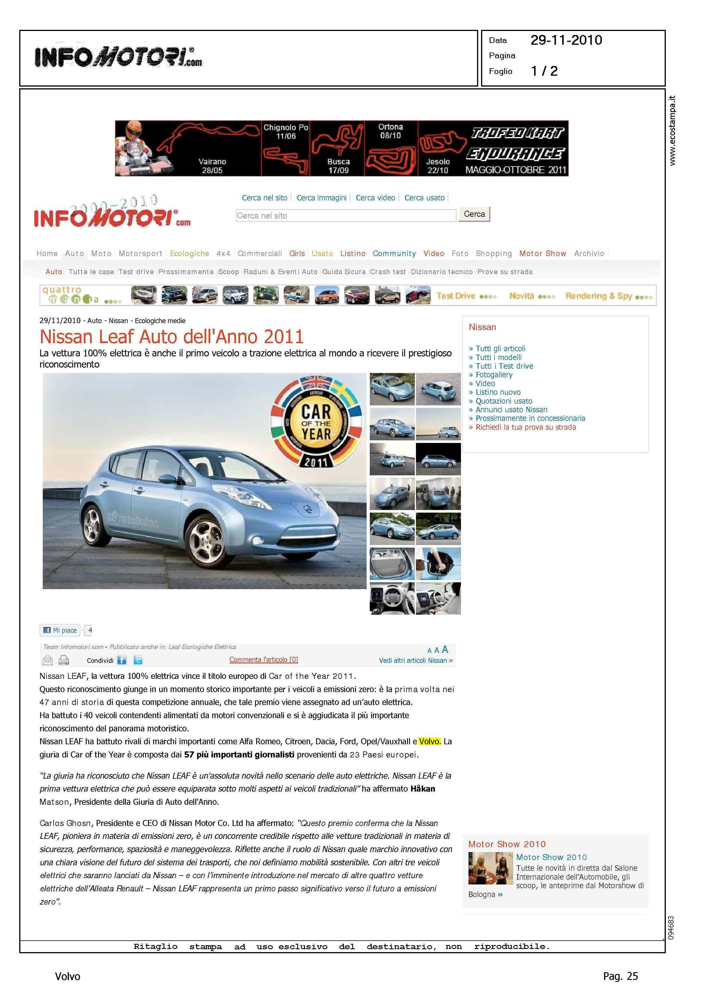 Author: Line: Corporate Model: Corporate Subject: - Title: NISSAN LEAF AUTO DELL'ANNO 2011Highlight: ELETTA L'AUTO DELL'ANNO 2011 - VOLVO S60/V60, 6/145 PUNTI