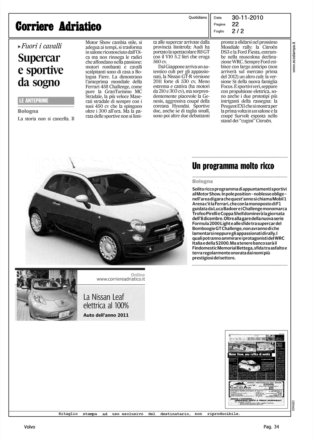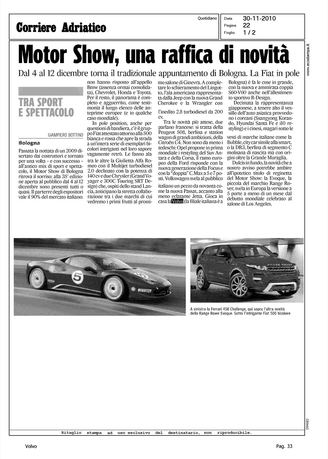 Author: BOTTINO, GIAMPIEROLine: Corporate Model: Corporate Subject: - Title: MOTOR SHOW, UNA RAFFICA DI NOVITA'Highlight: MOTORSHOW BOLOGNA - BRAND PRESENTI - VOLVO V60