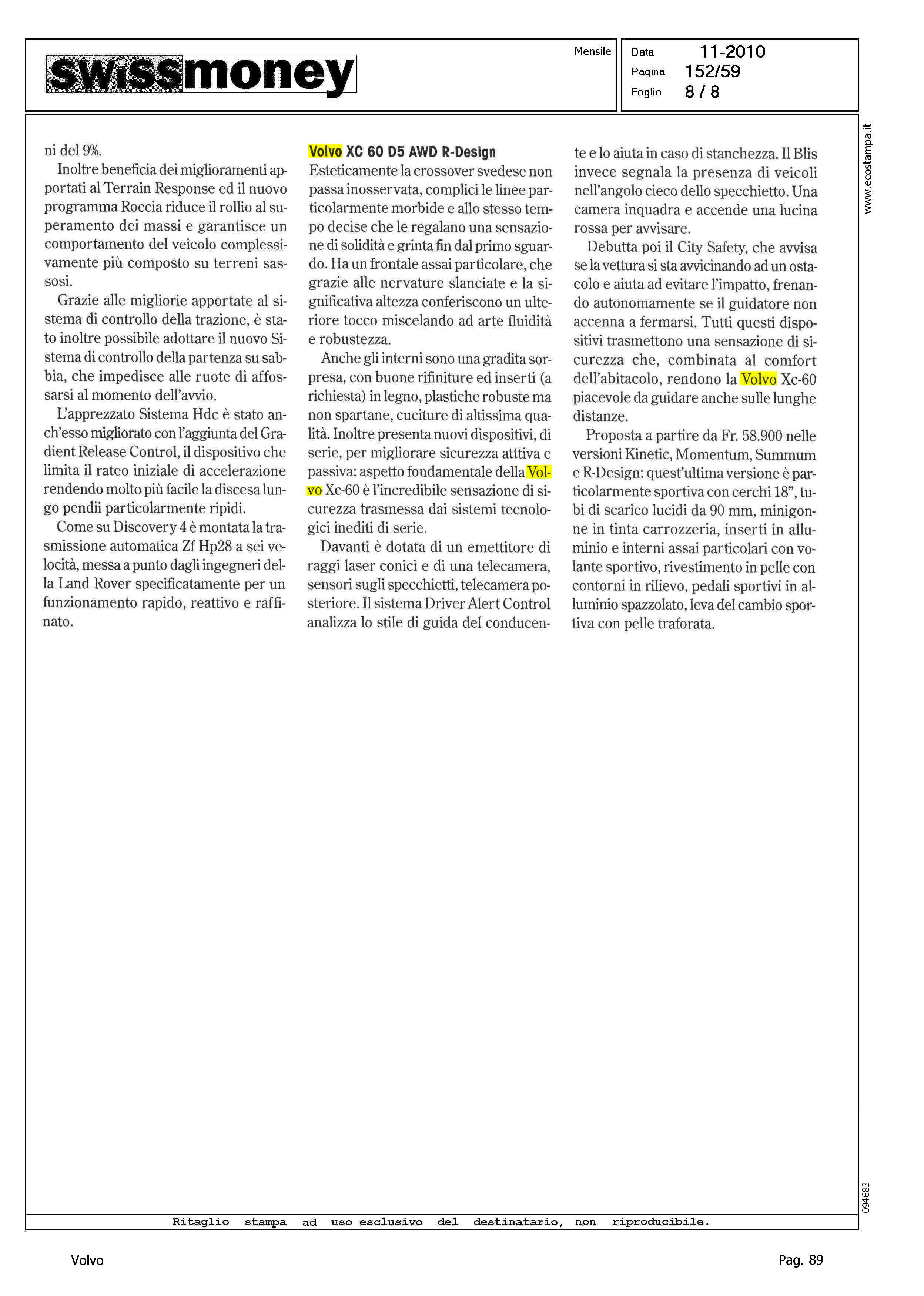 Highlight: VOLVO XC60 D5 AWD R DESIGN - SCHEDA TECNICA - PREZZO, IN FRANCHI - DESIGN - ABITACOLO - INTERNI - ACCESSORI SICUREZZA DINAMICA DI MARCIA - CITY SAFETY - ALLESTIMENTI - ACCESSORI