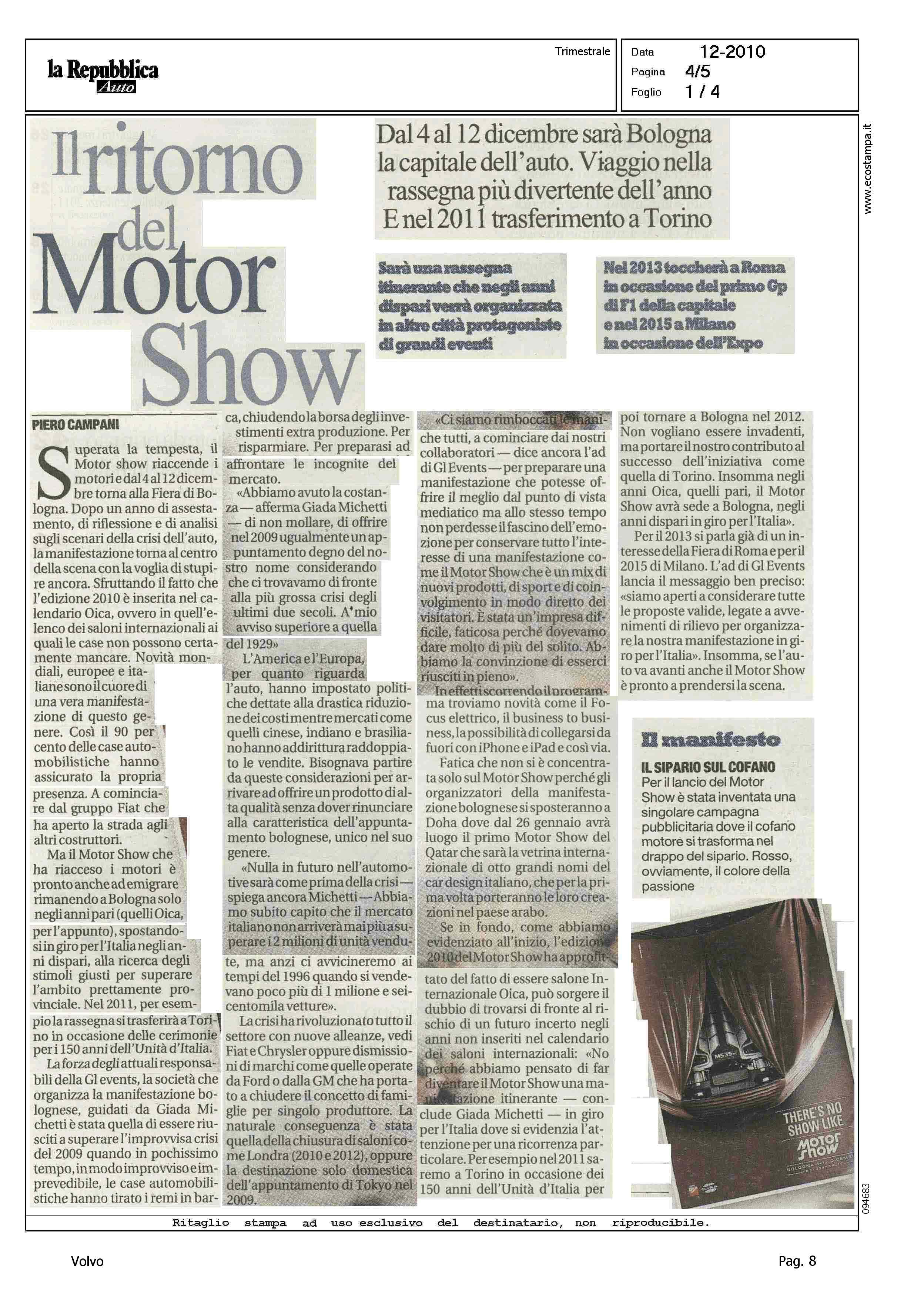 Author: CAMPANI, PIEROLine: Corporate Model: Corporate Subject: - Title: IL RITORNO DEL MOTOR SHOW - LE ANTEPRIMEHighlight: MOTORSHOW BOLOGNA - BRAND PRESENTI
