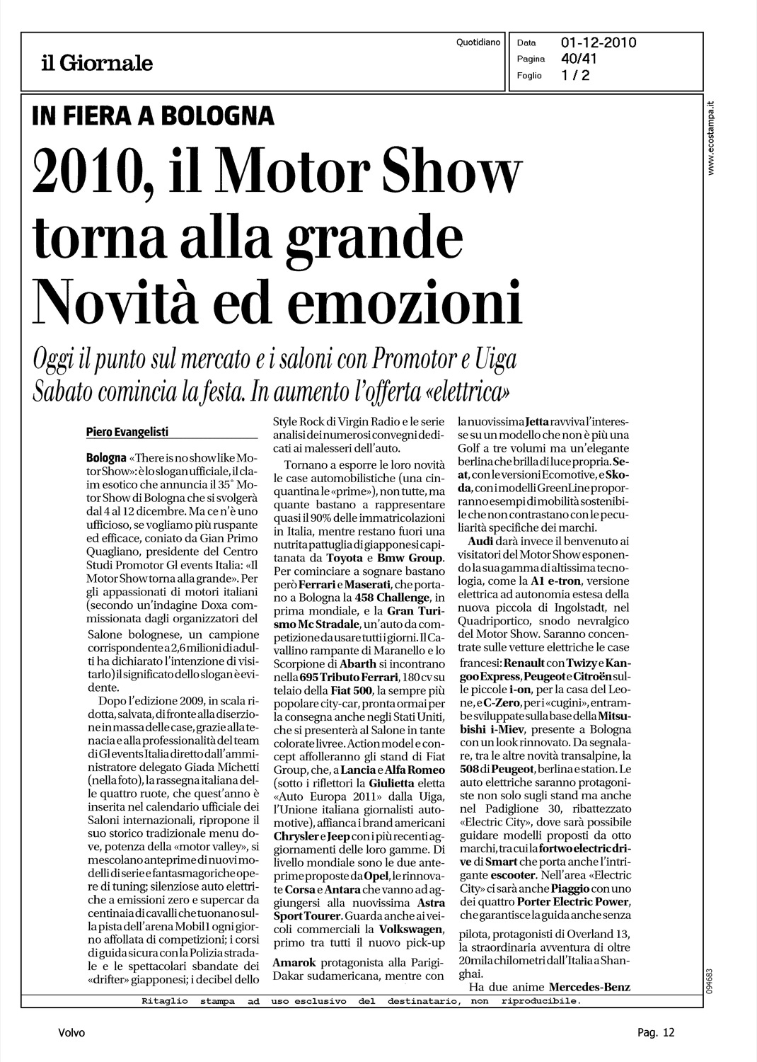 Author: EVANGELISTI, PIEROLine: Corporate Model: Corporate Subject: - Title: 2010, IL MOTOR SHOW TORNA ALLA GRANDE - NOVITA' ED EMOZIONIHighlight: MOTORSHOW BOLOGNA - BRAND PRESENTI