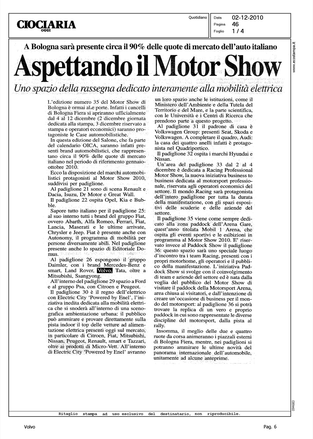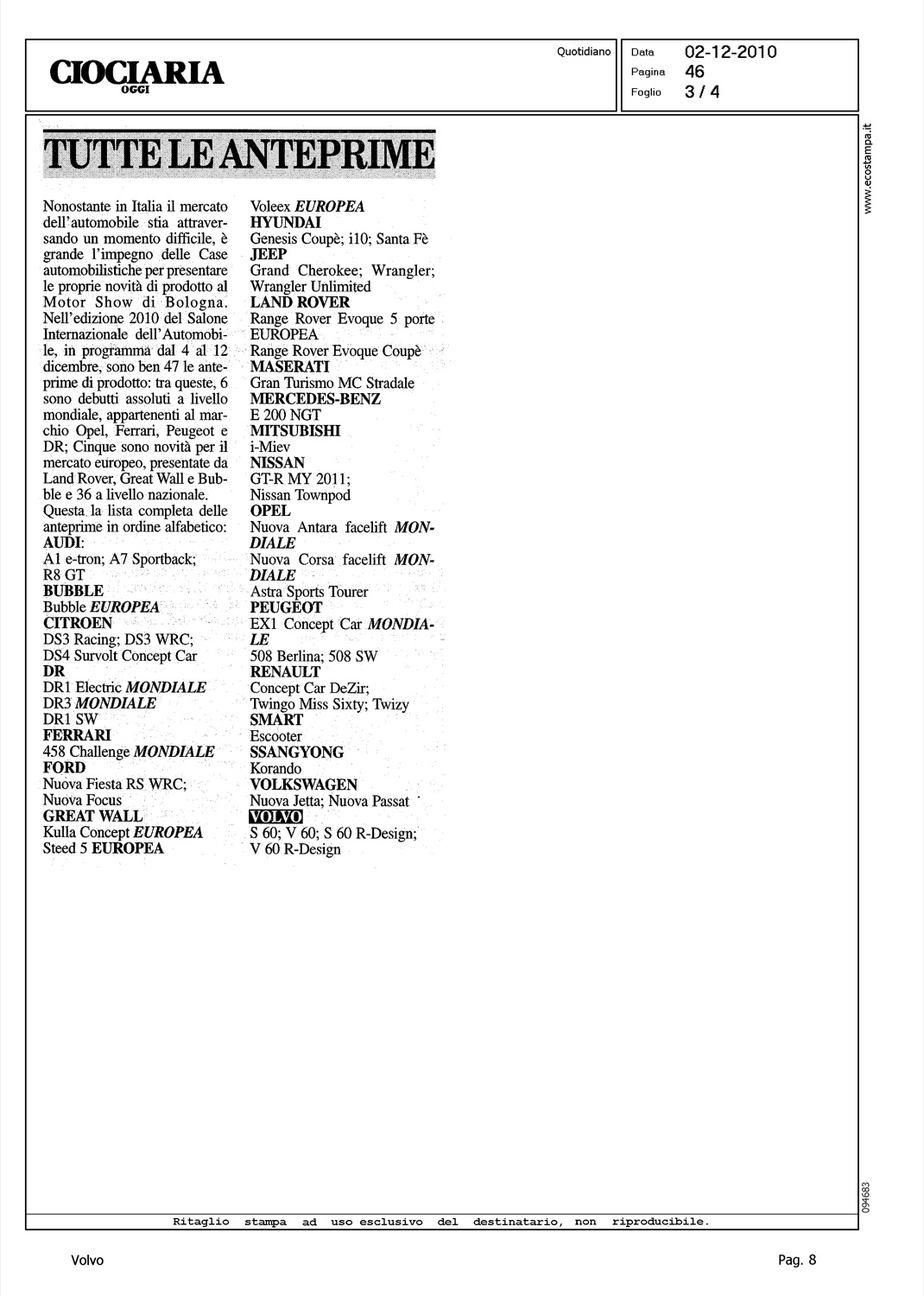 Author: Line: Corporate Model: Corporate Subject: - Title: TUTTE LE ANTEPRIMEHighlight: MOTORSHOW BOLOGNA - BRAND PRESENTI - VOLVO S60 - VOLVO V60
