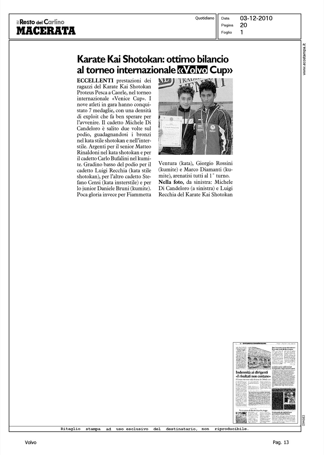 Author: Line: Corporate Model: Corporate Subject: - Title: KARATE KAI SHOTOKAN: OTTIMO BILANCIO AL TORNEO INTERNAZIONALE 'VOLVO CUP'Highlight: KARATE, VOLVO CUP