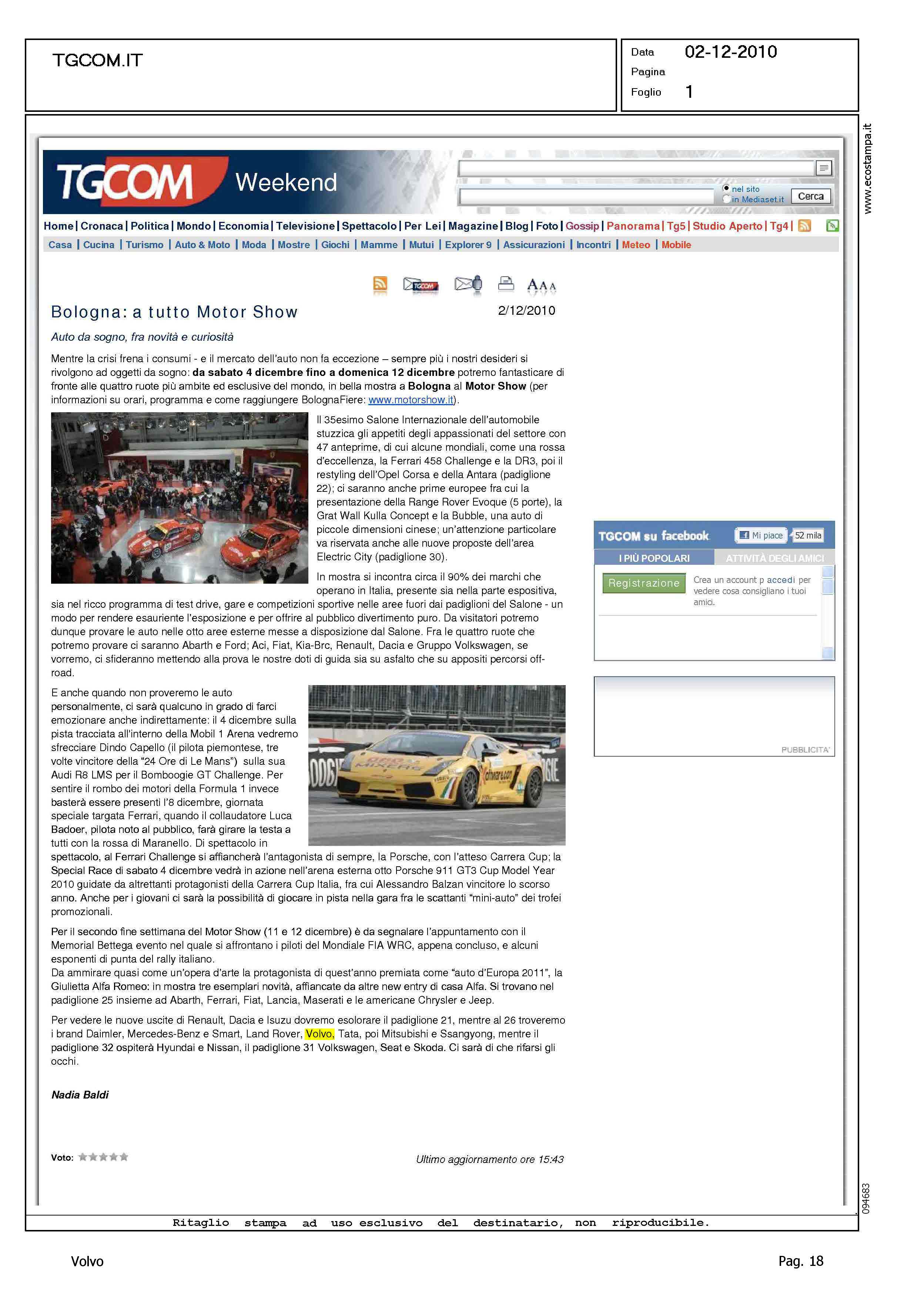 Author: Line: Corporate Model: Corporate Subject: - Title: BOLOGNA: A TUTTO MOTOR SHOWHighlight: MOTORSHOW BOLOGNA - BRAND PRESENTI - VOLVO S60 - VOLVO V60