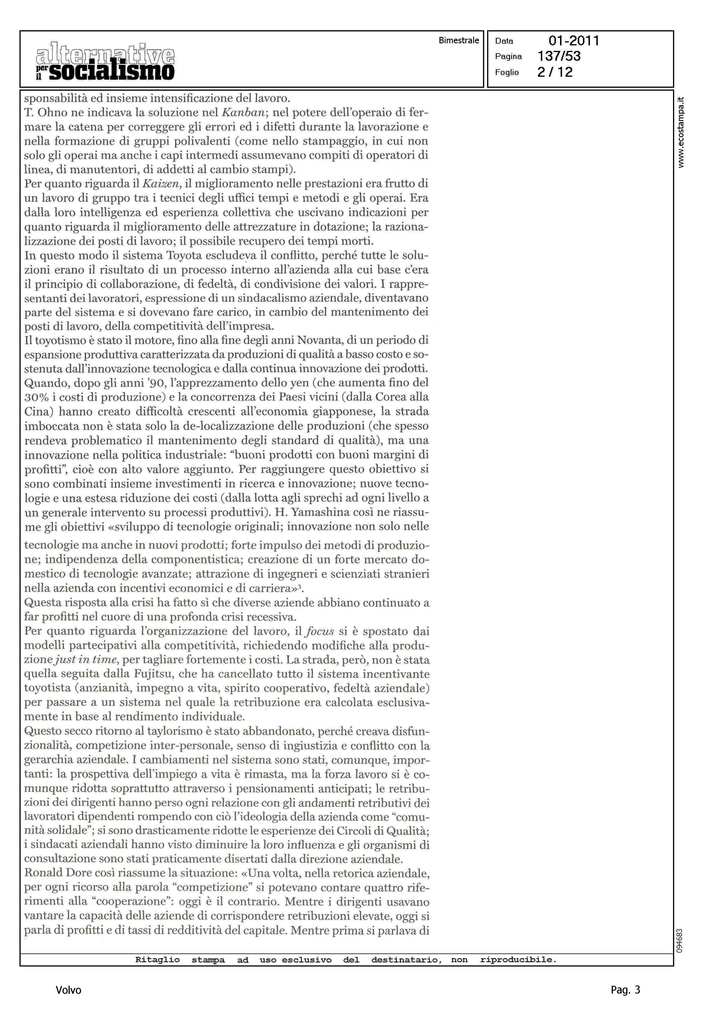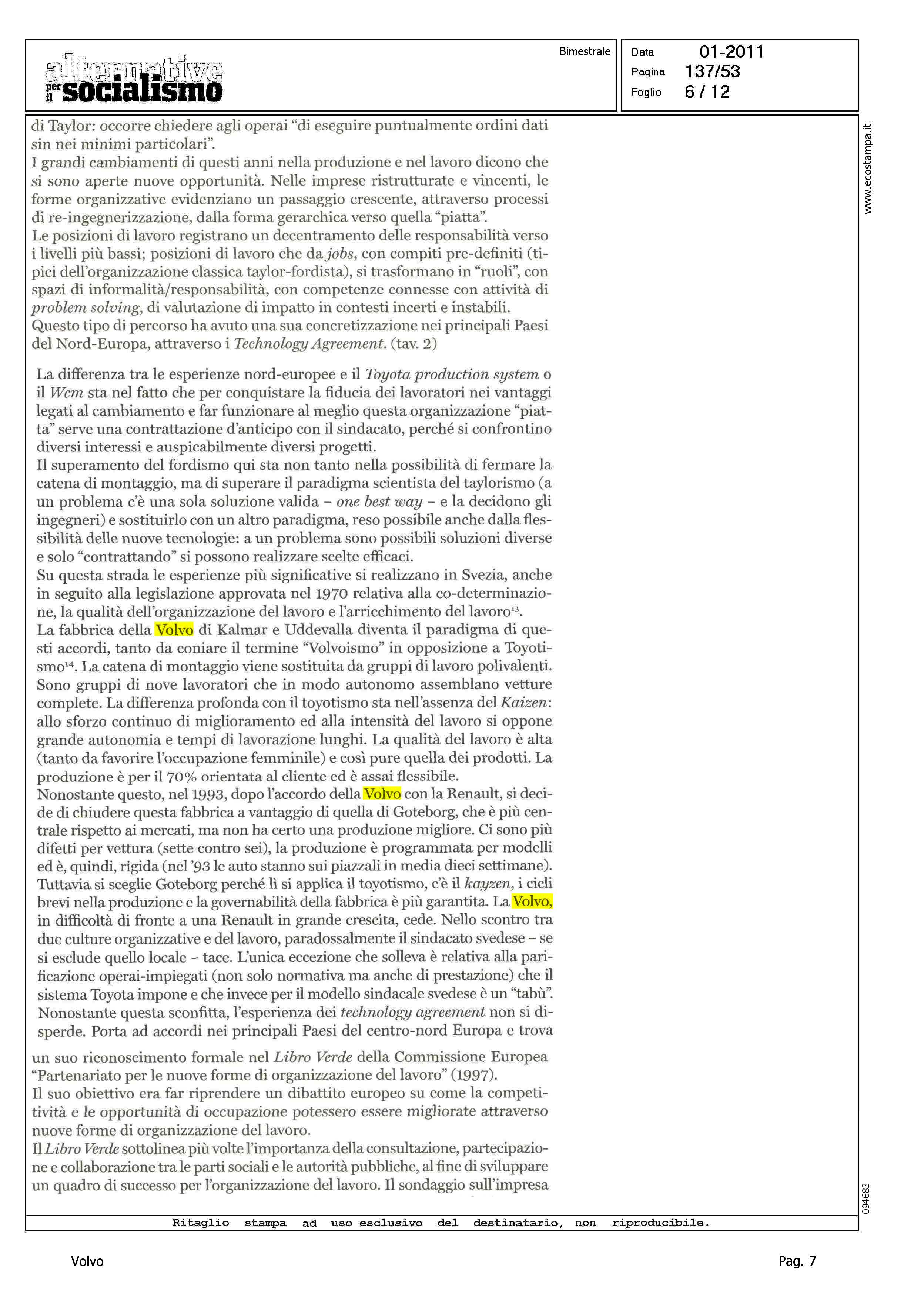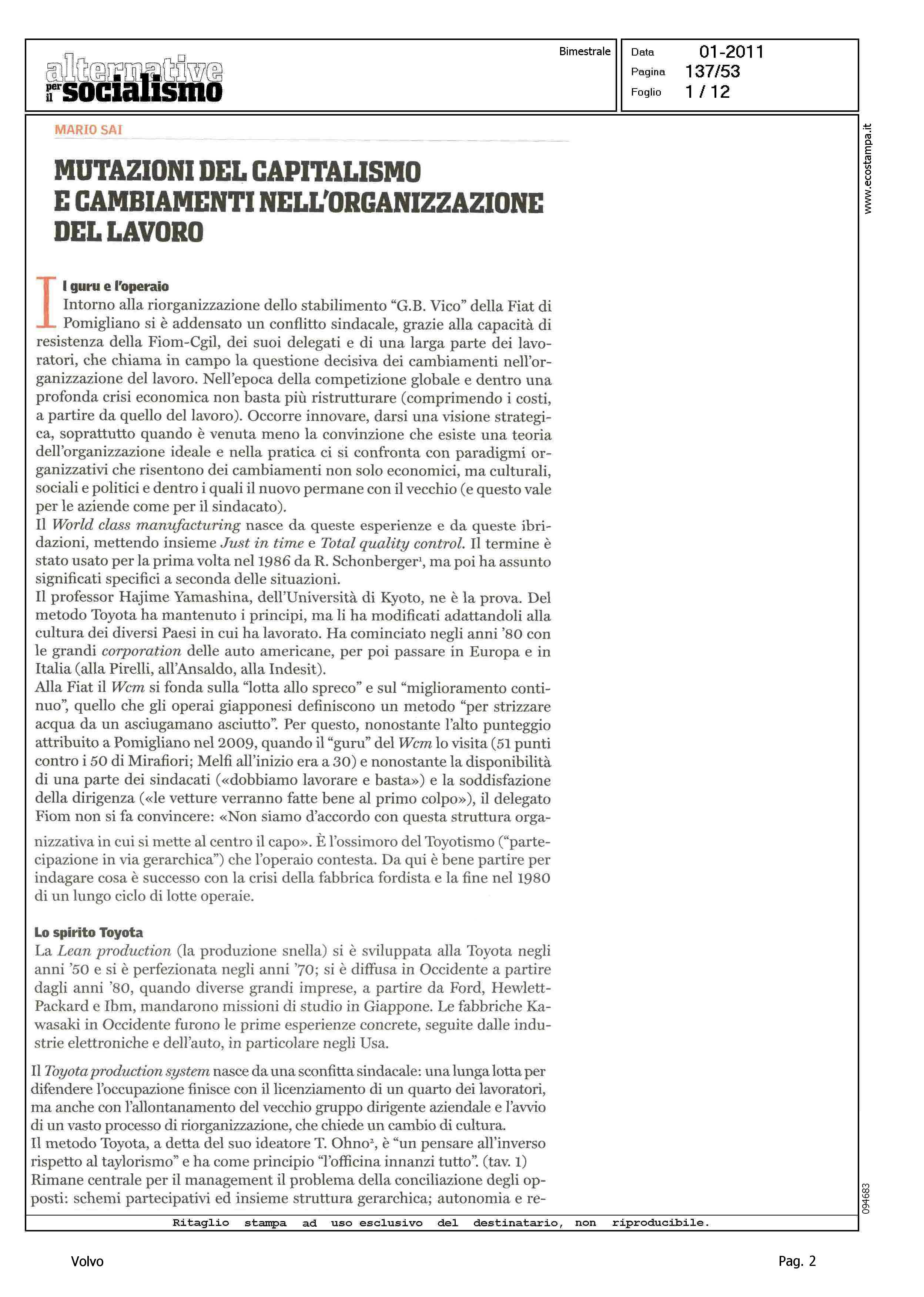 Title: MUTAZIONI DEL CAPITALISMO E CAMBIAMENTI NELL'ORGANIZZAZIONE DEL LAVORO - IL MODELLO VOLVO E LA VIA EUROPEA ALLA CONTRATTAZIONE D'ANTICIPO