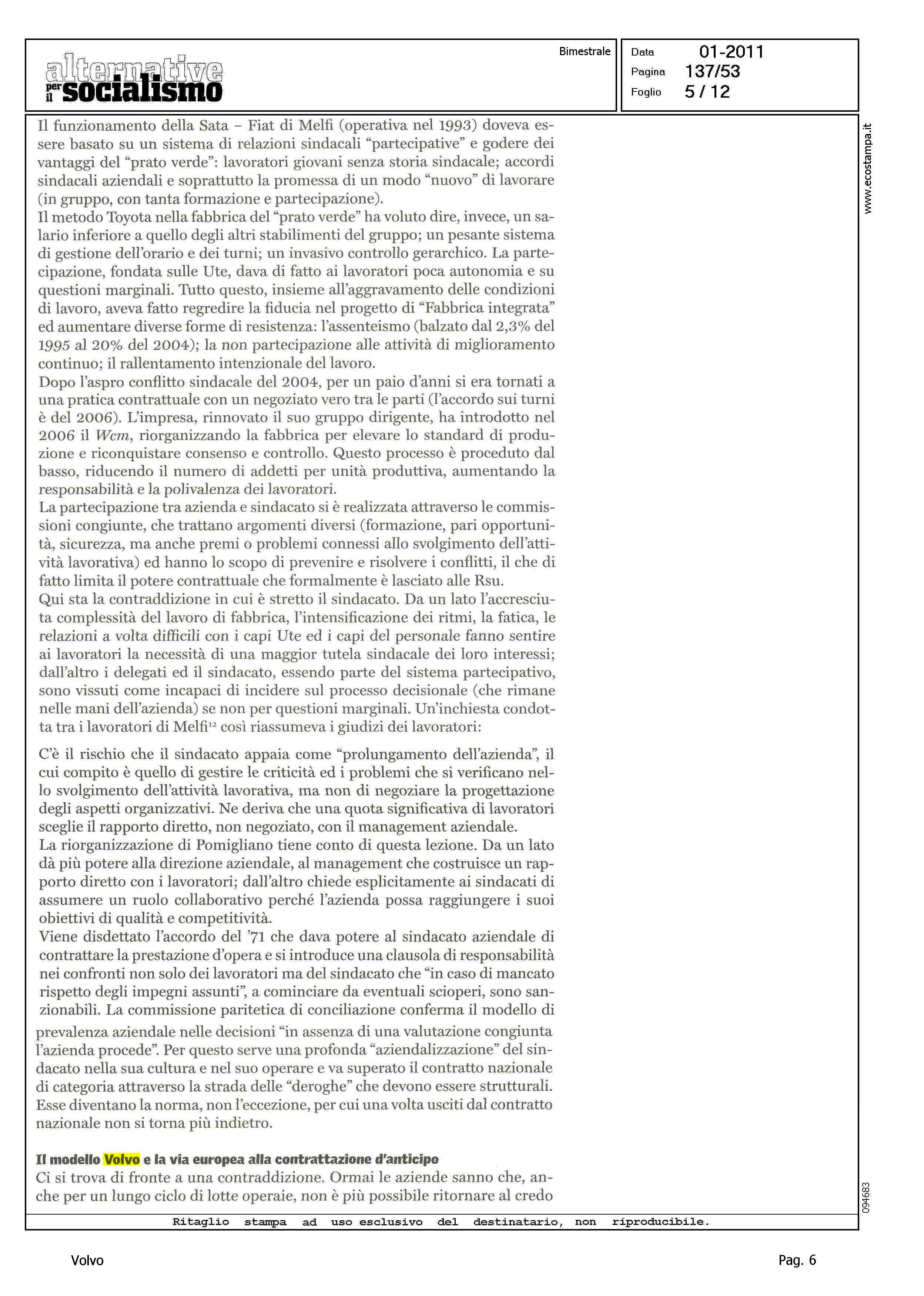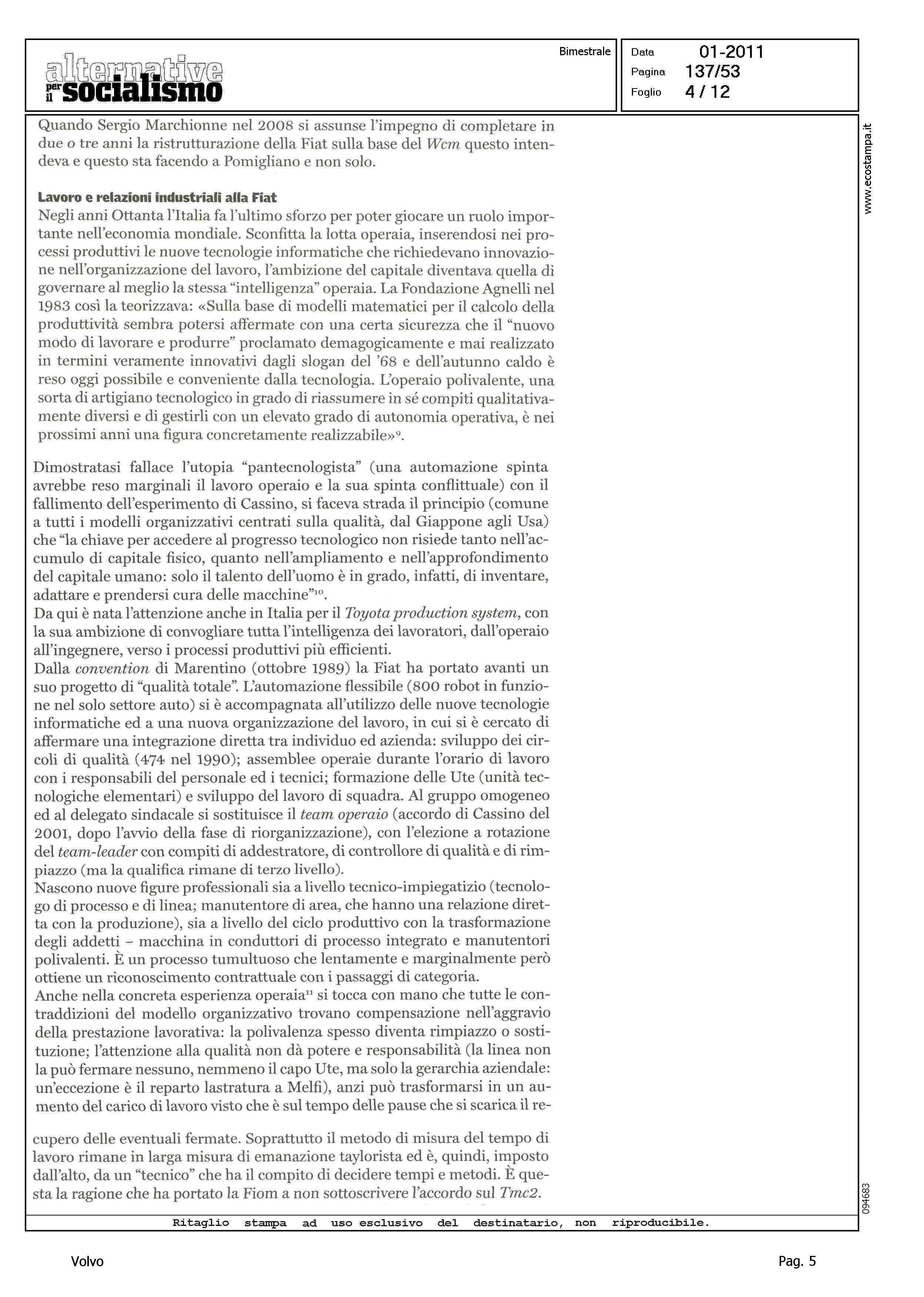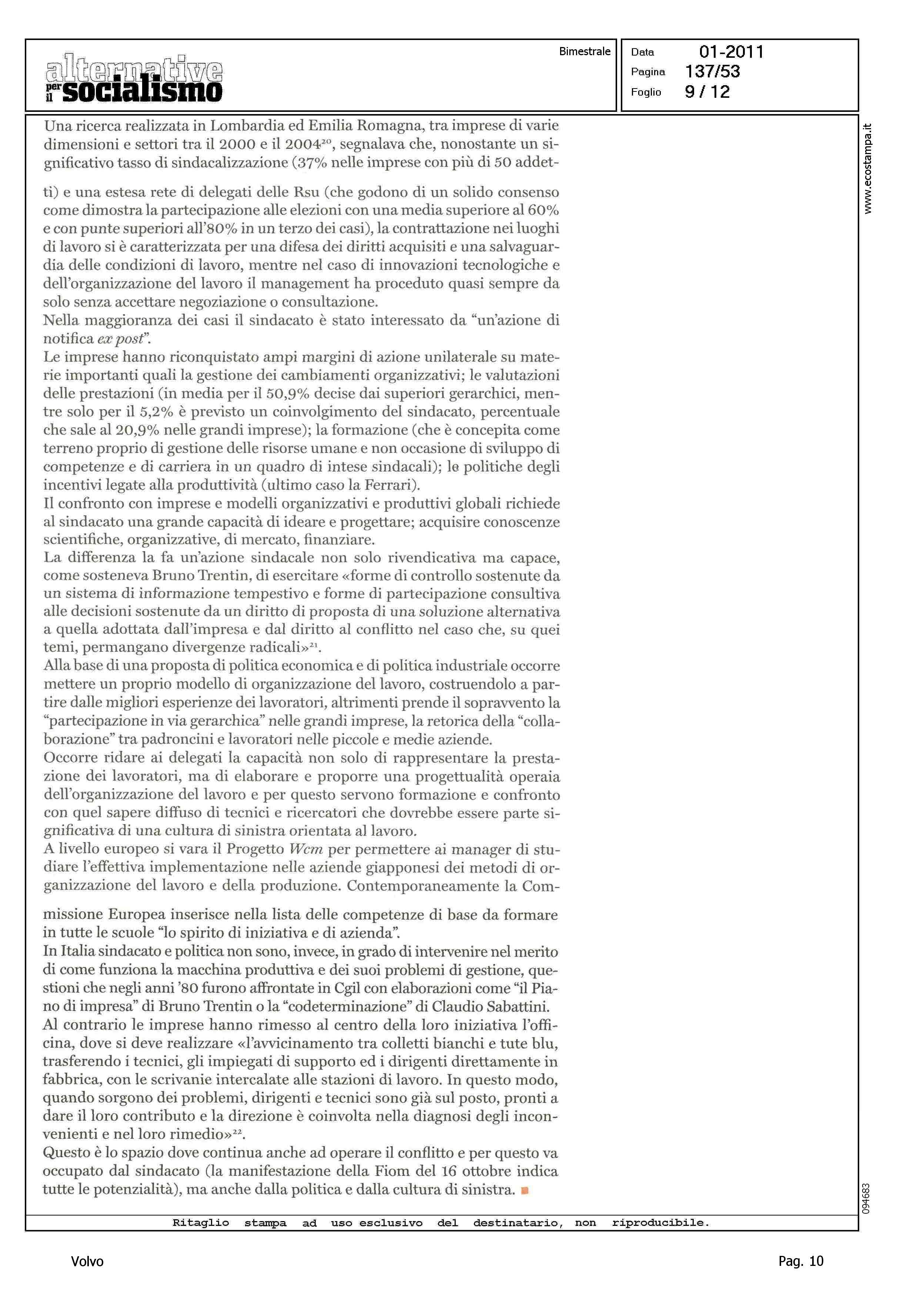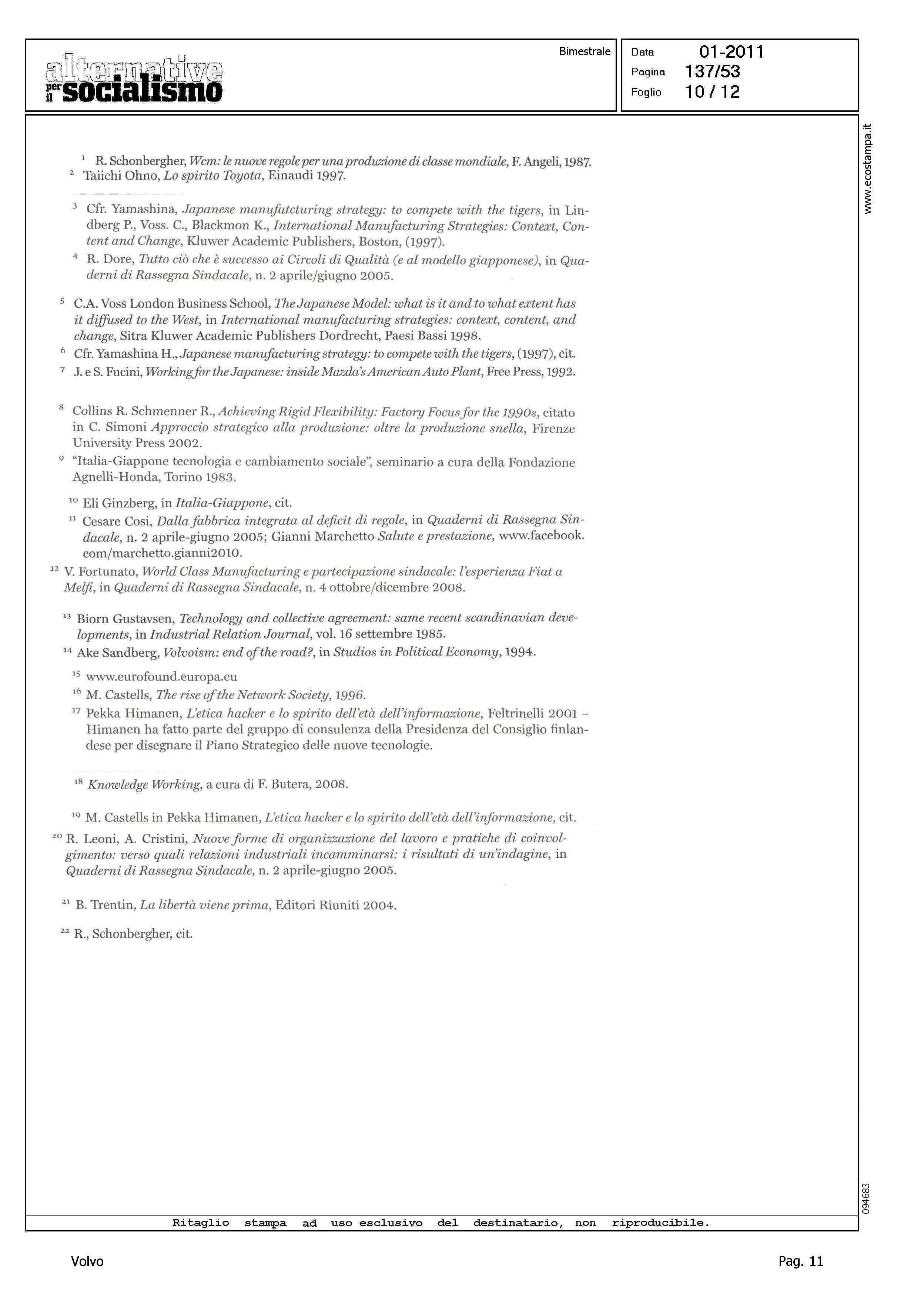 Title: MUTAZIONI DEL CAPITALISMO E CAMBIAMENTI NELL'ORGANIZZAZIONE DEL LAVORO - IL MODELLO VOLVO E LA VIA EUROPEA ALLA CONTRATTAZIONE D'ANTICIPO