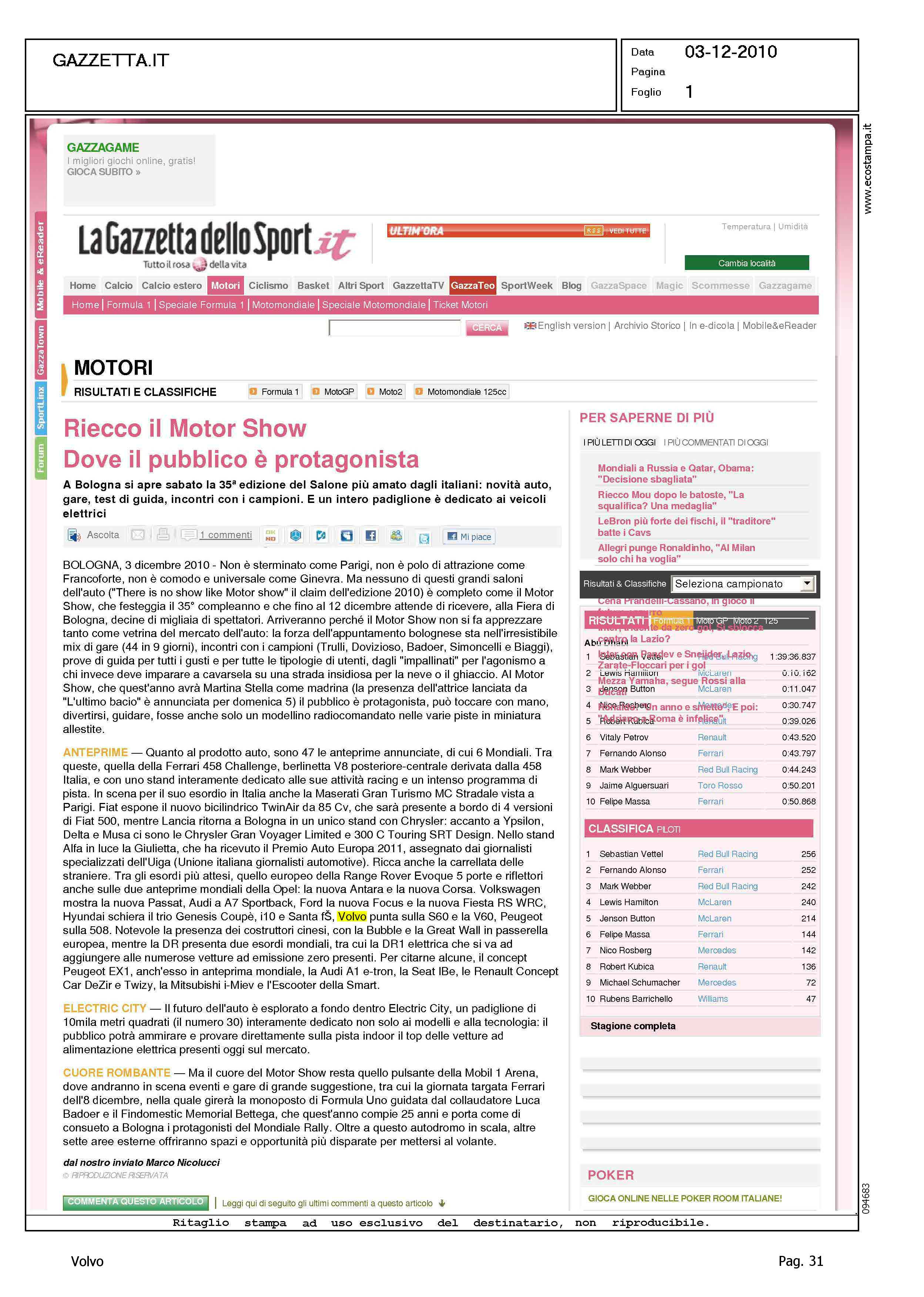 Author: Line: Corporate Model: Corporate Subject: - Title: RIECCO IL MOTORSHOW DOVE IL PUBBLICO E' PROTAGONISTAHighlight: MOTORSHOW BOLOGNA - BRAND PRESENTI - VOLVO S60 - VOLVO V60