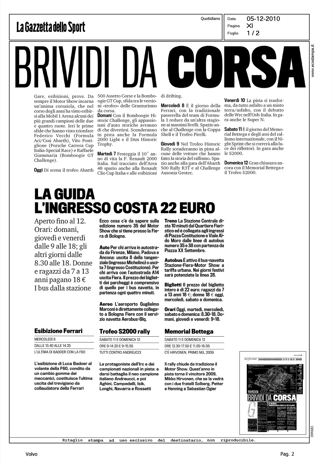 Author: Line: Corporate Model: Corporate Subject: - Title: DOVE TROVARE LE AUTOHighlight: MOTORSHOW BOLOGNA - BRAND PRESENTI - VOLVO S60 - VOLVO V60
