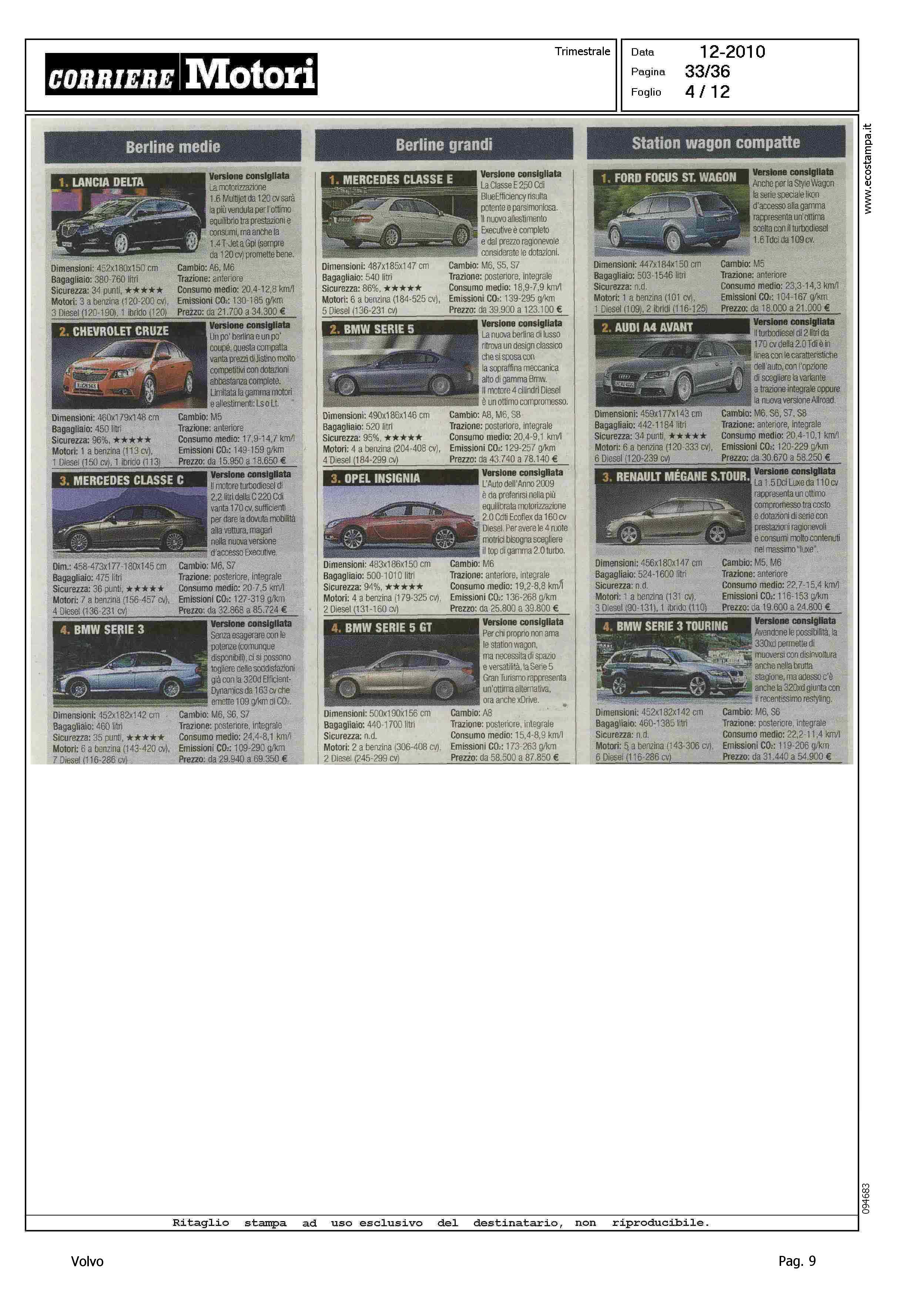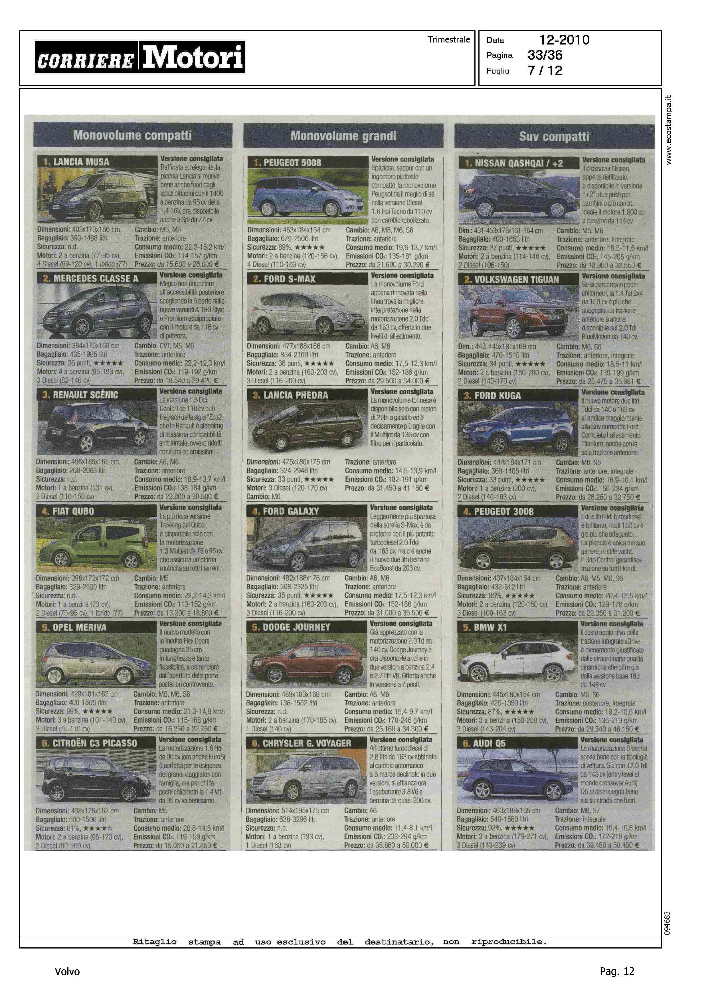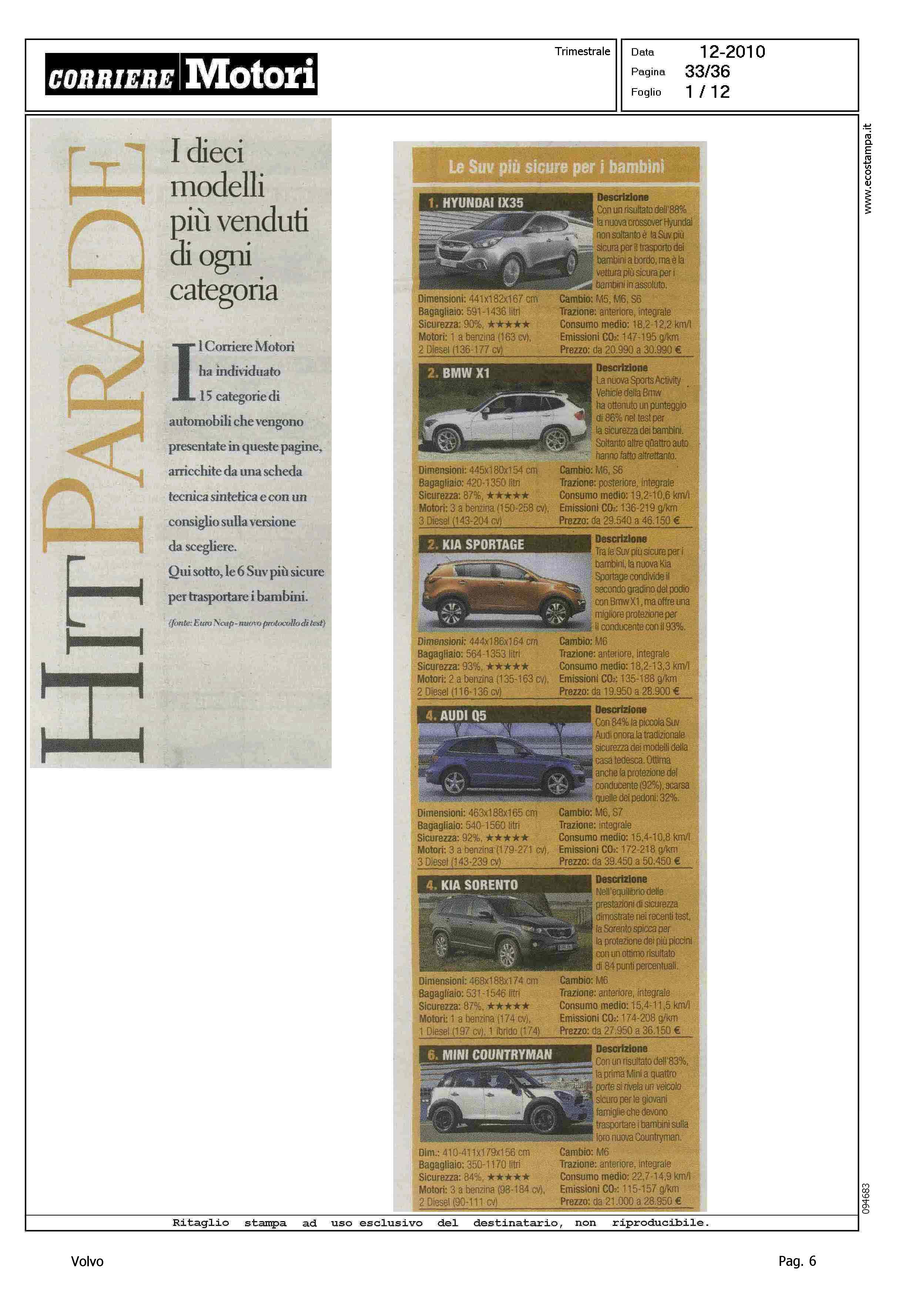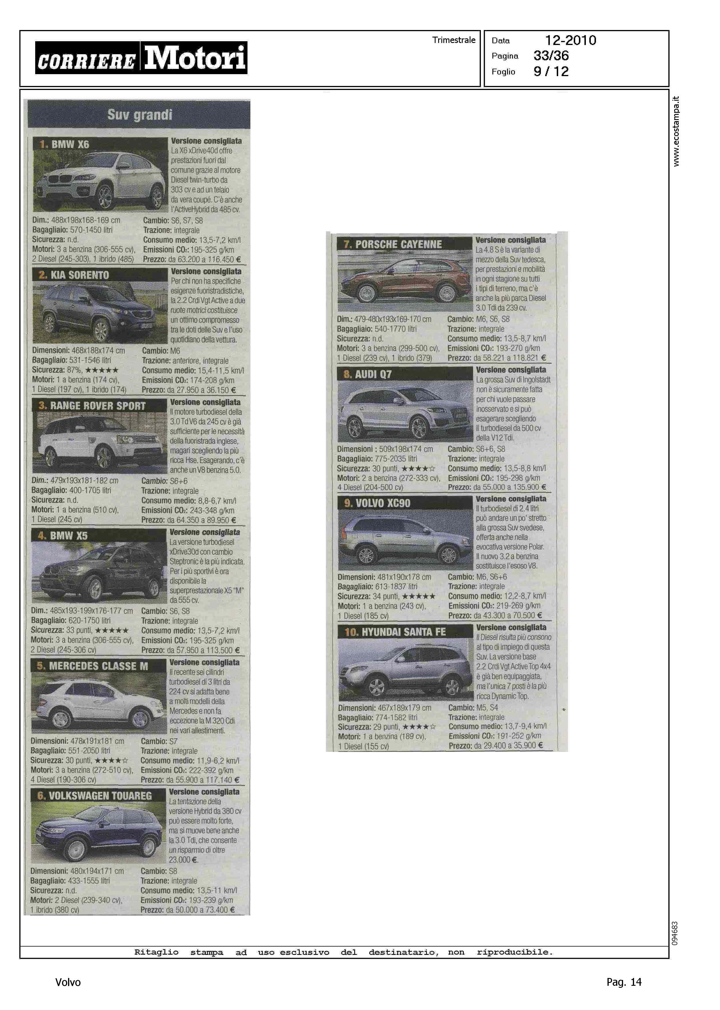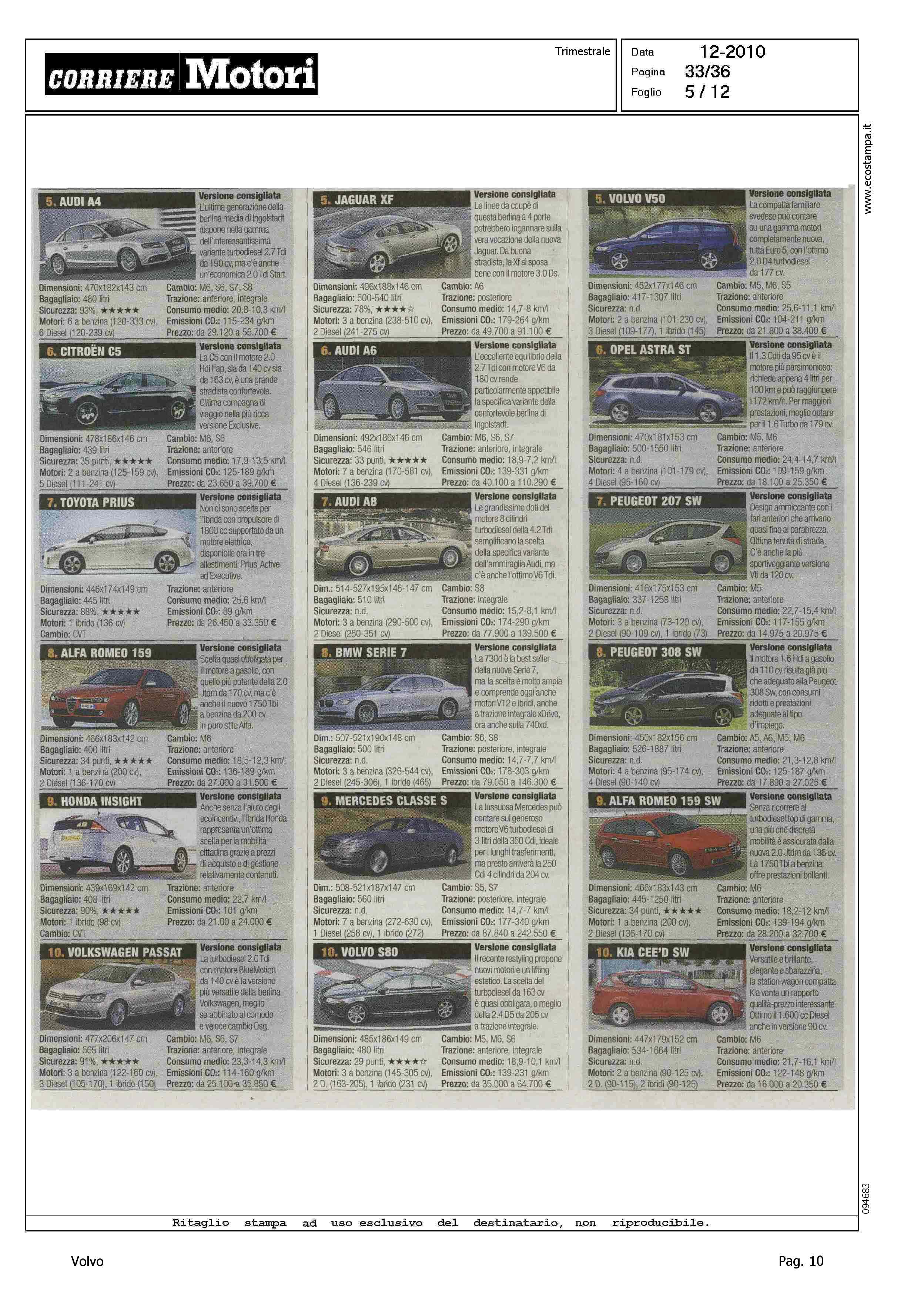 Highlight: HIT PARADE - MODELLI PIU' VENDUTI PER CATEGORIA - BERLINE GRANDI, S80, 10/10 - STATION WAGON COMPATTE, V50, 5/10 - SUV GRANDI, XC90, 9/10 - PER CIASCUNA, SCHEDA CON VERSIONE CONSIGLIATA, PRINCIPALI CARATTERISTICHE TECNICHE