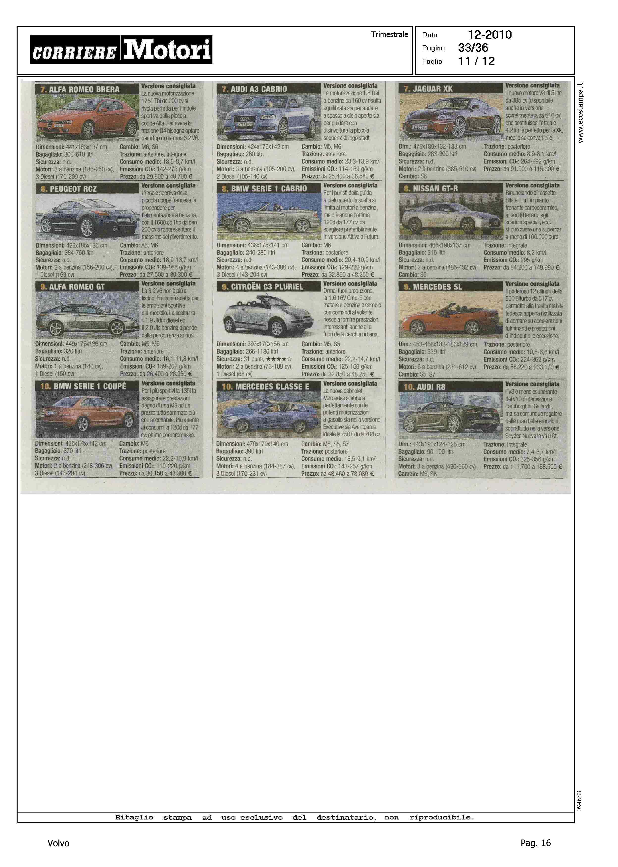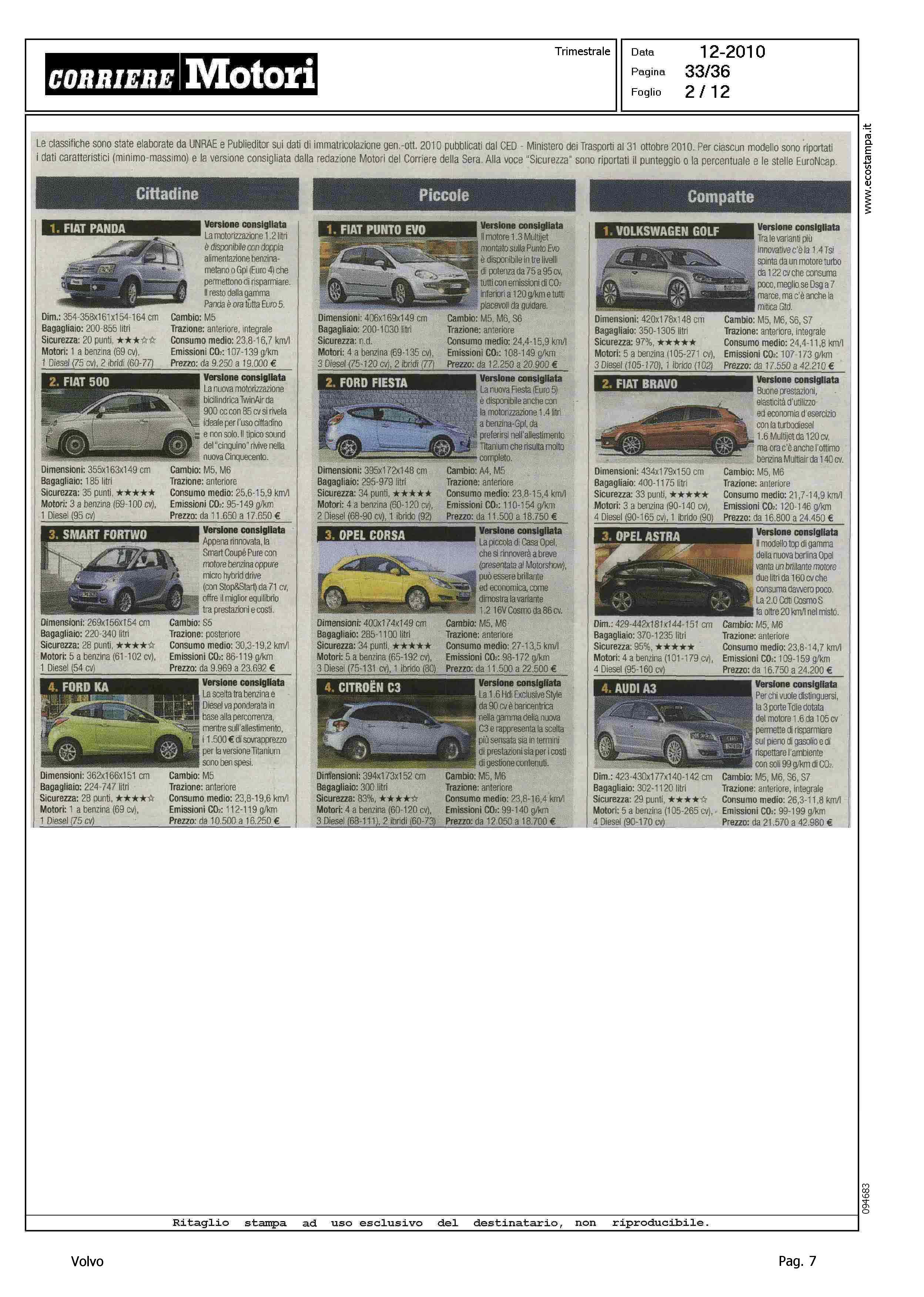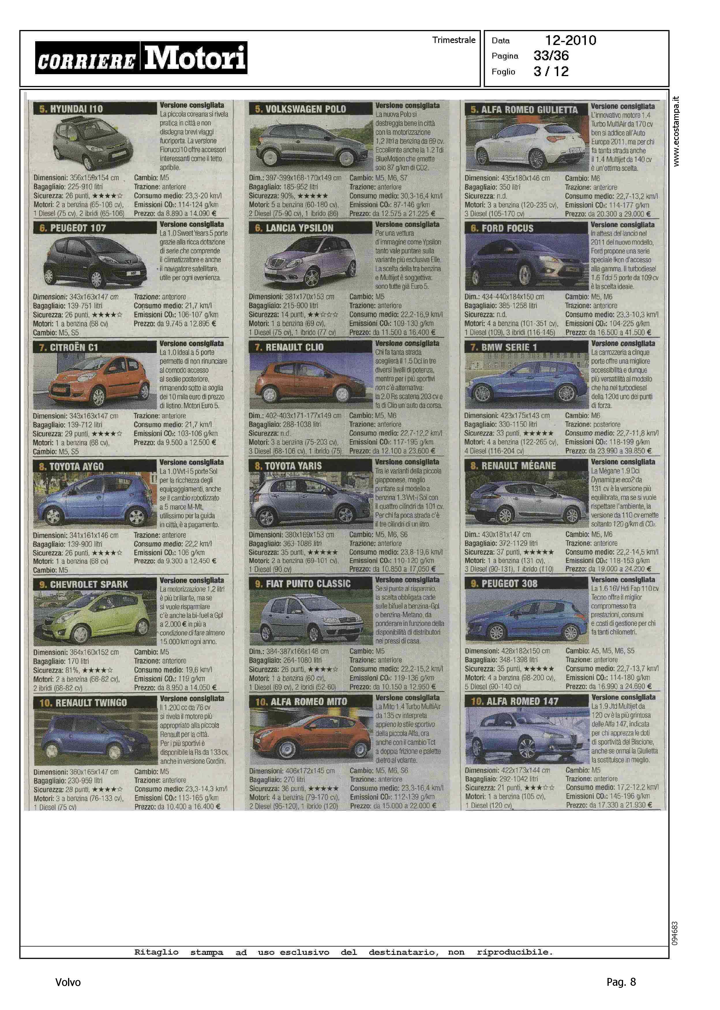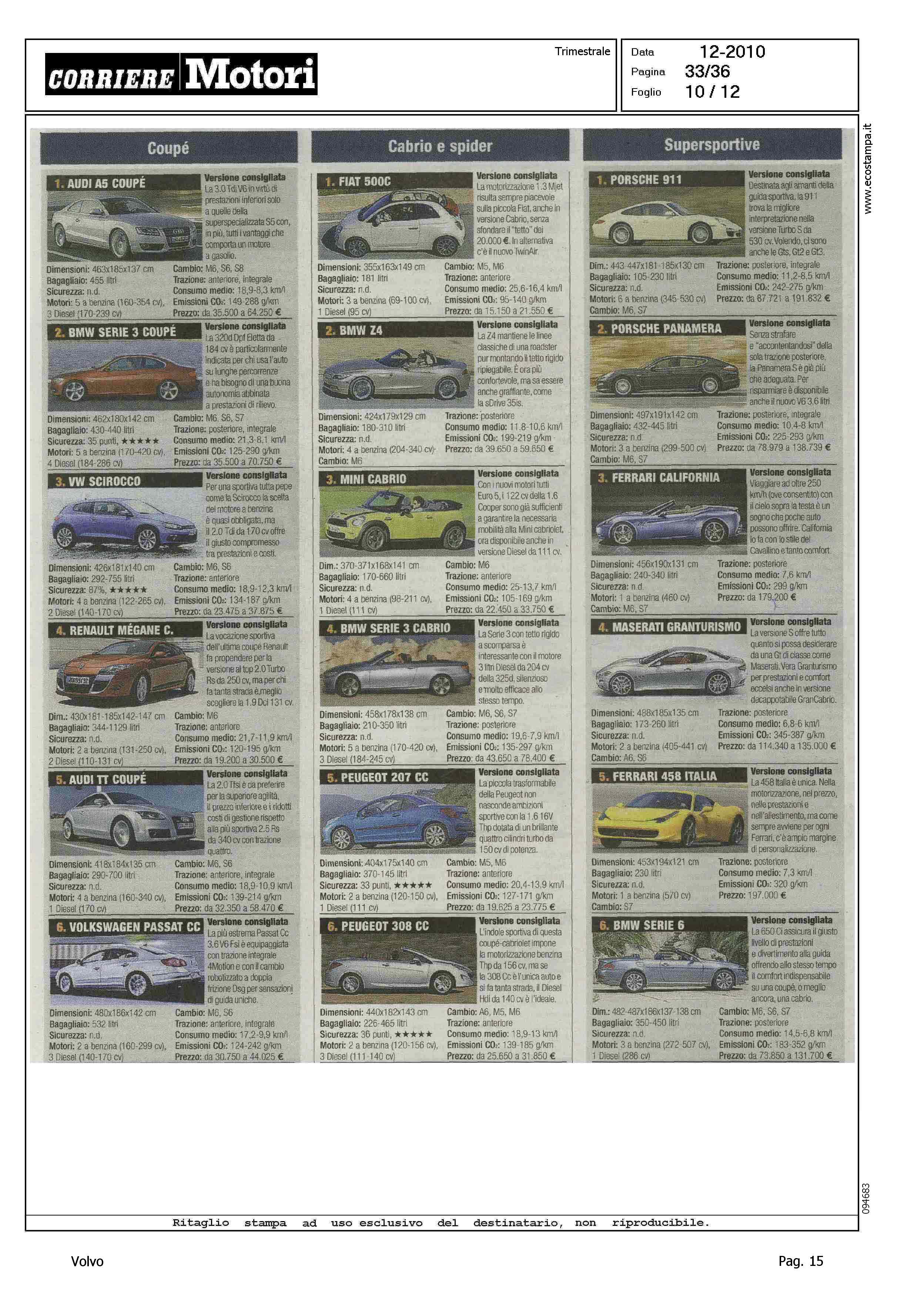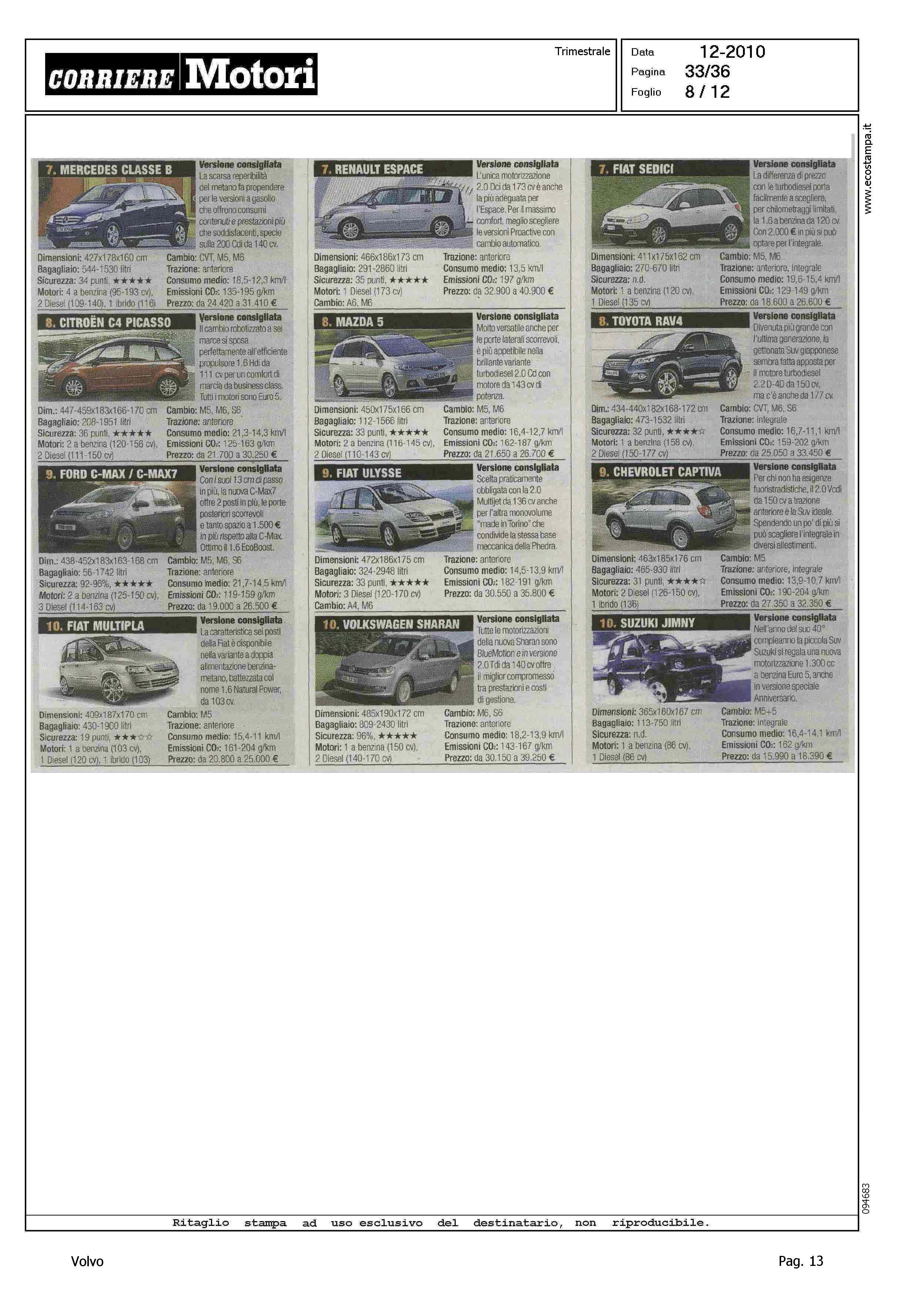 Highlight: HIT PARADE - MODELLI PIU' VENDUTI PER CATEGORIA - BERLINE GRANDI, S80, 10/10 - STATION WAGON COMPATTE, V50, 5/10 - SUV GRANDI, XC90, 9/10 - PER CIASCUNA, SCHEDA CON VERSIONE CONSIGLIATA, PRINCIPALI CARATTERISTICHE TECNICHE