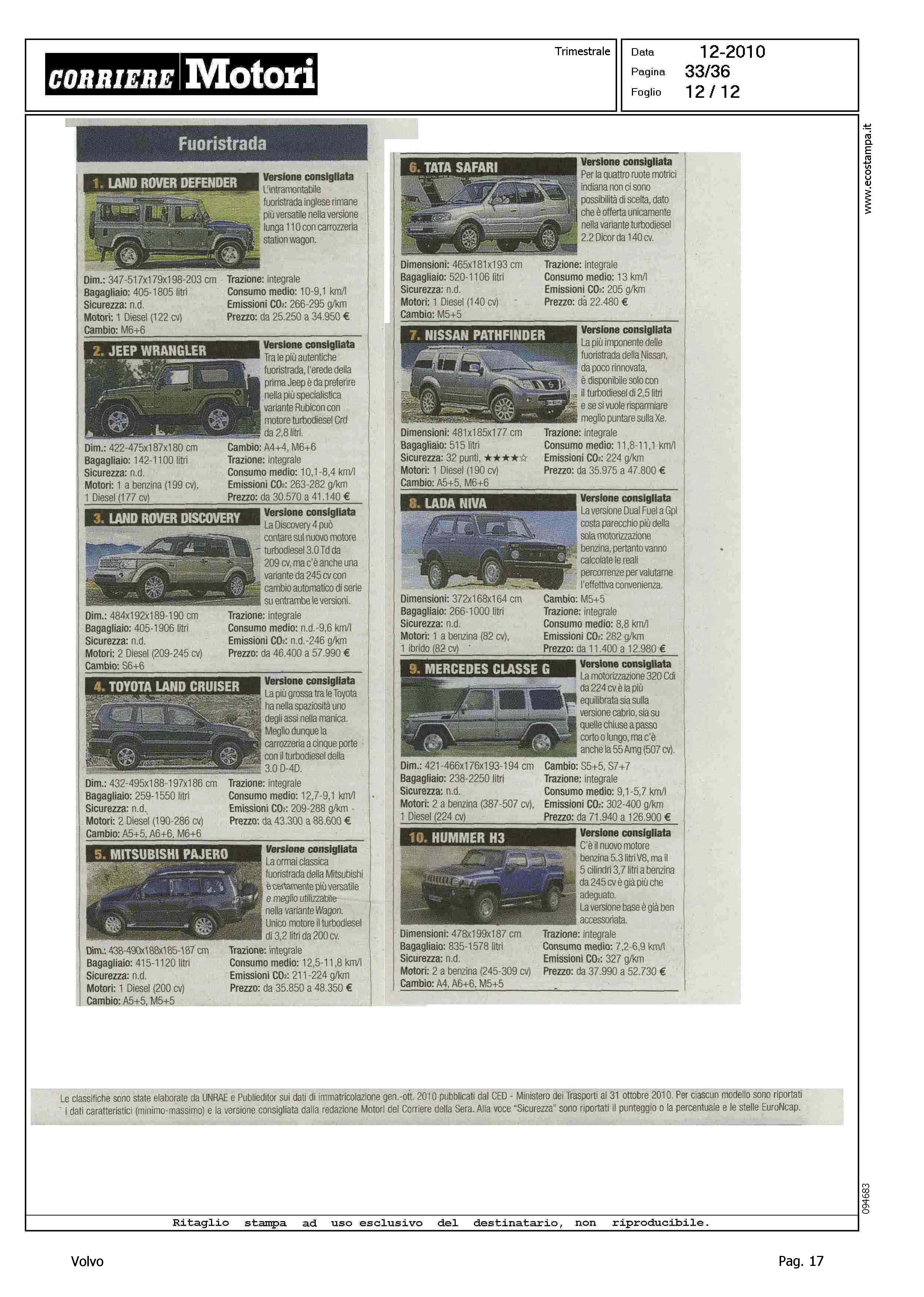 Title: HIT PARADE -I DIECI MODELLI PIU' VENDUTI DI OGNI CATEGORIA