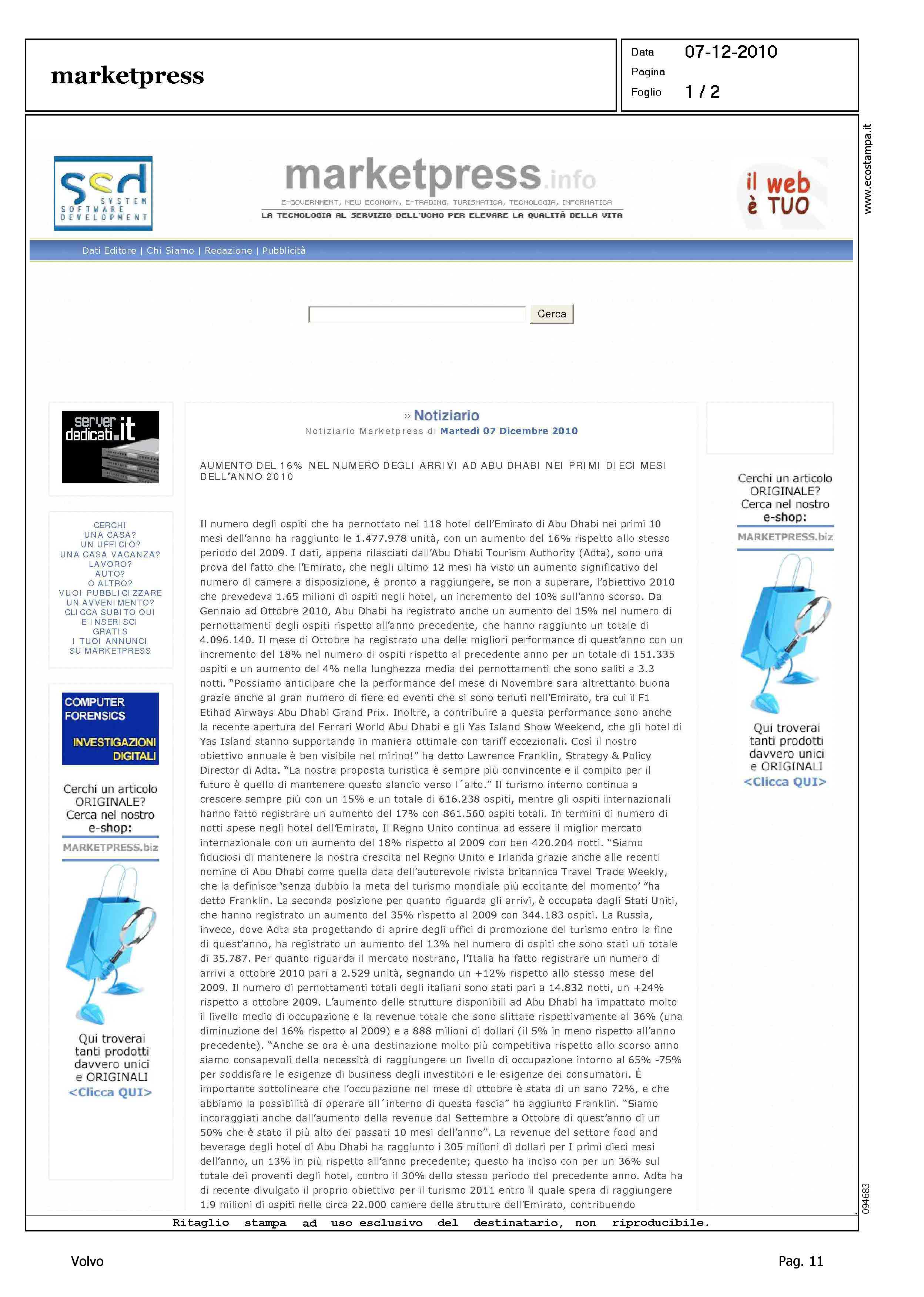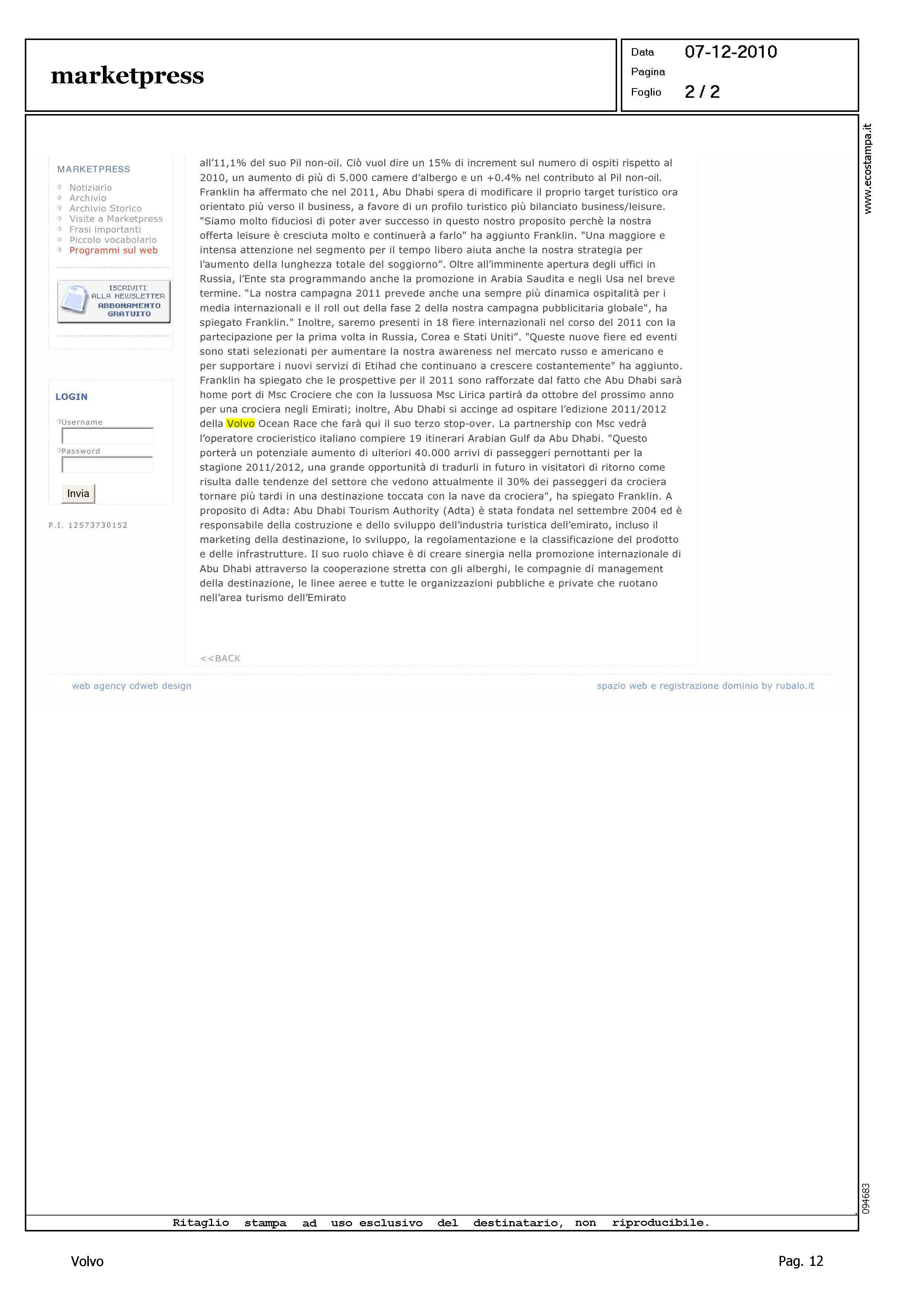 Author: Line: Corporate Model: Corporate Subject: Volvo Ocean Race Title: AUMENTO DEL 16% NEL NUMERO DEGLI ARRIVI AD ABU DAHBI NEI PRIMI DIECI MESI DELL'ANNO 2010Highlight: VOLVO OCEAN RACE - REGATA 2011-12 - ABU DAHBI