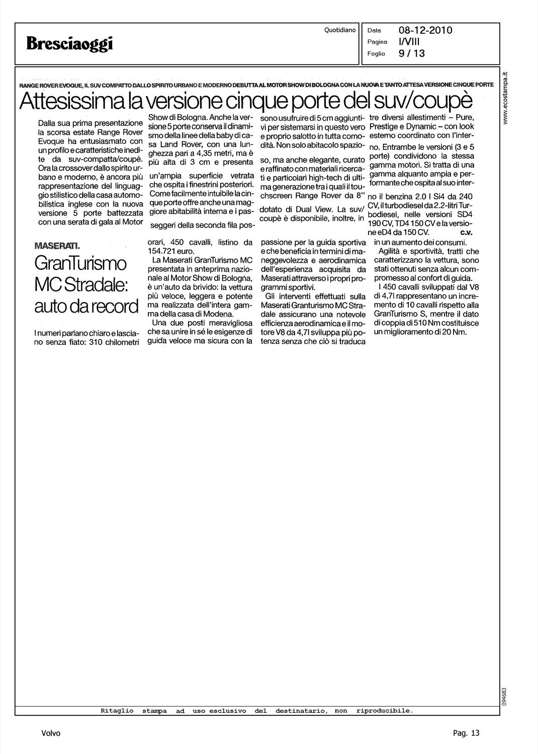 Author: Line: Corporate Model: Corporate Subject: - Title: MOTORSHOW DI BOLOGNA 2010Highlight: VOLVO - MOTOR SHOW - BOLOGNA