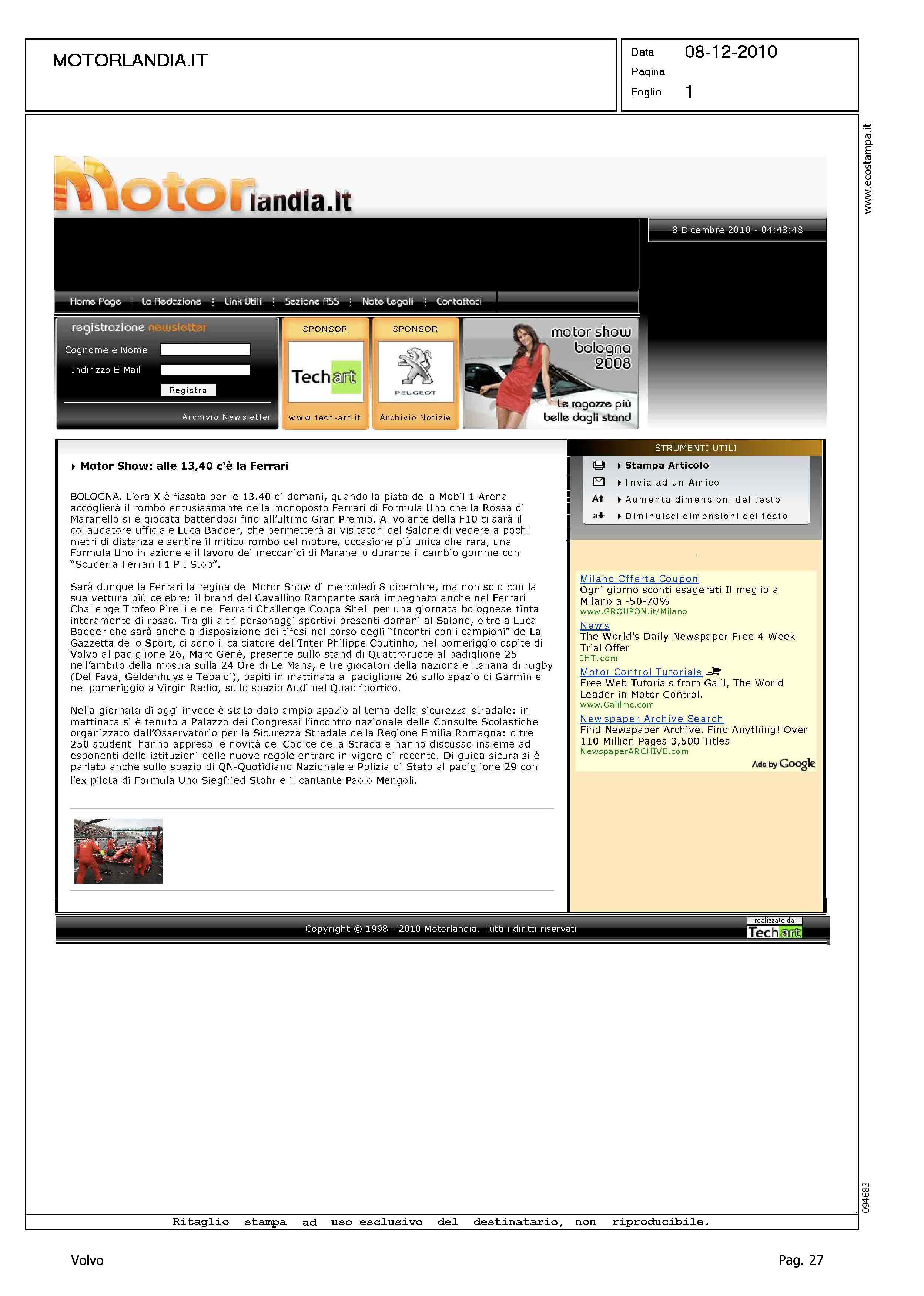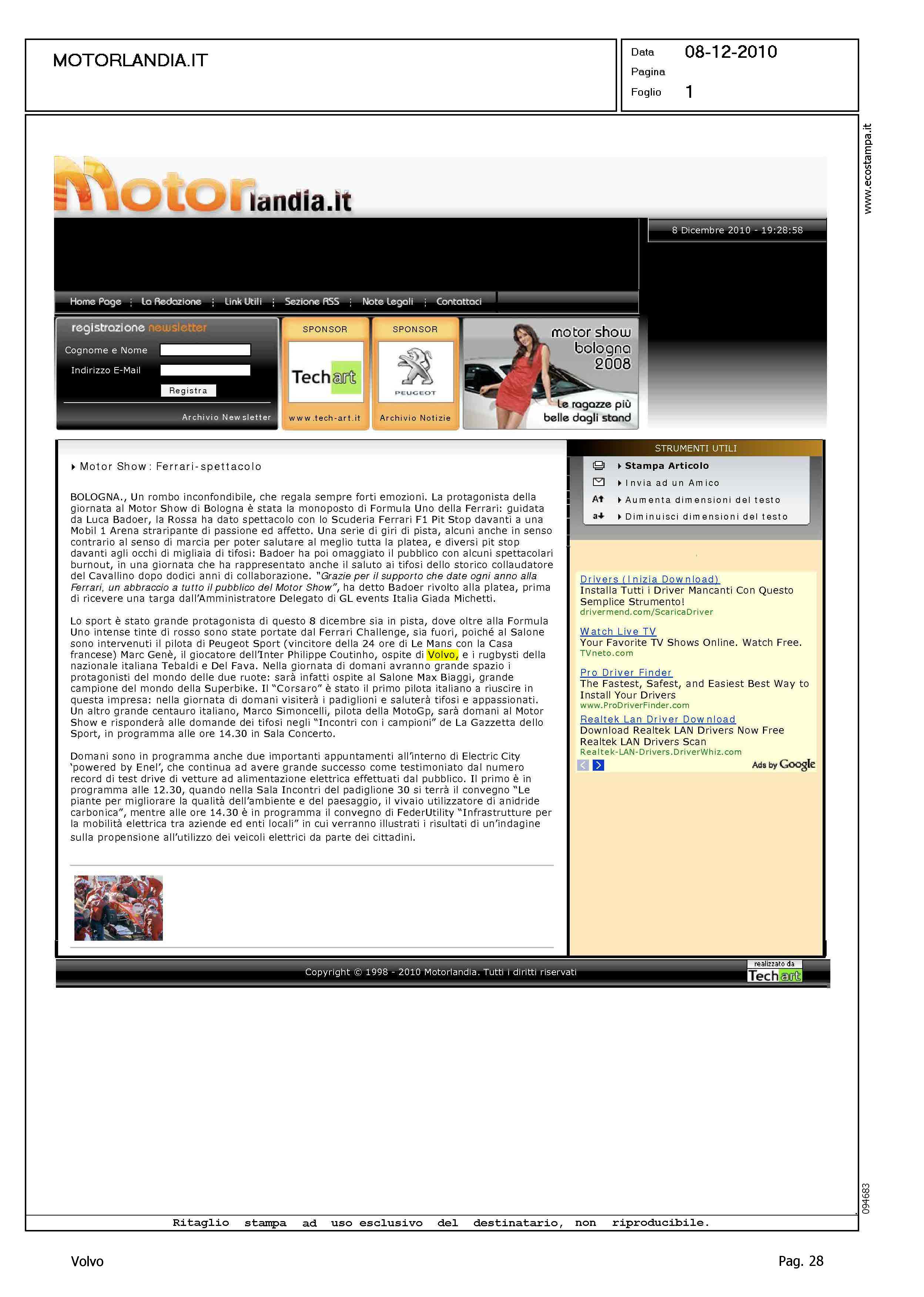 Author: Line: Corporate Model: Corporate Subject: - Title: MOTOR SHOW: ALLE 13:40 C'E' LA FERRARI - MOTOR SHOW: FERRARI SPETTACOLOHighlight: COUTINHO, OSPITE STAND VOLVO