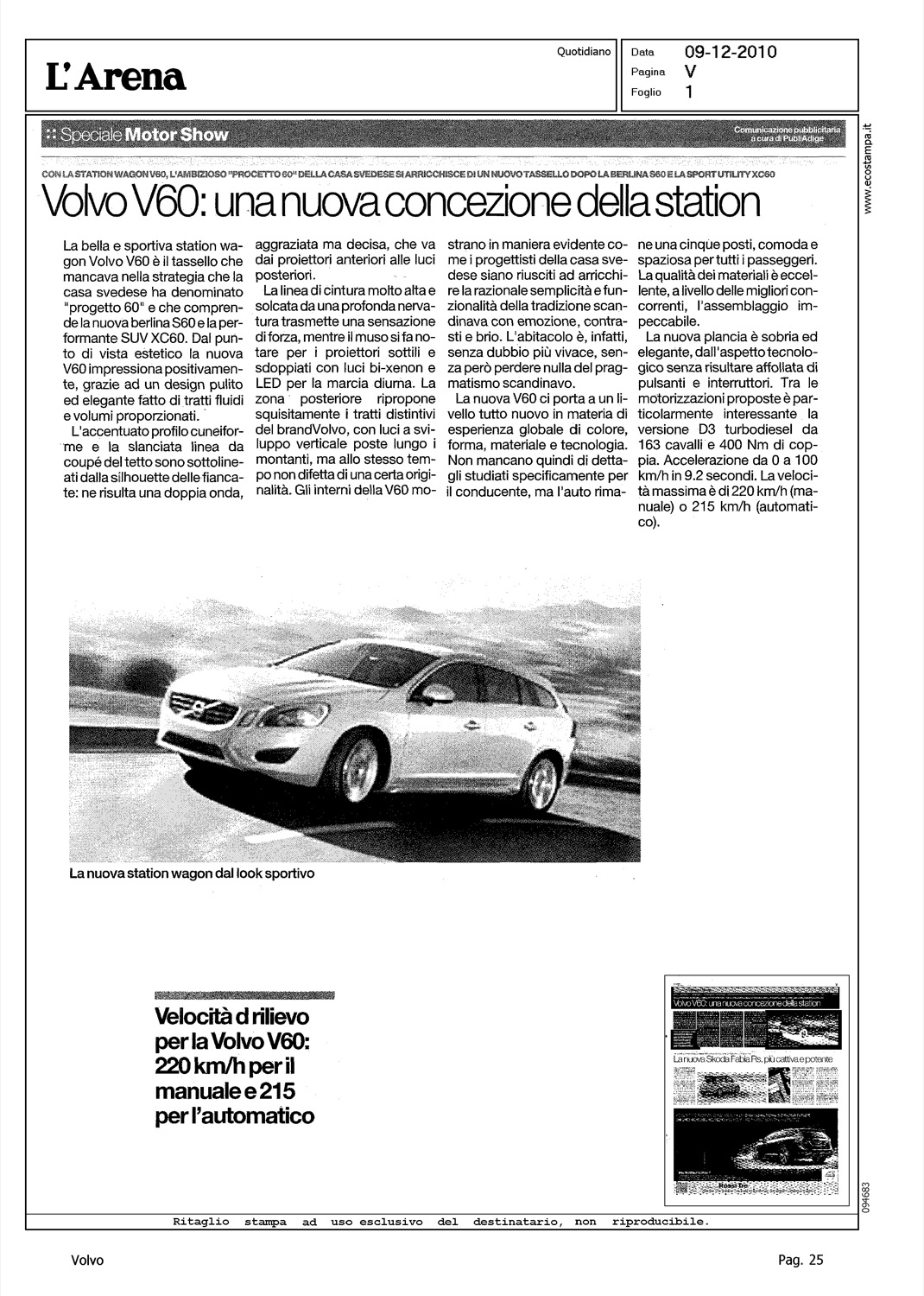 Author: Line: Corporate Model: Corporate Subject: - Title: VOLVO V60: UNA NUOVA CONCEZIONE DELLA STATIONHighlight: GAMMA 60 - DESIGN - ABITACOLO - INTERNI - PRESTAZIONI