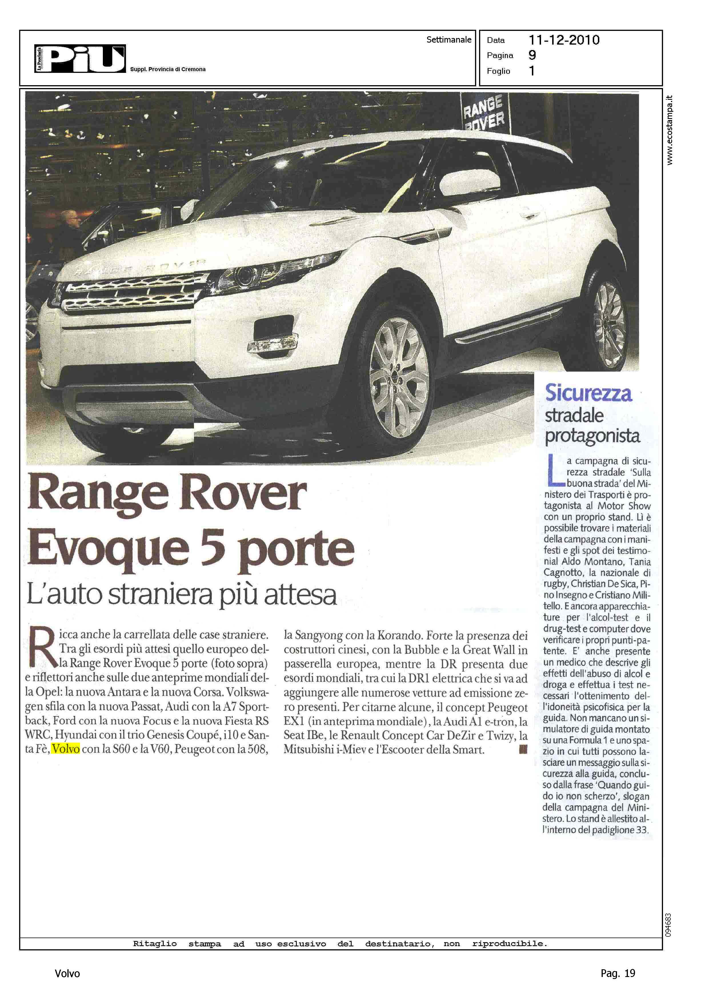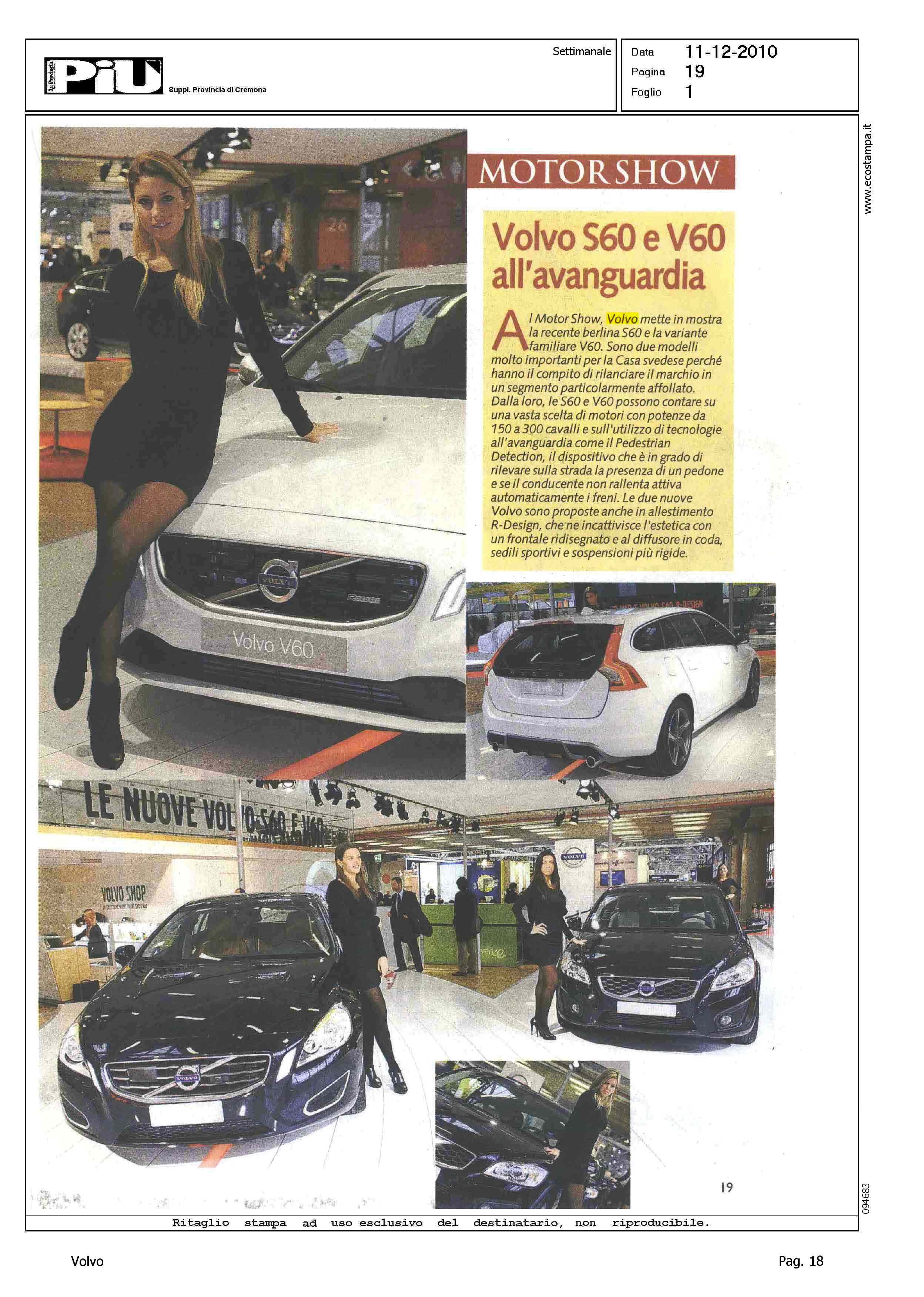 Author: Line: Corporate Model: Corporate Subject: - Title: MOTOR SHOW - VOLVO S60 E V60 ALL'AVANGUARDIAHighlight: MOTOR SHOW - BOLOGNA - VOLVO S60 - VOLVO V60 - MOTORI - SICUREZZA - PEDESTRIAN DETECTION - R DESIGN
