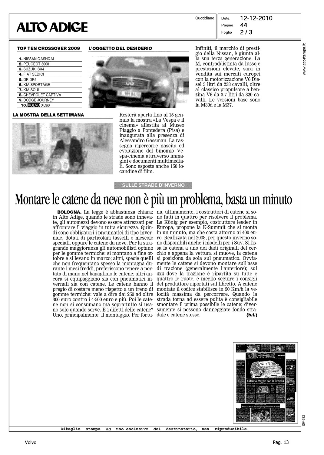 Author: TONIDANDEL, BRUNOLine: XC60 Model: Subject: - Title: TOP TEN CROSSOVER 2009Highlight: MERCATO ITALIA - TABELLA TOP TEN CROSSOVER - POSIZIONE VOLVO, 10/10