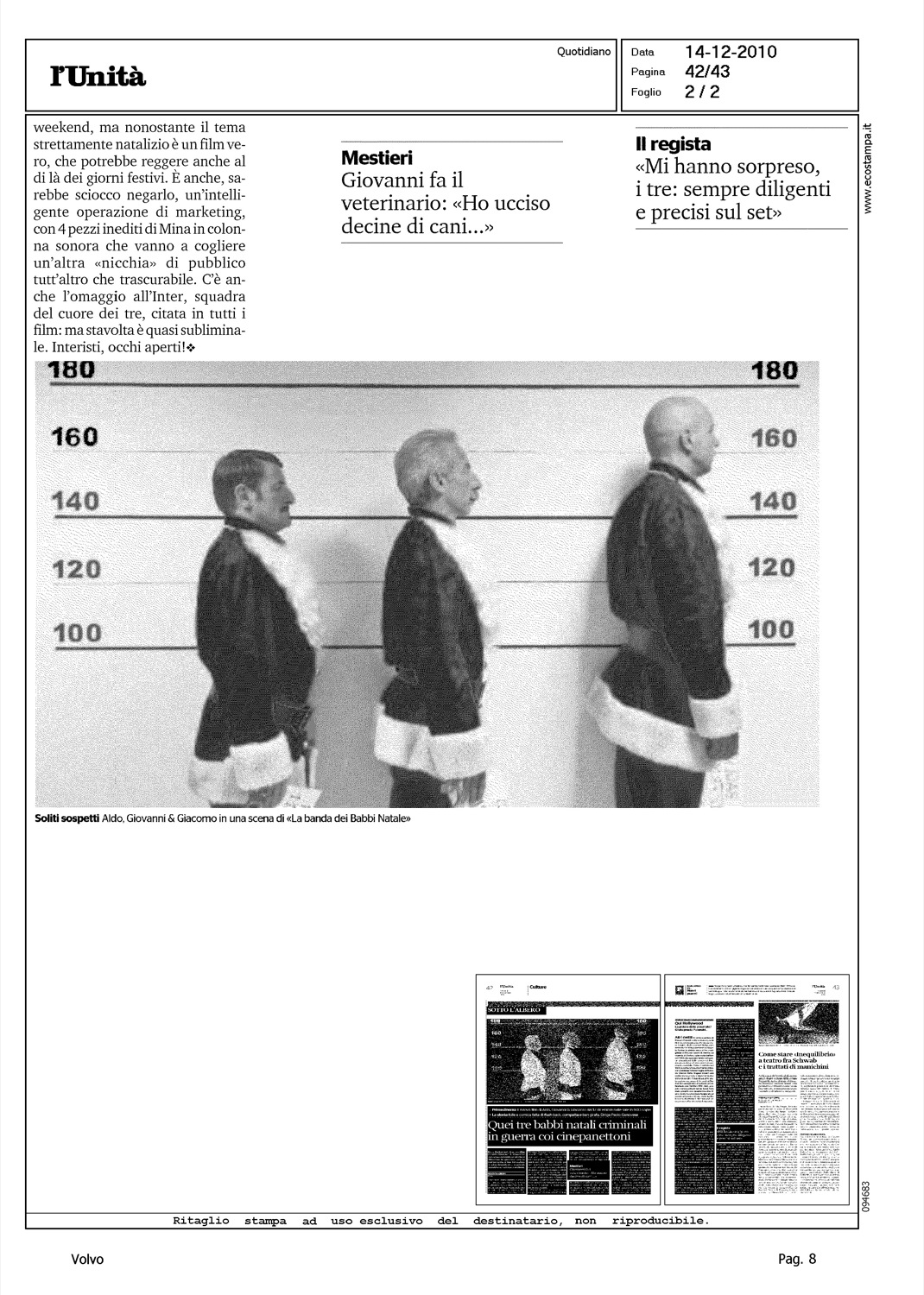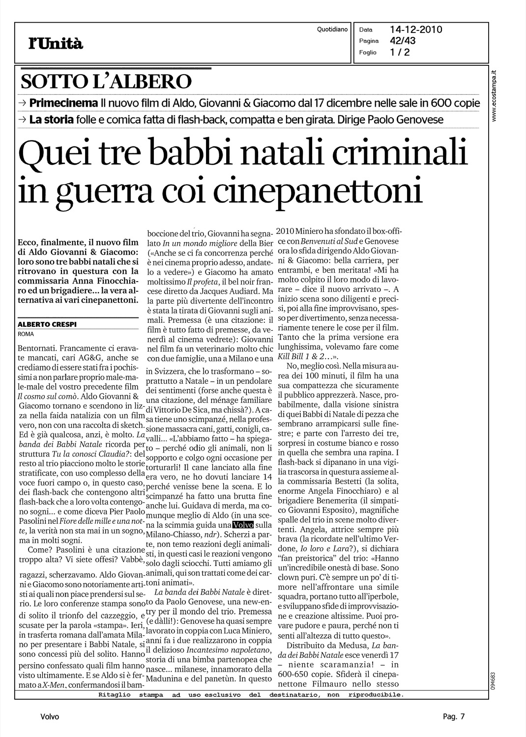 Author: CRESPI, ALBERTOLine: Corporate Model: Corporate Subject: - Title: QUEI TRE BABBI NATALI CRIMINALI IN GUERRA COI CINEPANETTONIHighlight: VOLVO - COLORE - ALDO, GIOVANNI & GIACOMO, FILM - PRESENZA VOLVO