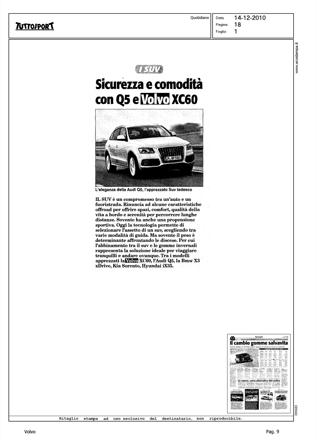 Author: Line: XC60 Model: Subject: - Title: I SUV - SICUREZZA E COMODITA' CON Q5 E VOLVO XC60Highlight: VOLVO XC60 - COMPETITOR - AUDI Q5 - SICUREZZA - CONFORT - DINAMICA DI MARCIA - ALTRI COMPETITOR, BMW X3, KIA SORENTO, HYUNDAI IX35