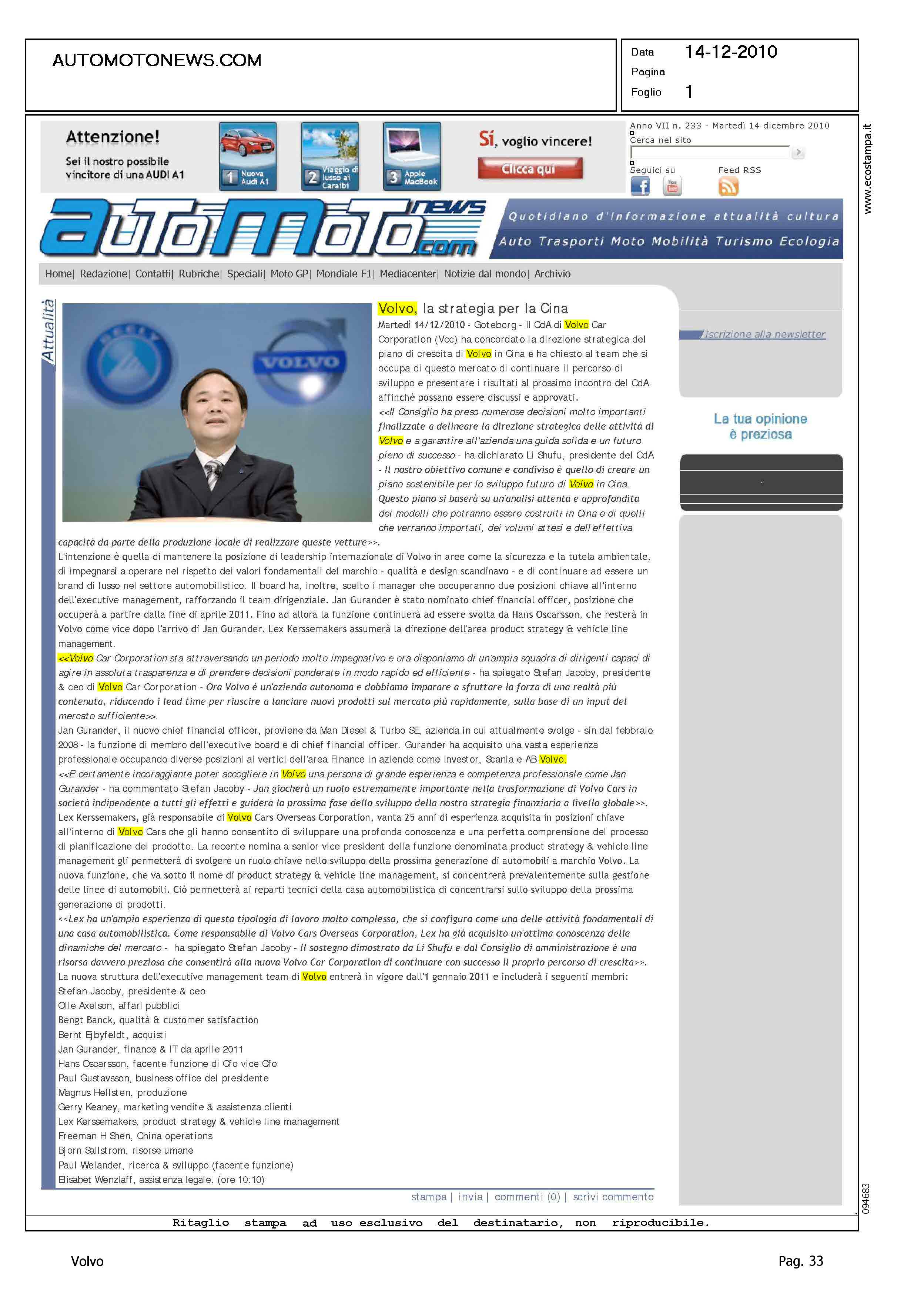 Author: Line: Corporate Model: Corporate Subject: - Title: VOLVO, LA STRATEGIA PER LA CINAHighlight: VOLVO - GEELY - MERCATO CINA