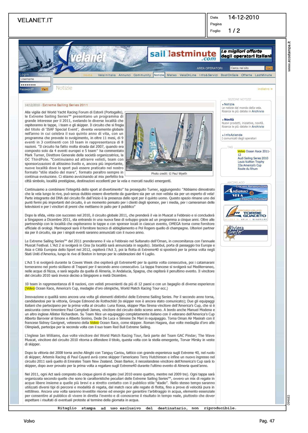 Author: Line: Corporate Model: Corporate Subject: Volvo Ocean Race Title: EXTREME SAILING SERIES 2011Highlight: EXTREME SAILING - VOLVO OCEAN RACE