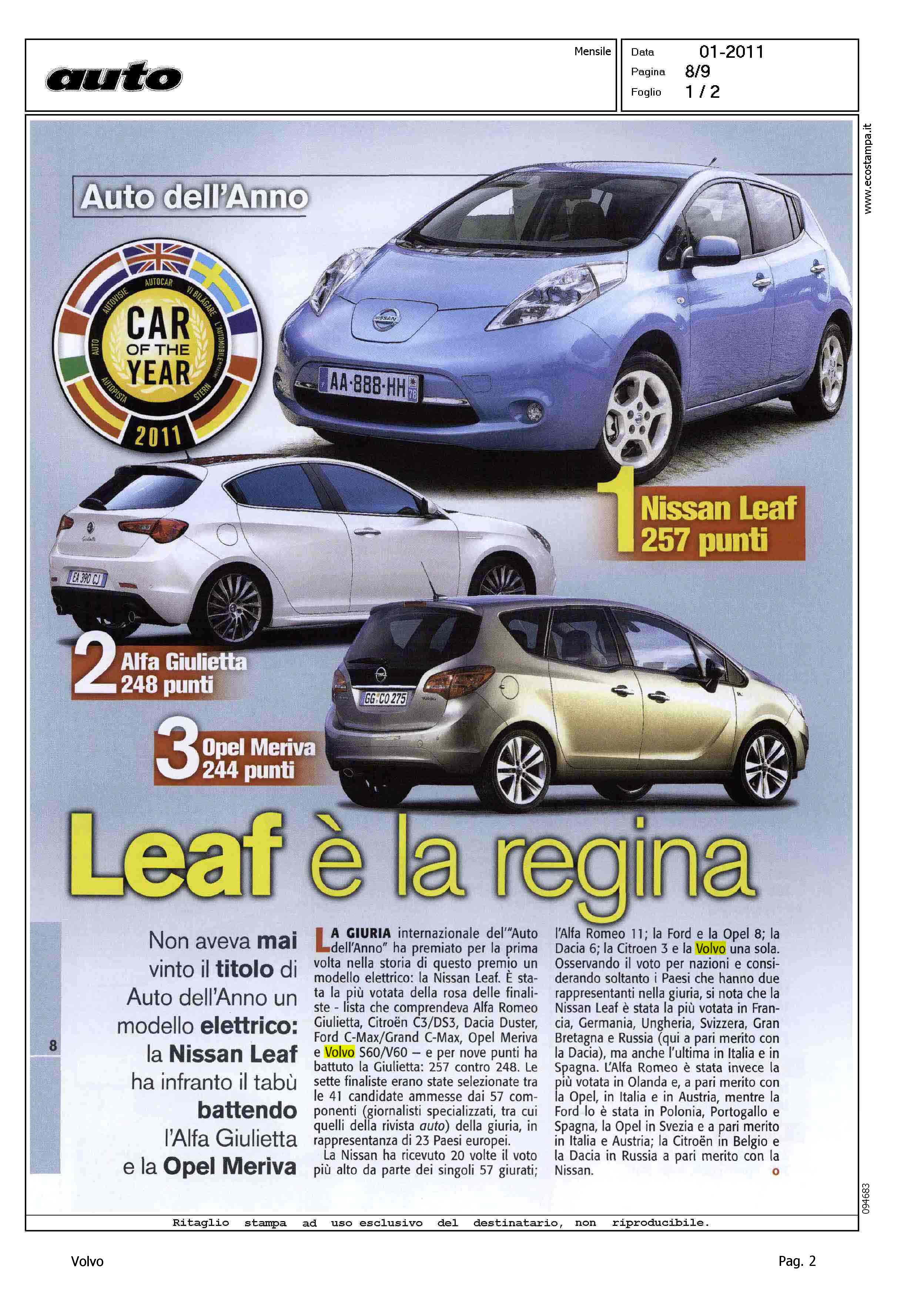 Author: Line: Corporate Model: Corporate Subject: - Title: LEAF E' REGINAHighlight: ELETTA L'AUTO DELL'ANNO 2011 - VOLVO S60/V60