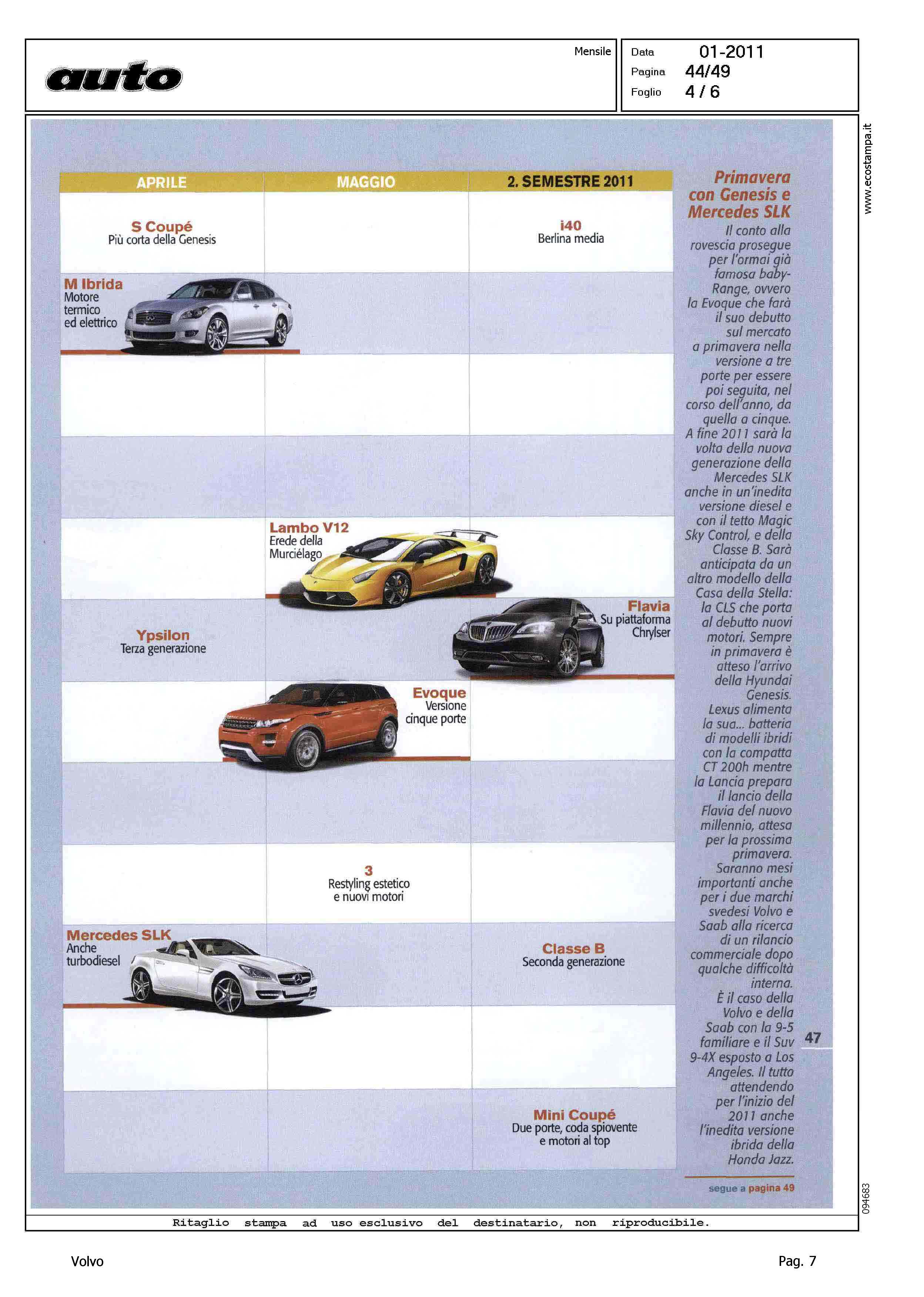 Author: Line: Corporate Model: Corporate Subject: - Title: LE AUTO IN ARRIVOHighlight: MODELLI 2011 - PRESENTAZIONE - VOLVO V60 - VOLVO V70 RESTYLING - NUOVI MOTORI - VOLVO XC90 - AGGIORNAMENTO ESTETICO