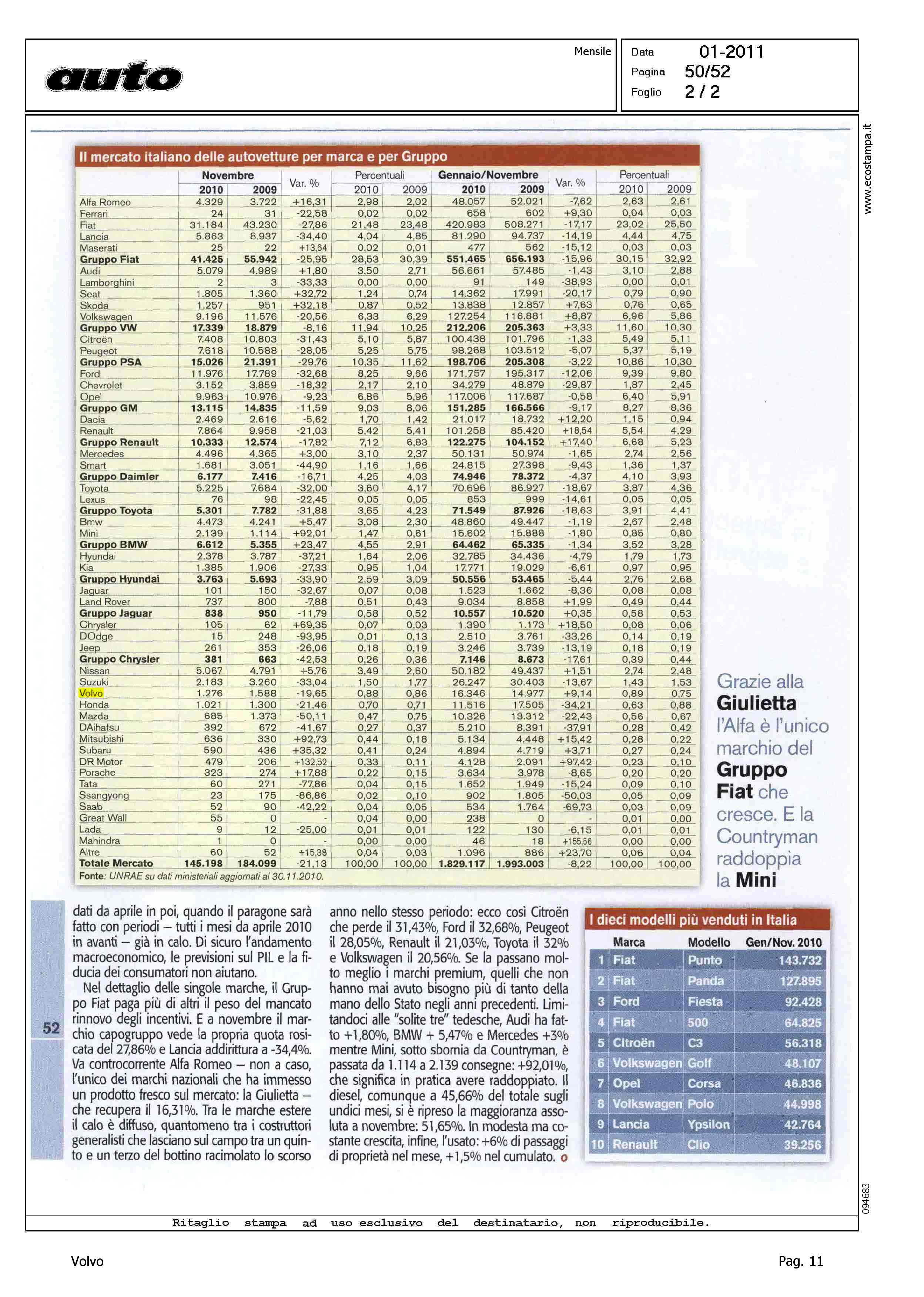 Author: VISANI, MARCOLine: Corporate Model: Corporate Subject: - Title: UN GELIDO INVERNO COME DA PREVISIONIHighlight: MERCATO ITALIA - TABELLE - POSIZIONE VOLVO