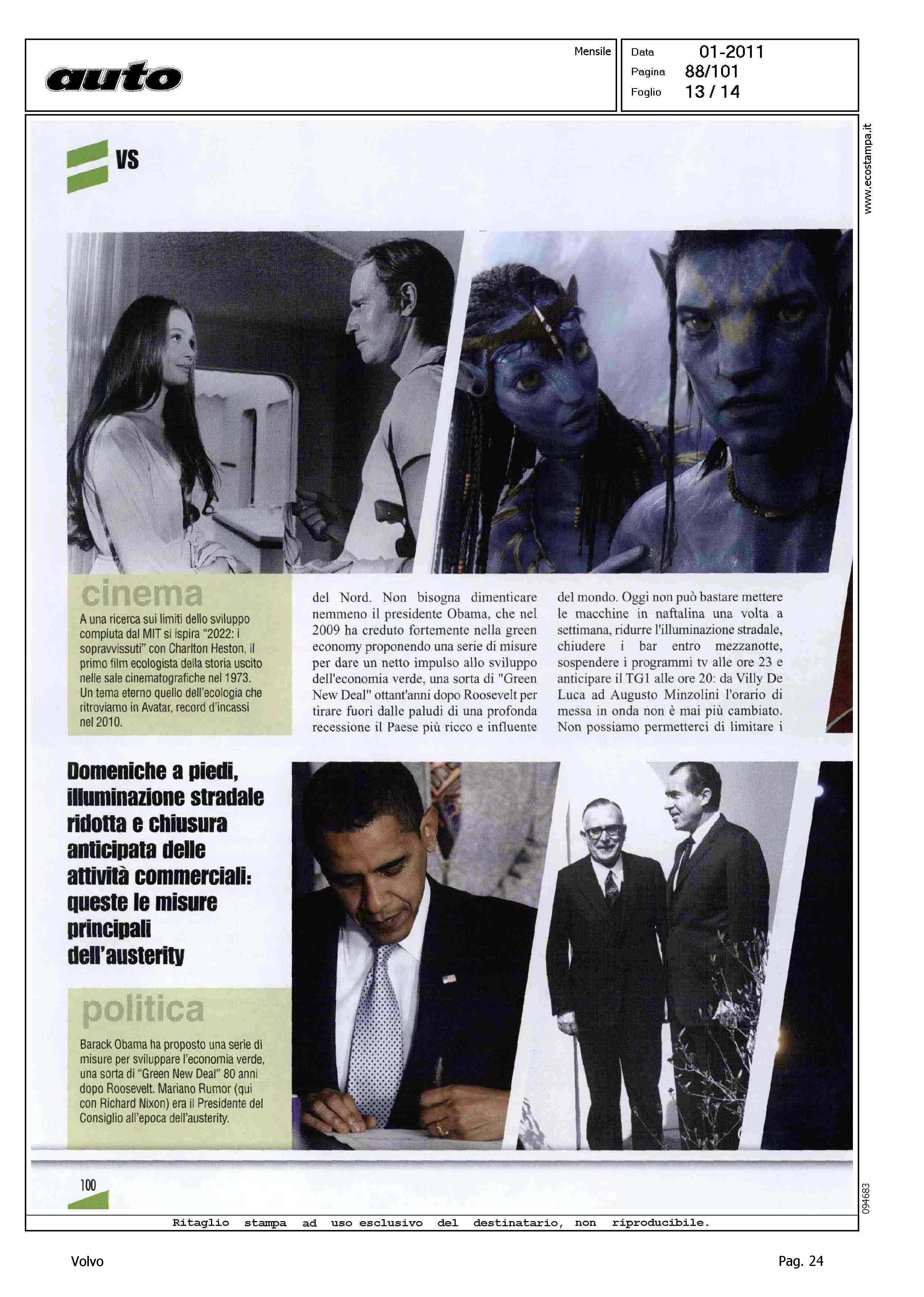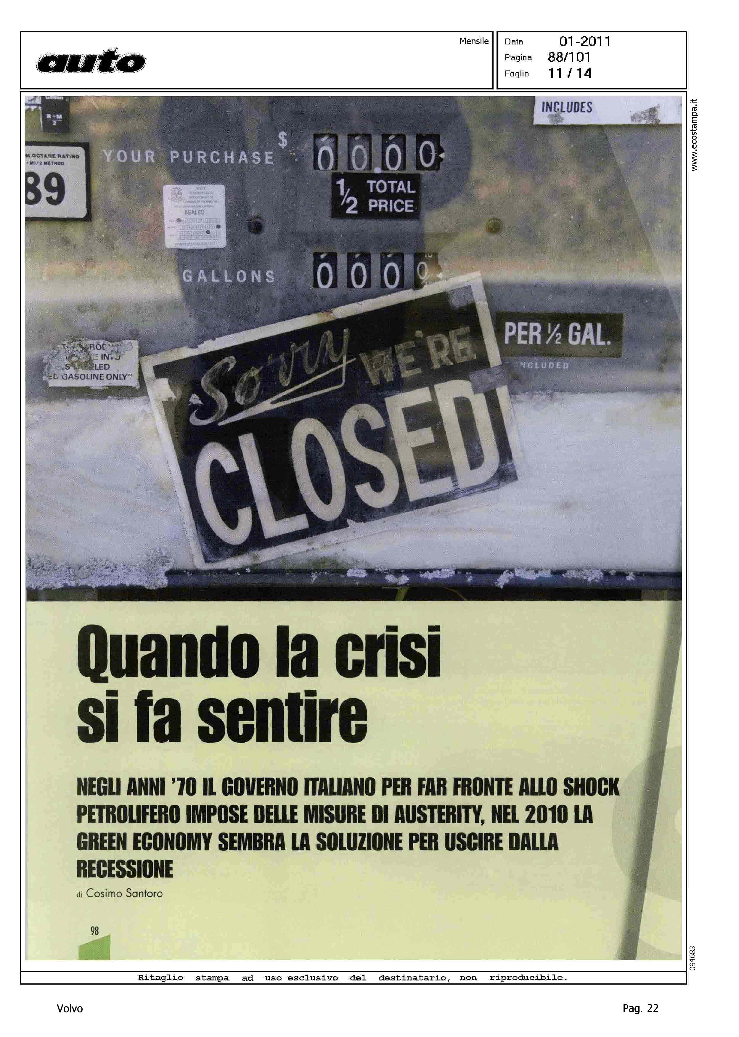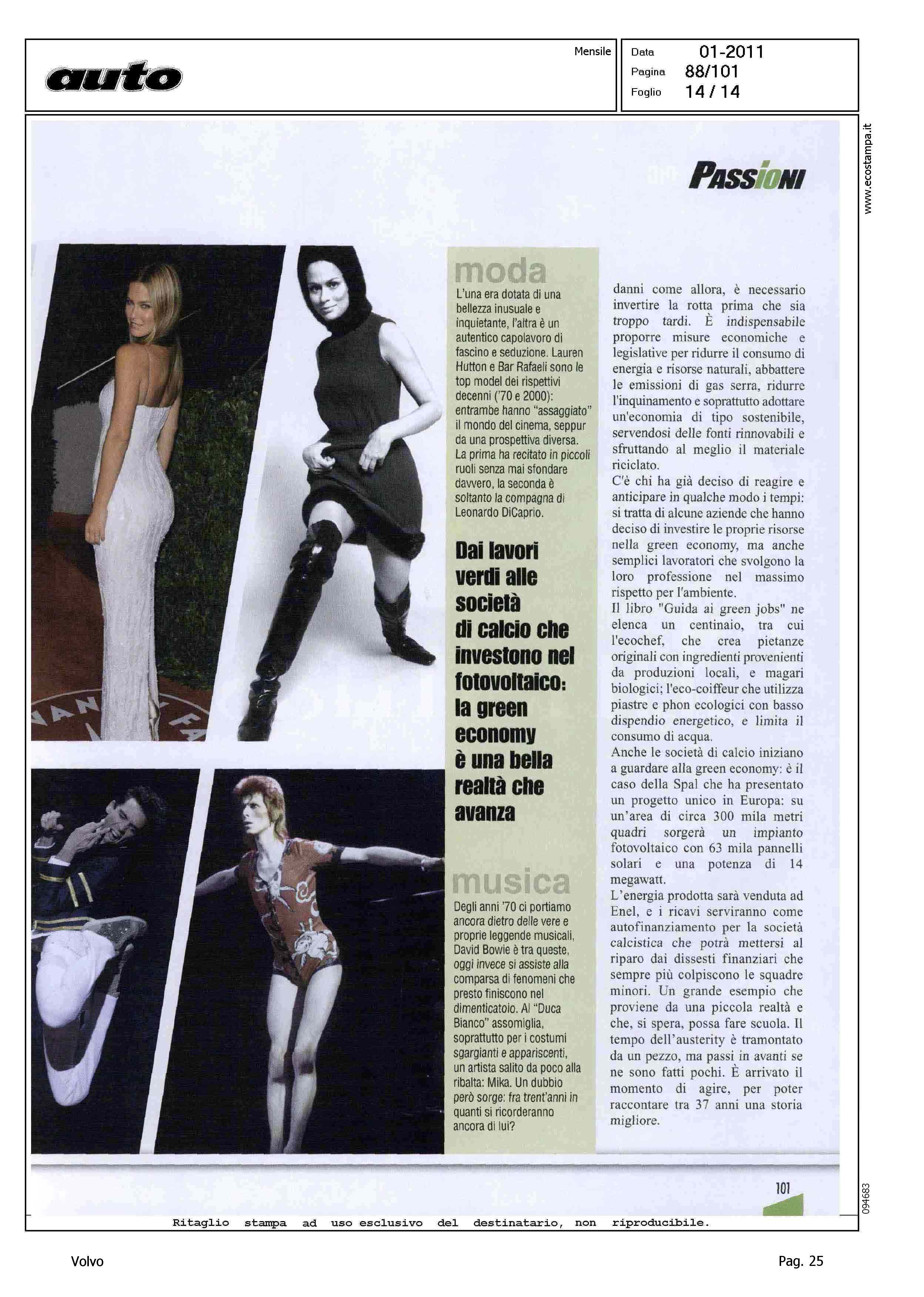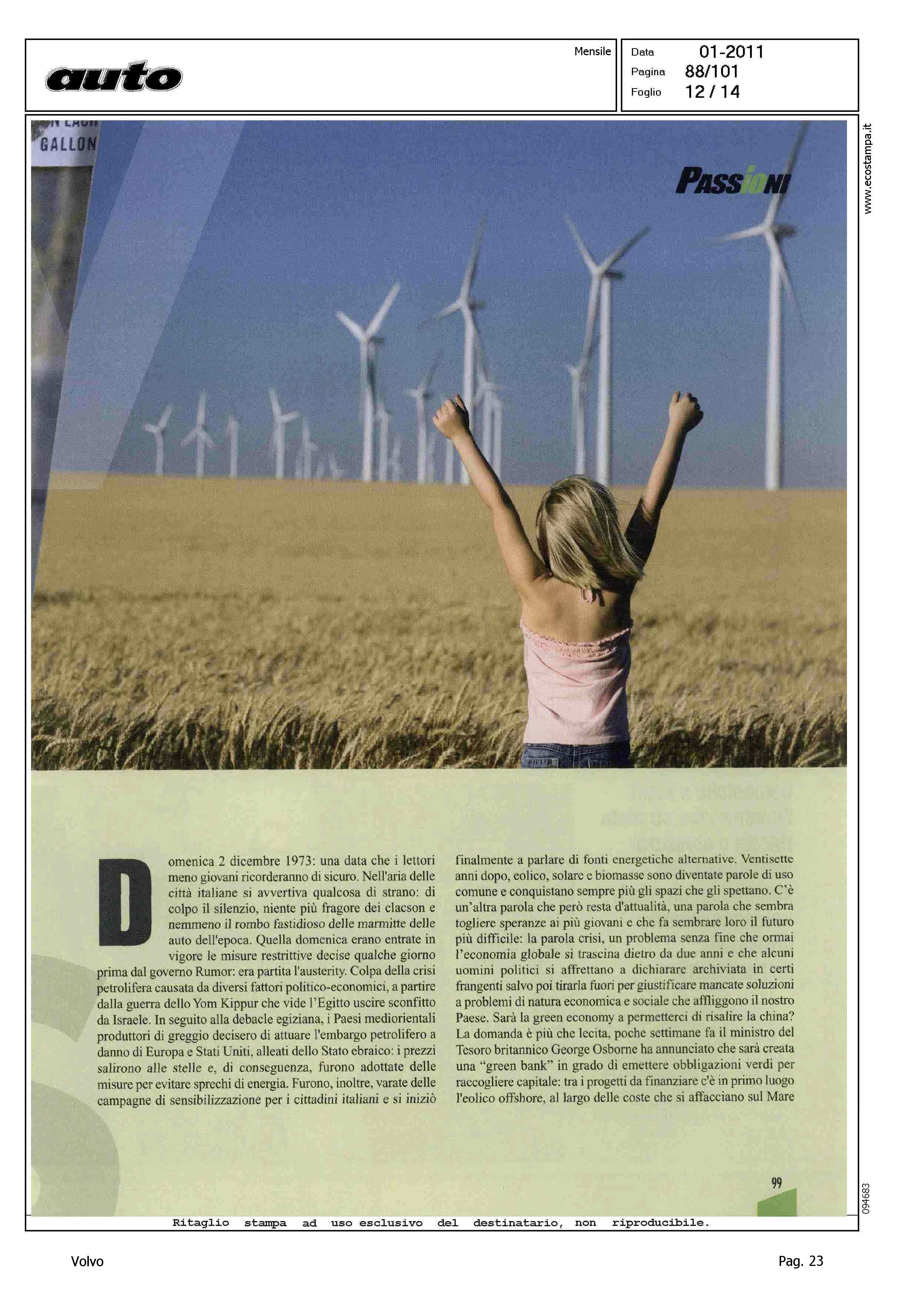 Highlight: (USCITA GENNAIO 2011) - LICIA COLO' - TESSA GELISIO - TELEVISIONE - INTERVISTA - AMBIENTE - PROTEZIONE - AUTO ELETTRICA - IBRIDA - SERVIZIO 14 PAGINE, STRUTTURA SU PIU' ARTICOLI, GURIAN SU AUTO ELETTRICA/IBRIDA - VOLVO C30 - CITAZIONE TWILIGHT
