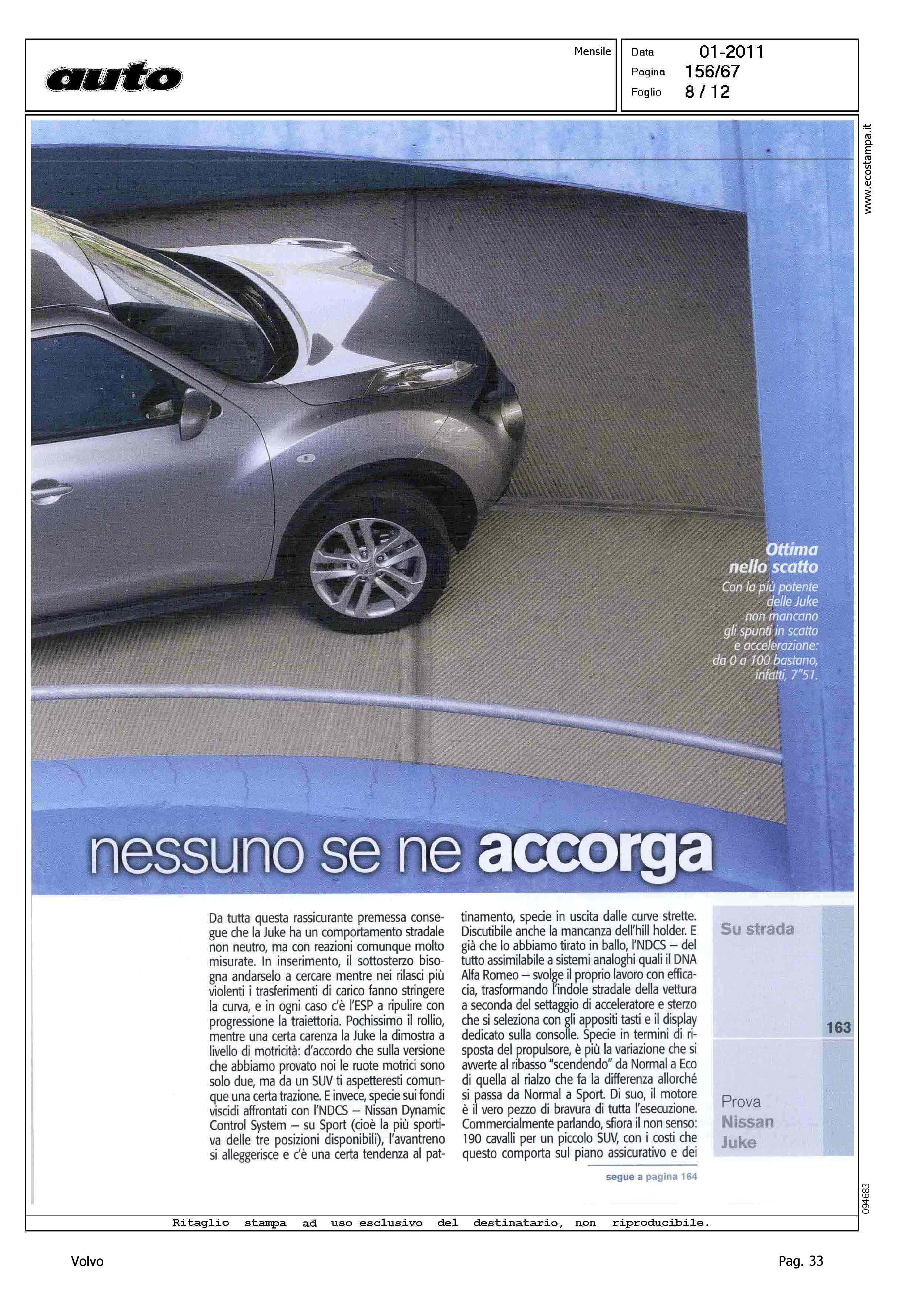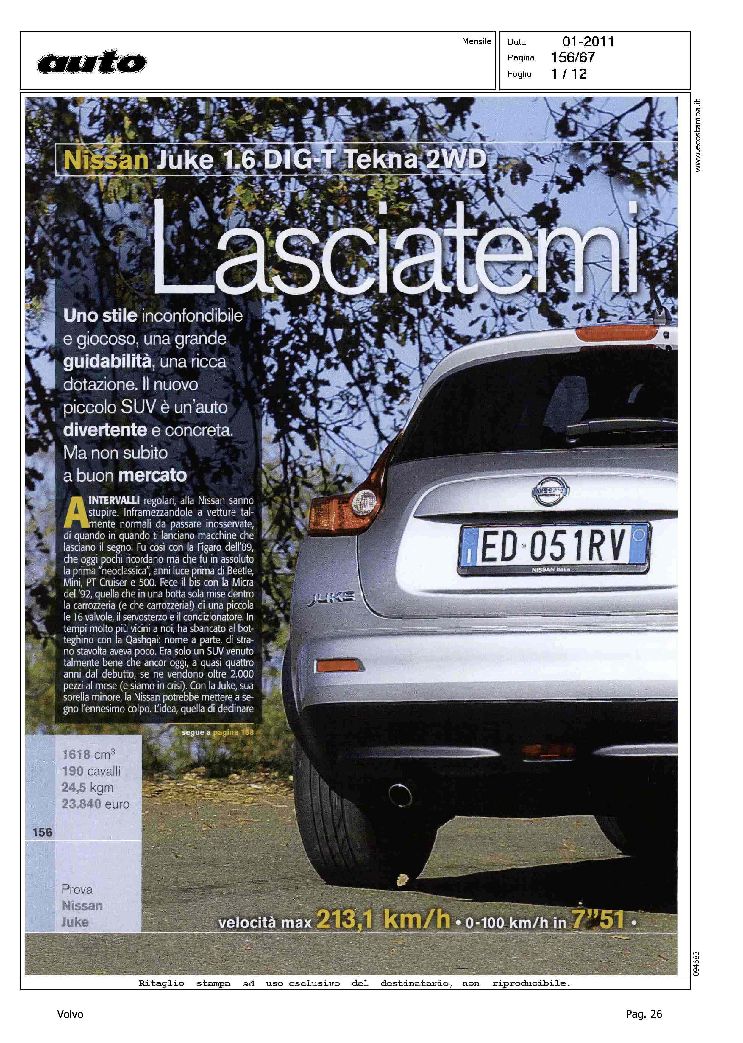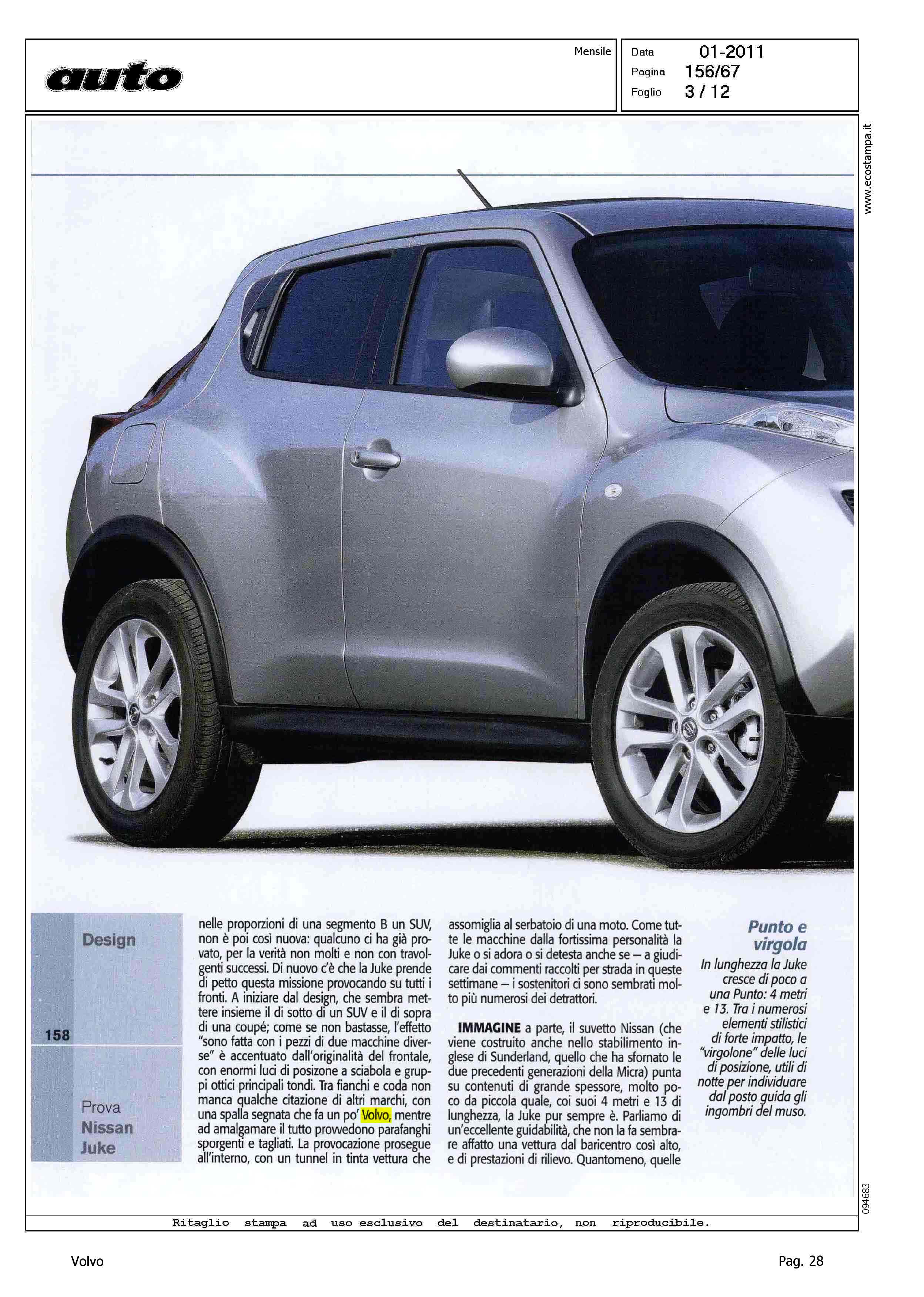 Author: VISANI, MARCOLine: Corporate Model: Corporate Subject: - Title: LASCIATEMI JUKAREHighlight: DESIGN - CITAZIONE VOLVO IN ARTICOLO SU NISSAN JUKE