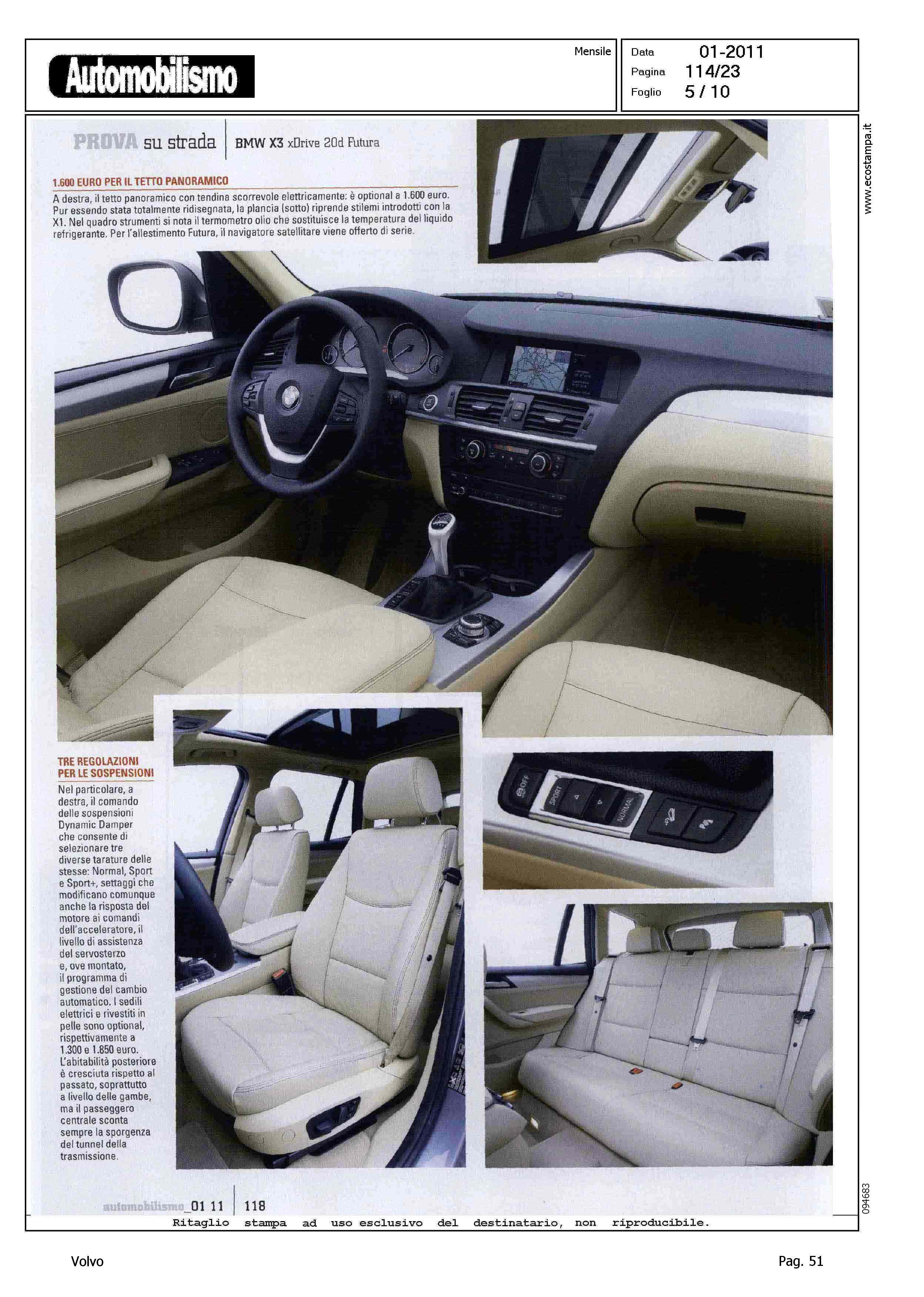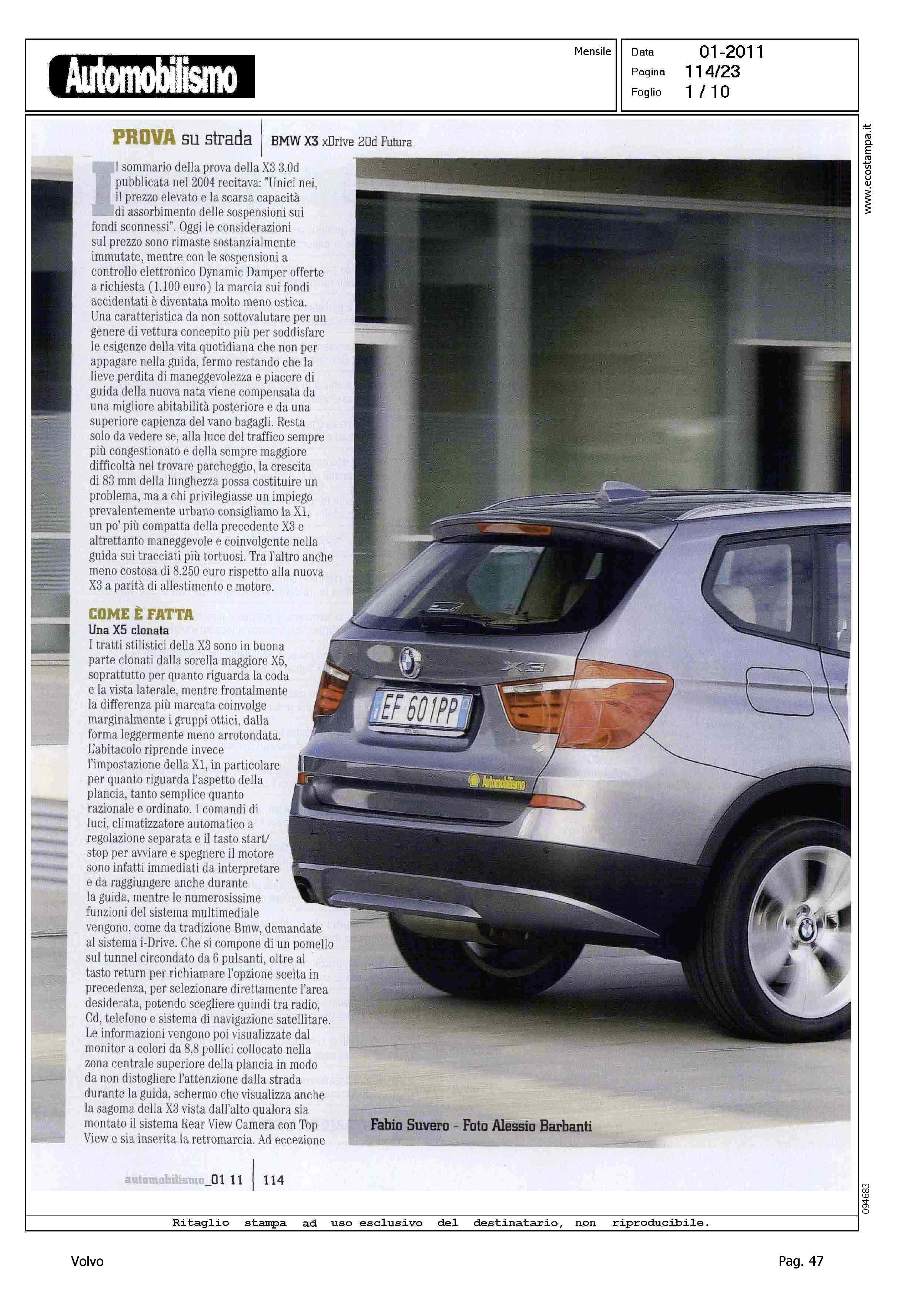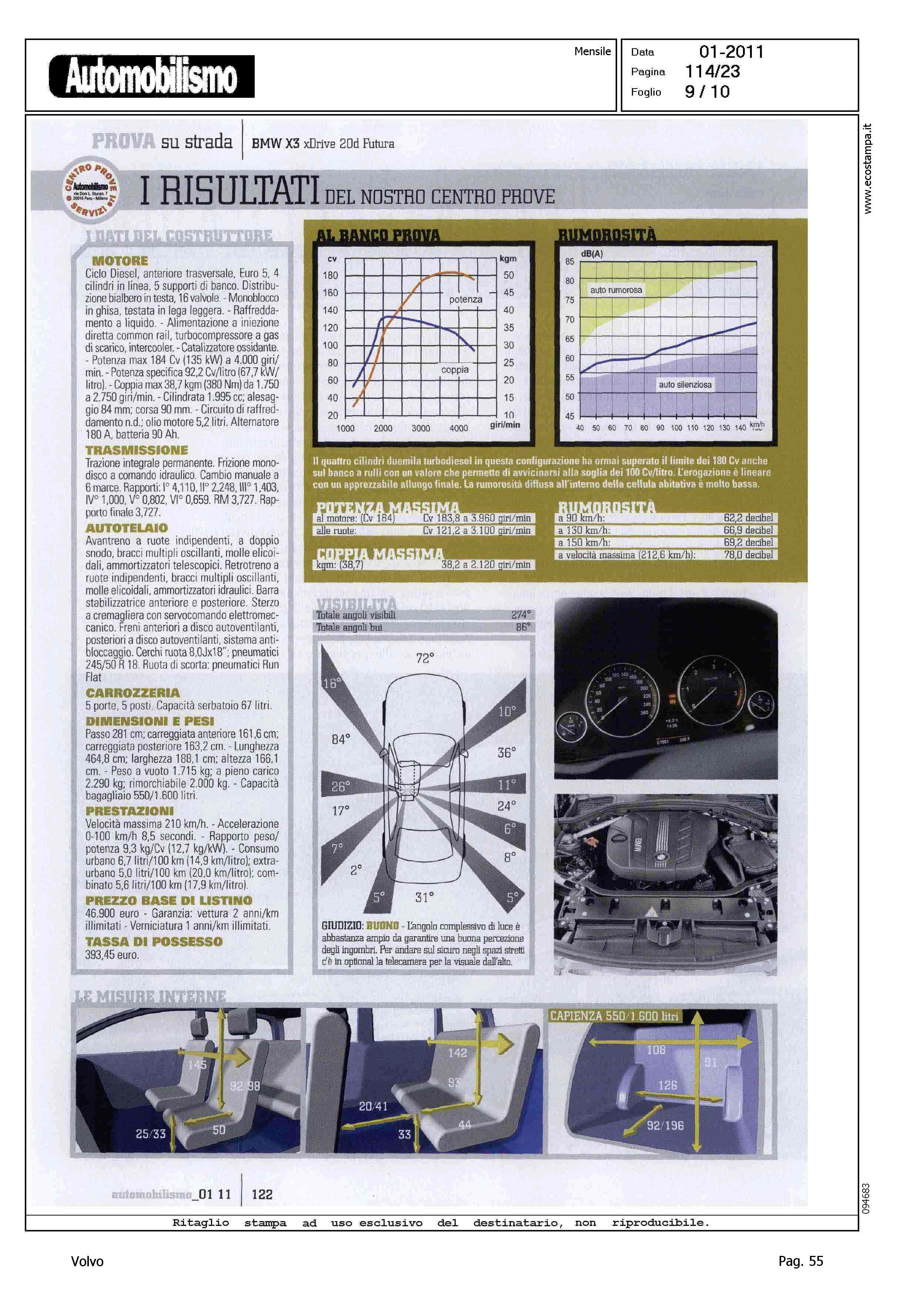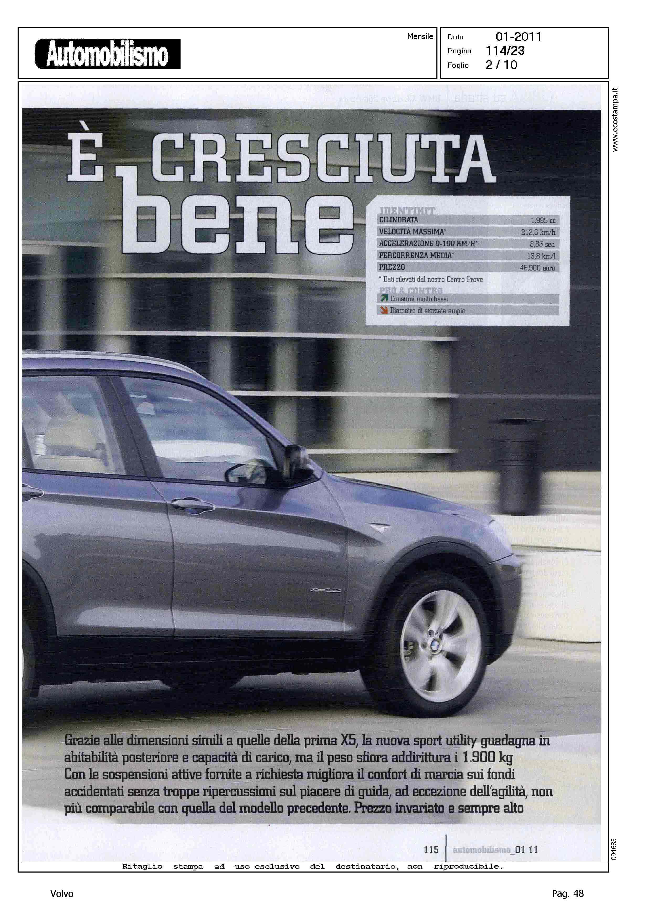 Highlight: VOLVO XC60 2.4D - COMPETITOR - BMW X3 XDRIVE 2.0D FUTURA - BMW E' MIGLIORE DI VOLVO IN: DINAMICA DI MARCIA, LIVELLO DECIBEL A 130 KM/H, SPAZI DI ARRESTO A 130 KM/H, PERCORRENZA MEDIA (IN CORPO DEL TESTO)