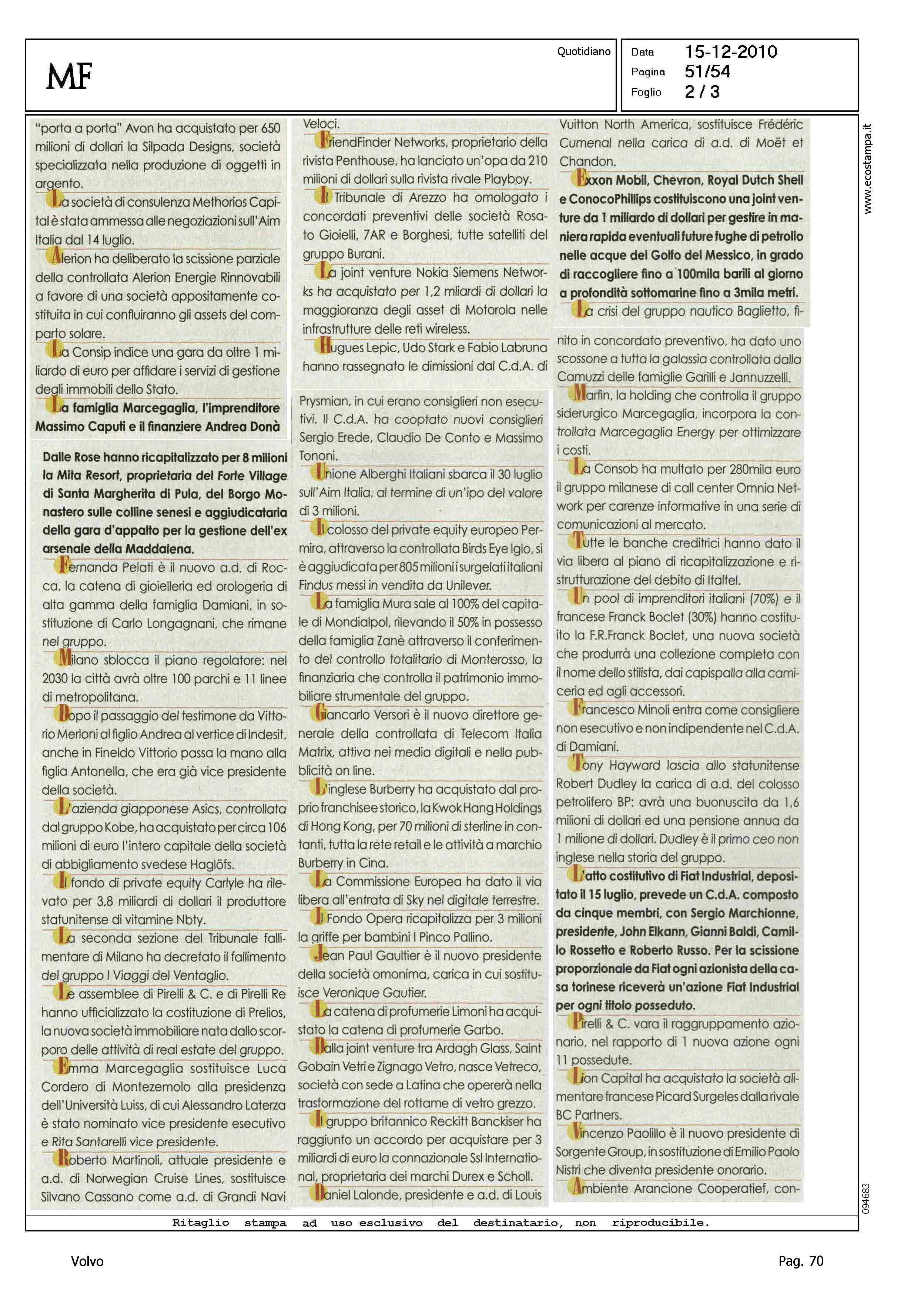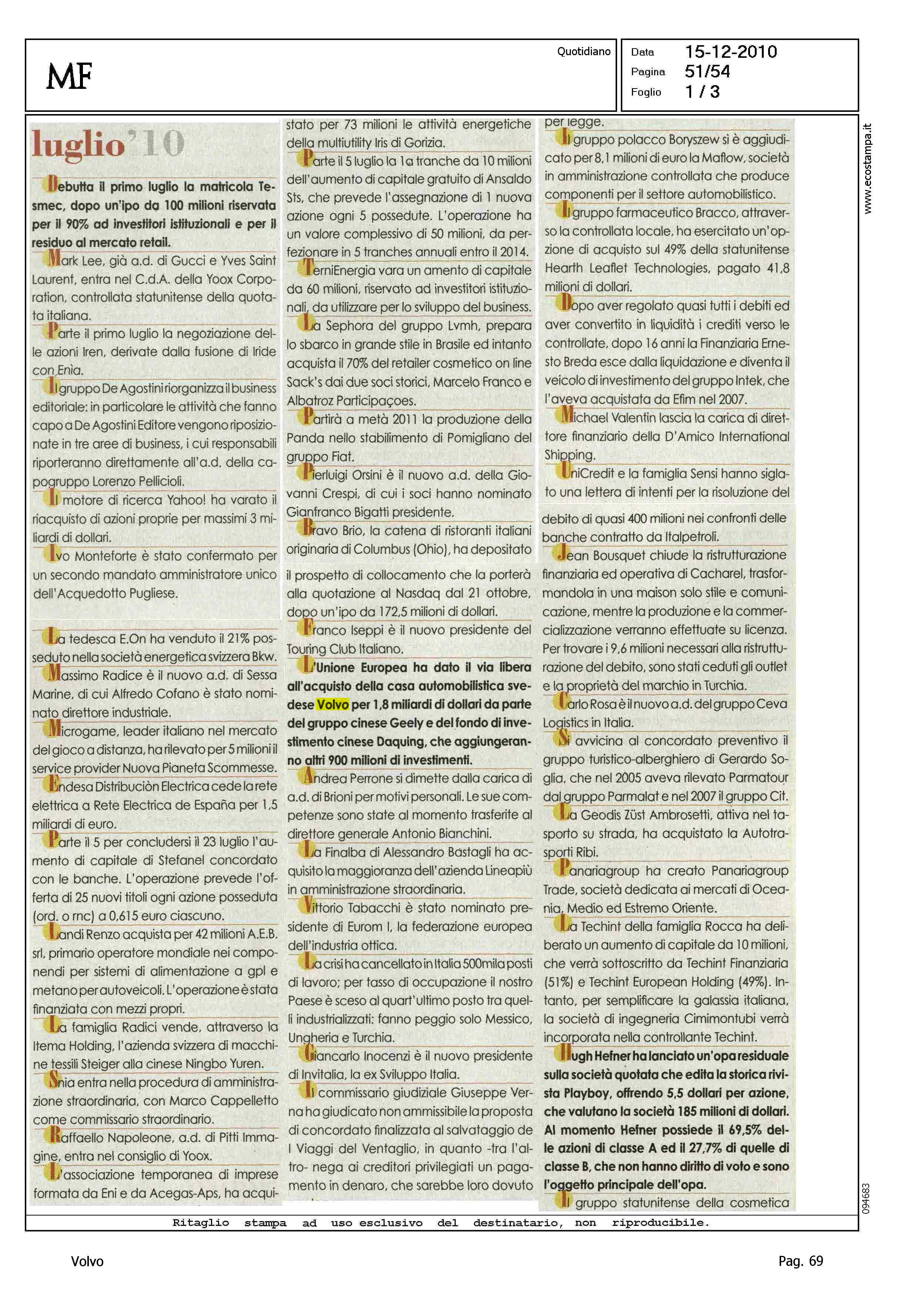 Author: Line: Corporate Model: Corporate Subject: - Title: LUGLIO 2010Highlight: VOLVO - GEELY - CRONACA LUGLIO 2010 - AVVENIMENTI