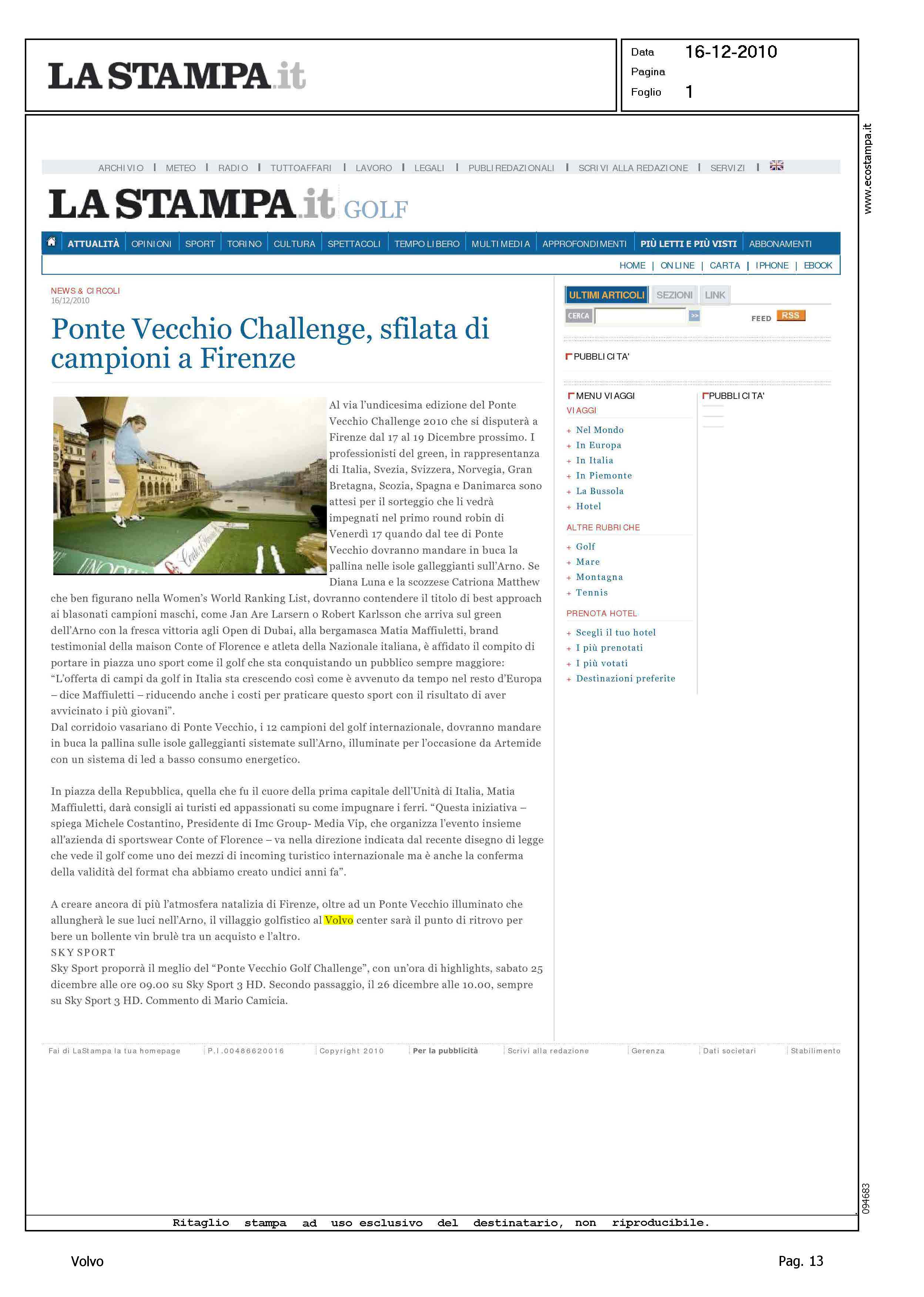 Author: Line: Corporate Model: Corporate Subject: Volvo Master Title: PONTE VECCHIO CHALLENGE, SFILATA DI CAMPIONI A FIRENZEHighlight: VOLVO MASTER - VOLVO CENTER - PONTE VECCHIO CHALLENGE - FIRENZE