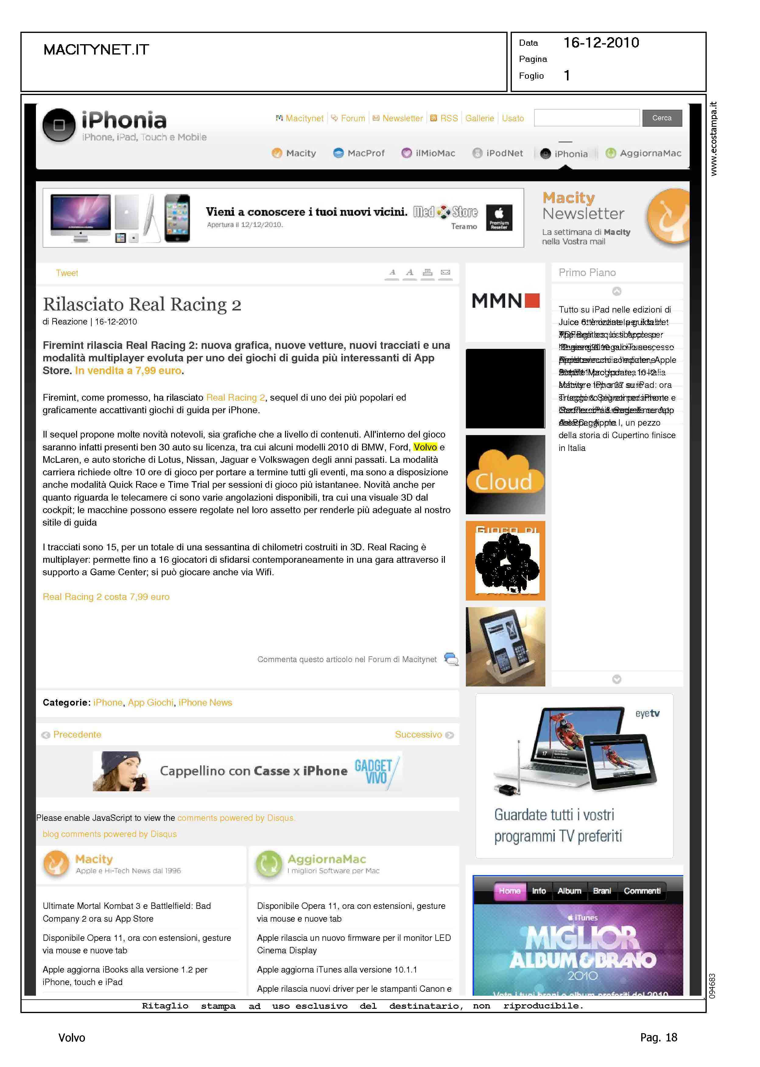 Author: Line: Corporate Model: Corporate Subject: - Title: RILASCIATO REAL RACING 2Highlight: REAL RACING - GIOCHI IOS4 - MODELLI AUTO SU LICENZA - VOLVO