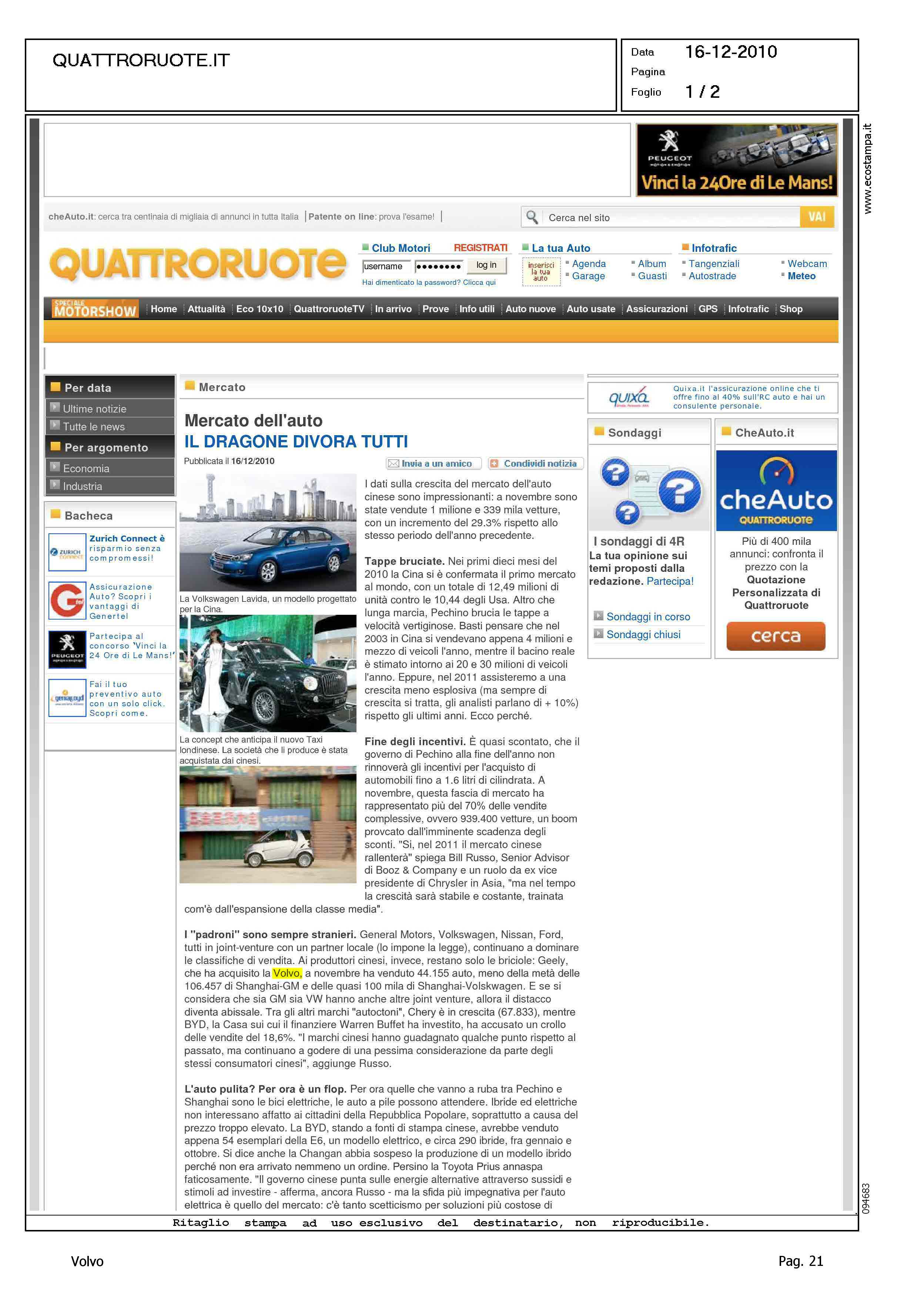 Author: Line: Corporate Model: Corporate Subject: - Title: IL DRAGONE DIVORA TUTTIHighlight: MERCATO CINA - VOLVO - GEELY
