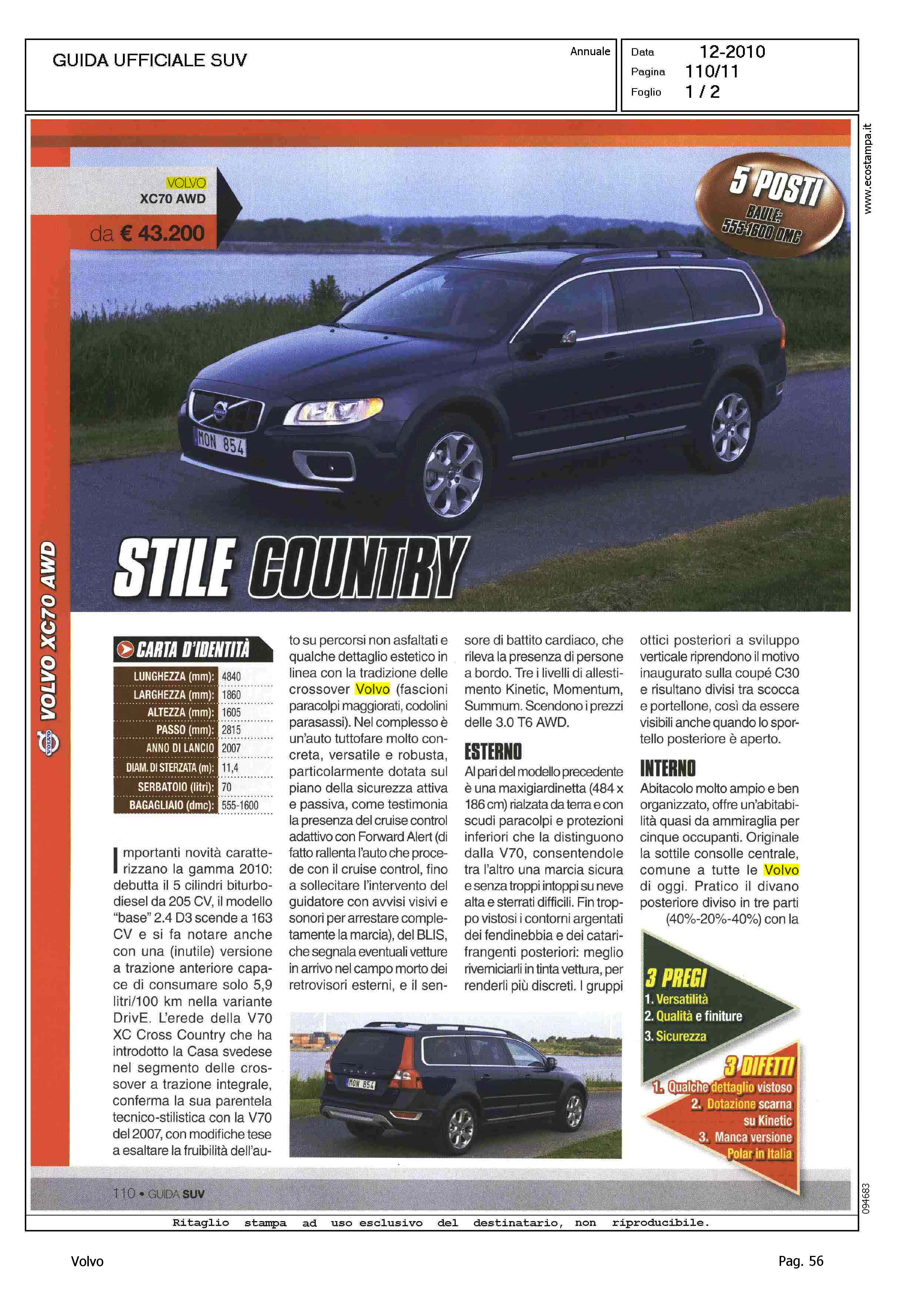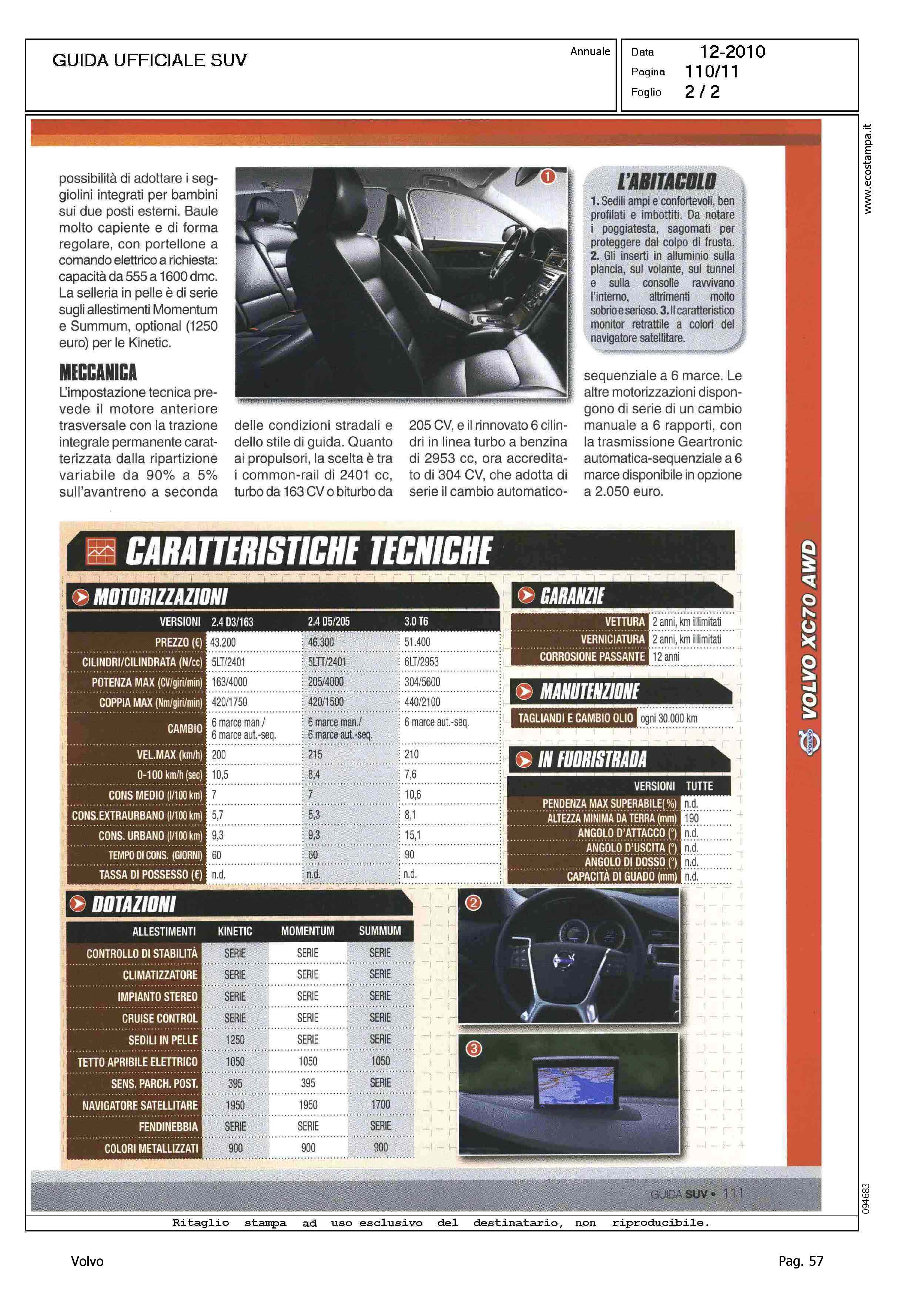 Highlight: SCHEDA PRODOTTO IN DOPPIA PAGINA - MODELLO VOLVO - PREZZO - DATI TECNICI, TABELLE MOTORI, DOTAZIONI, GARANZIE, MANUTENZIONE, IN FUORISTRADA - DESCRIZIONE PRODOTTO - PREGI, VERSATILITA', QUALITA' E FINITURE, SICUREZZA - DIFETTI, QUALCHE DETTAGLIO VISTOSO, DOTAZIONE SCARNA SU KINETIC, MANCA VERSIONE POLAR IN ITALIA