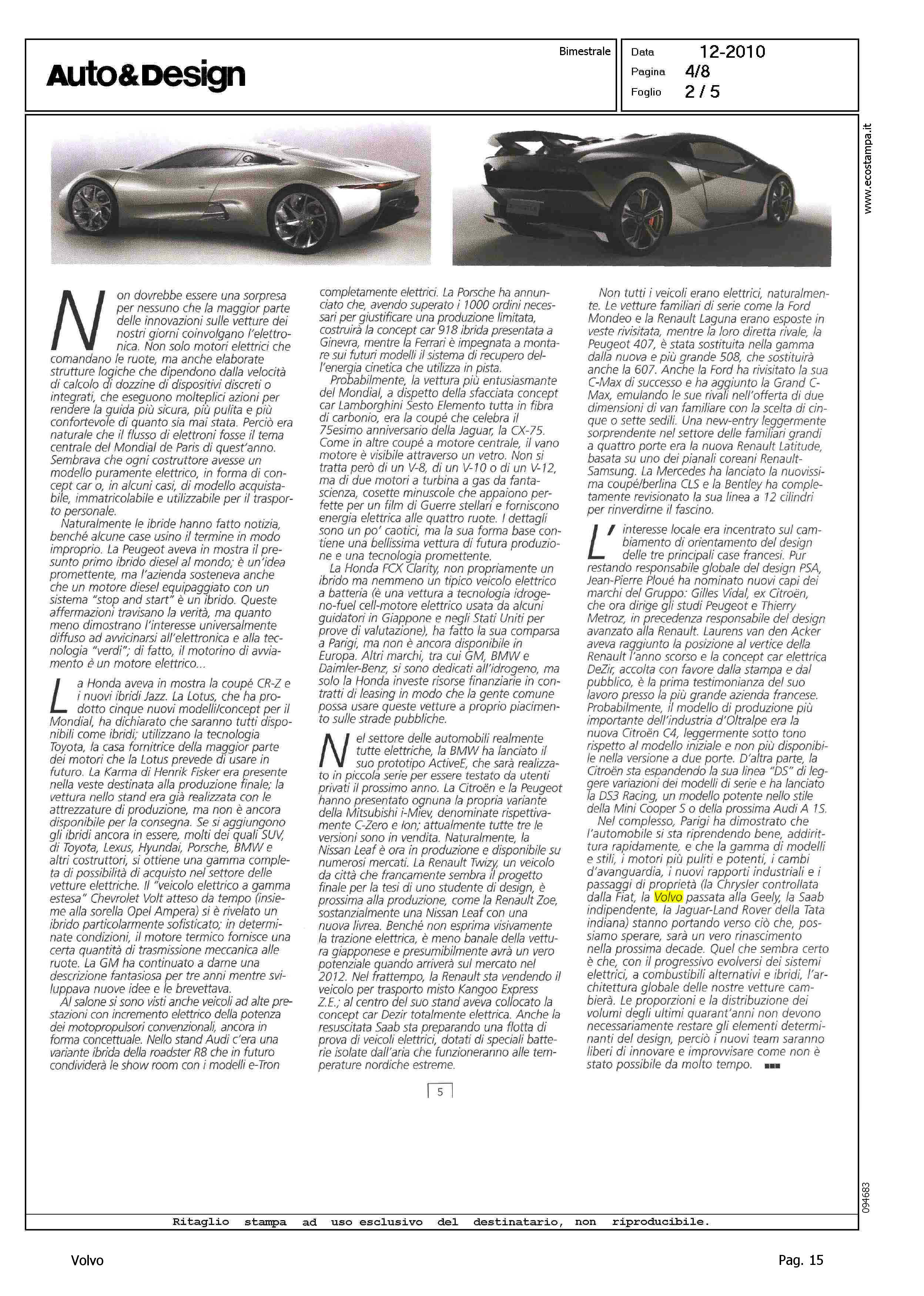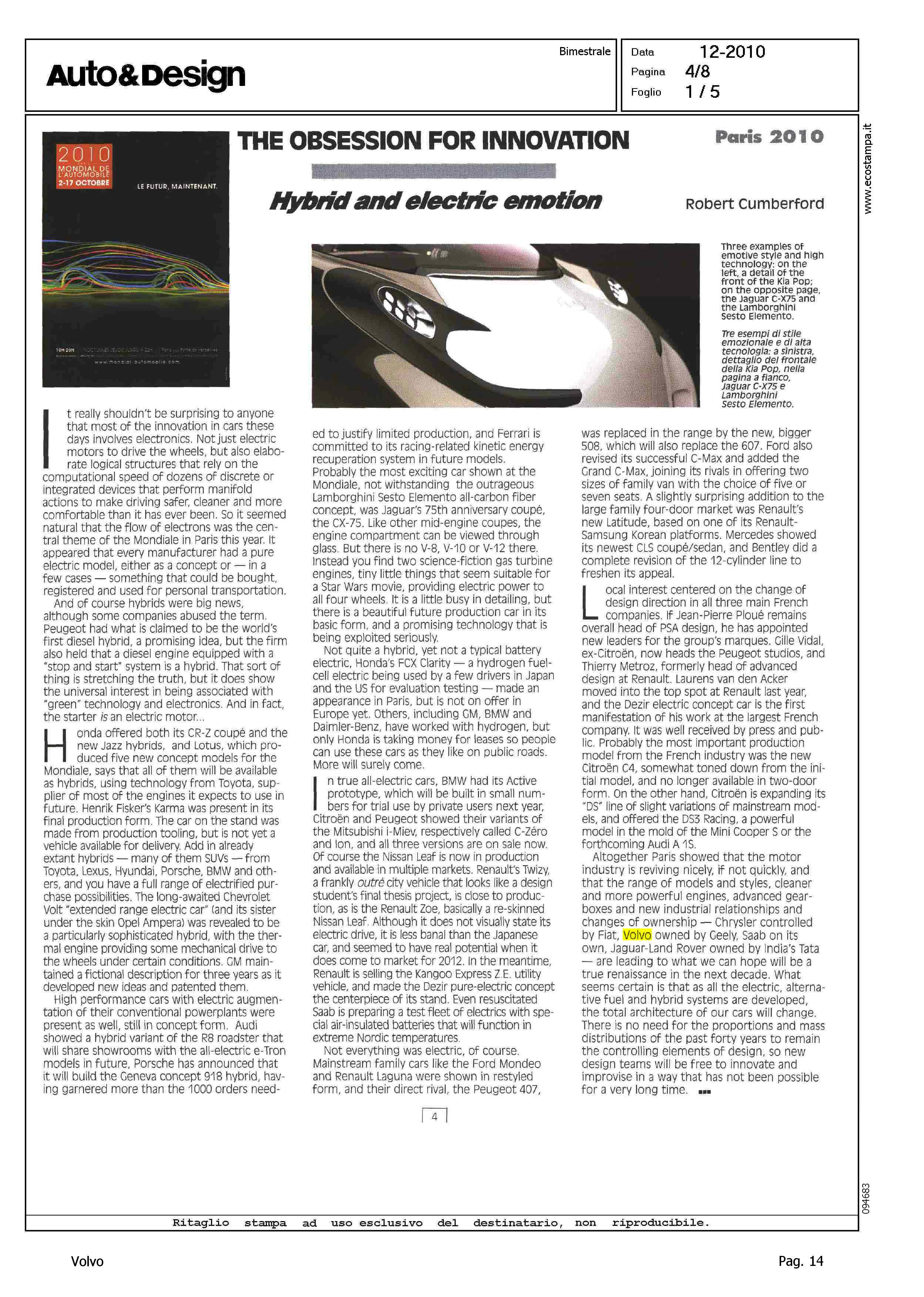 Author: CUMBERFORD, ROBERTLine: Corporate Model: Corporate Subject: - Title: THE OBSESSION FOR INNOVATIONHighlight: VOLVO - GEELY - PARIGI 2010
