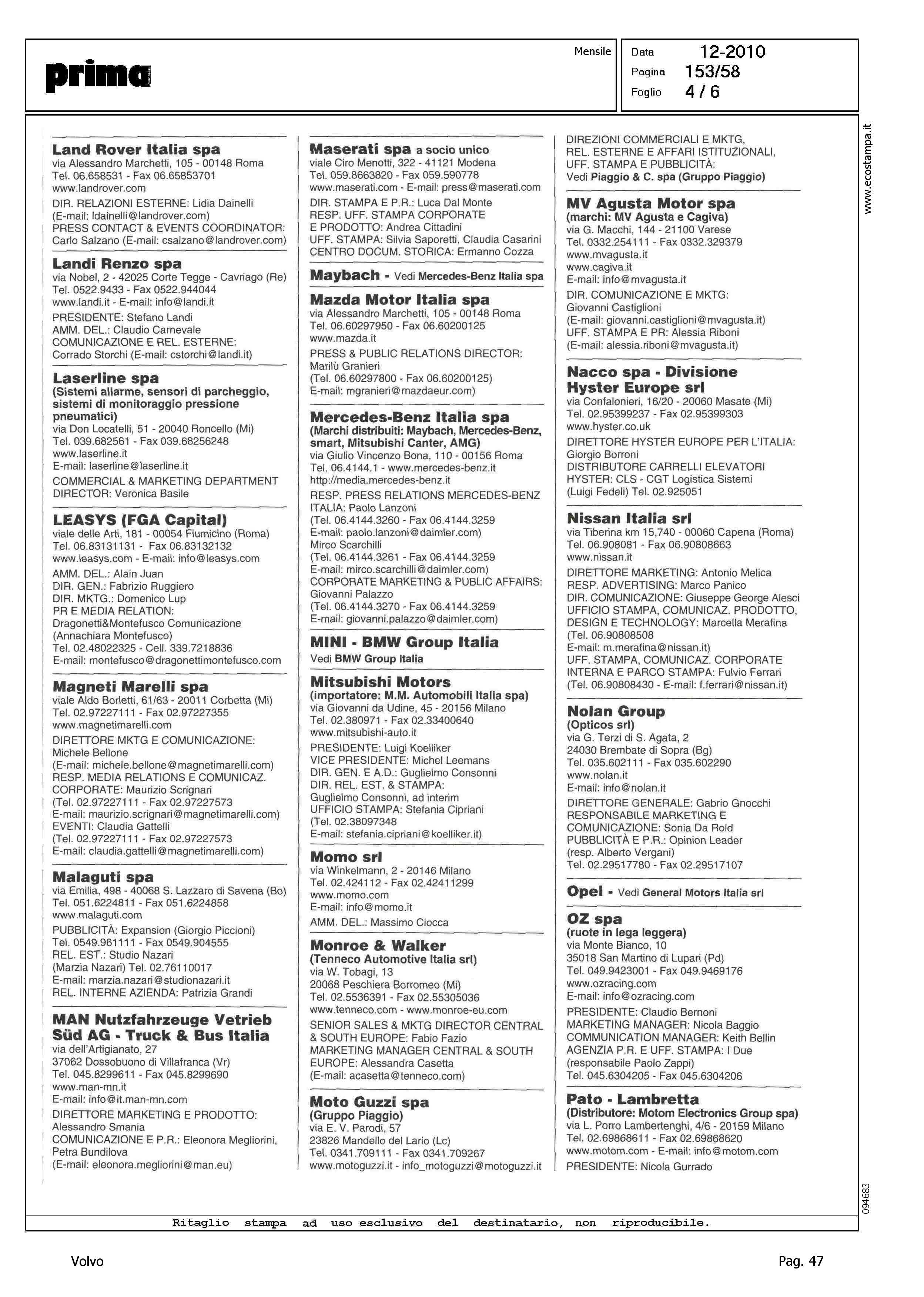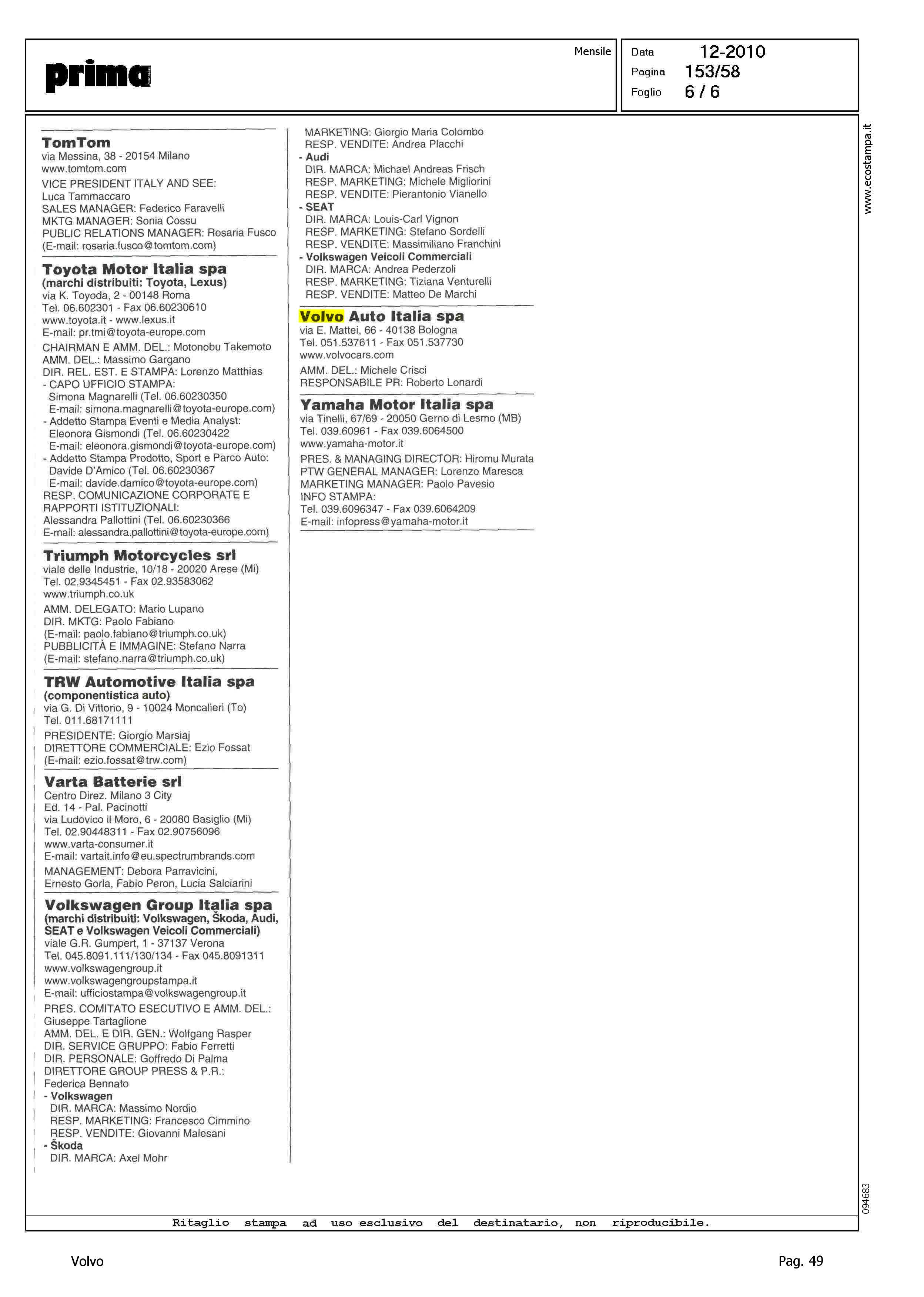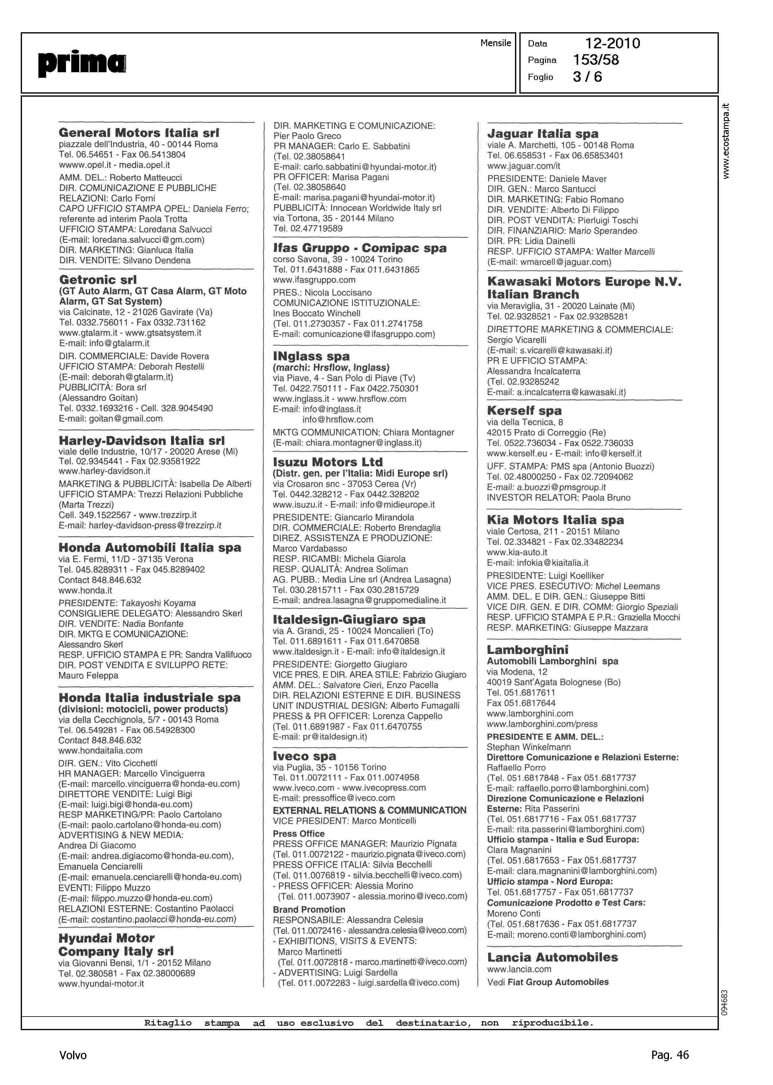 Author: Line: Corporate Model: Corporate Subject: - Title: AUTO, VEICOLI INDUSTRIALI, CICLI E MOTOCICLIHighlight: VOLVO AUTO ITALIA - COORDINATE