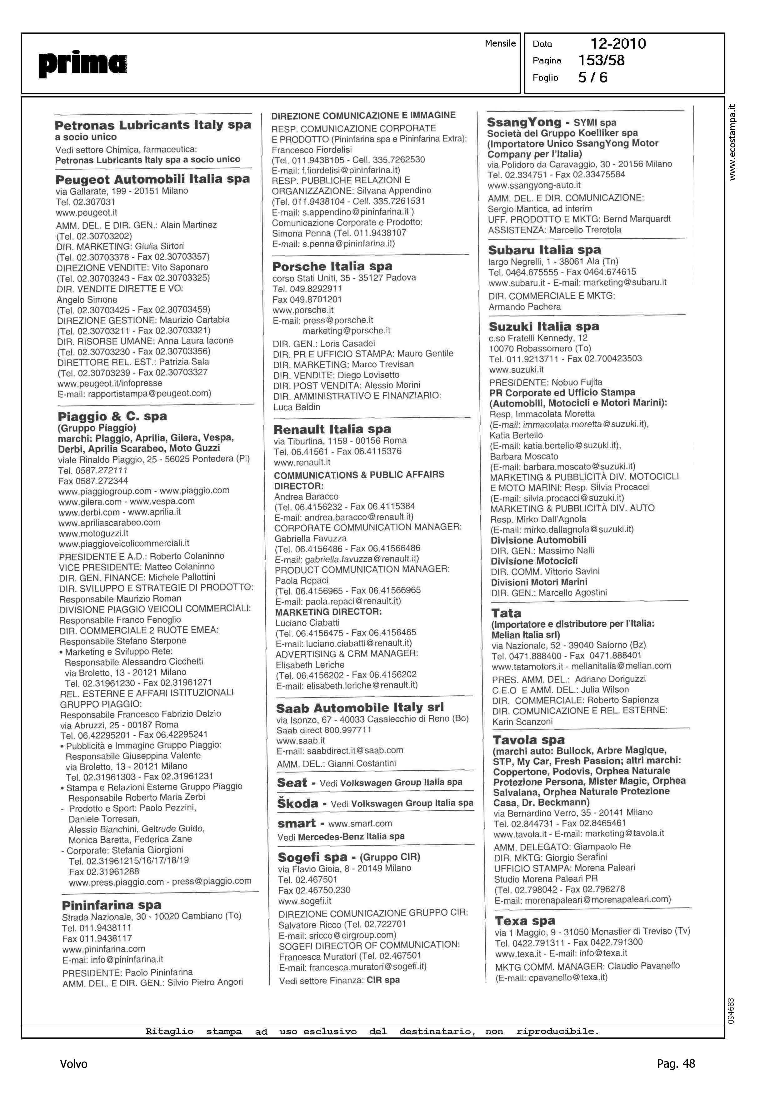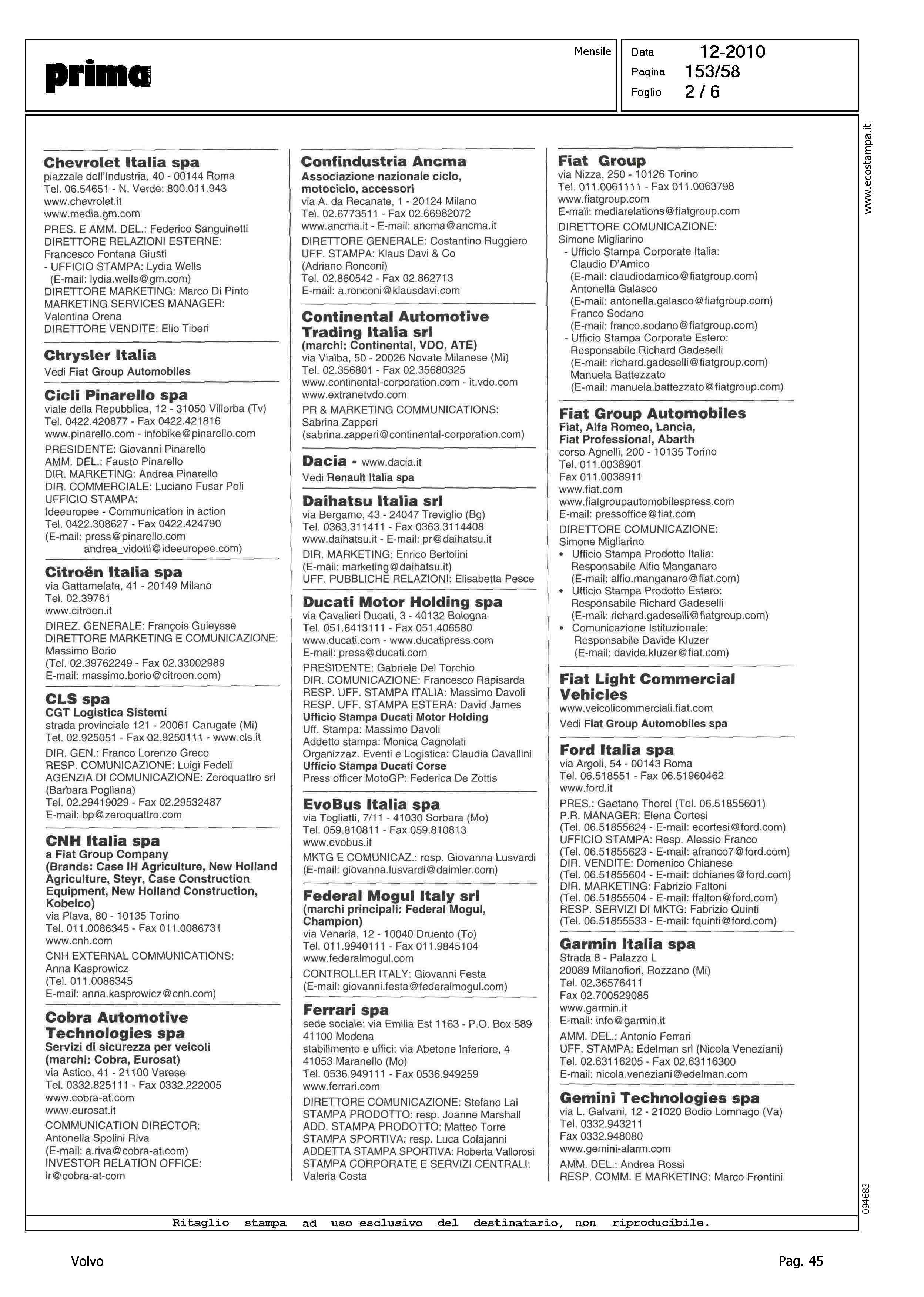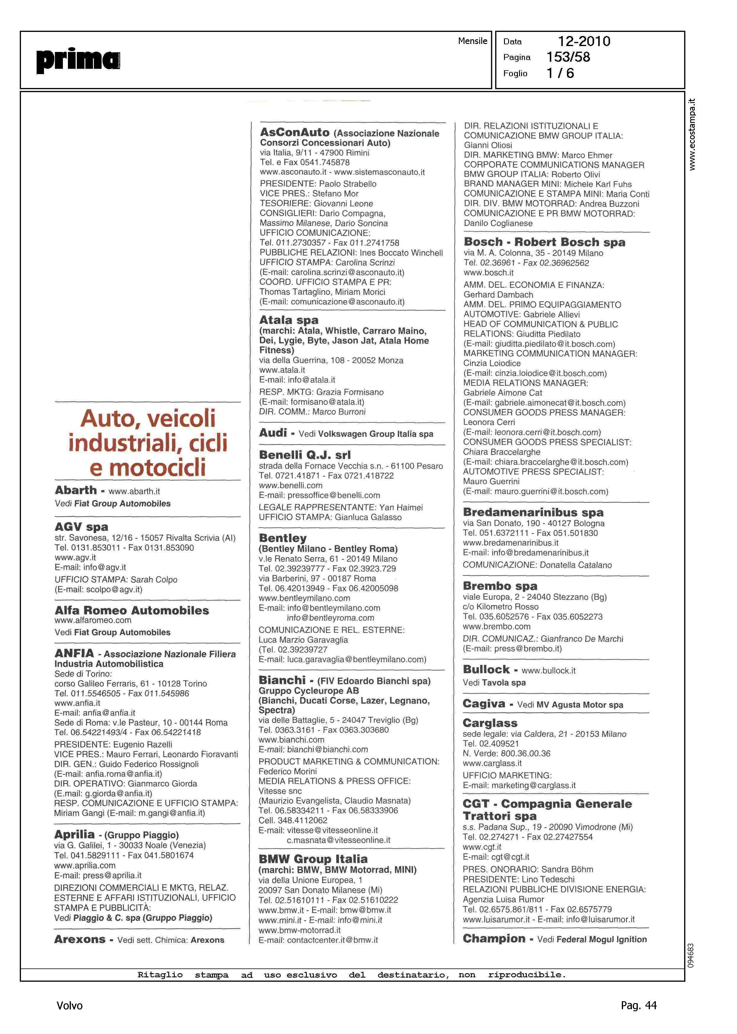 Author: Line: Corporate Model: Corporate Subject: - Title: AUTO, VEICOLI INDUSTRIALI, CICLI E MOTOCICLIHighlight: VOLVO AUTO ITALIA - COORDINATE
