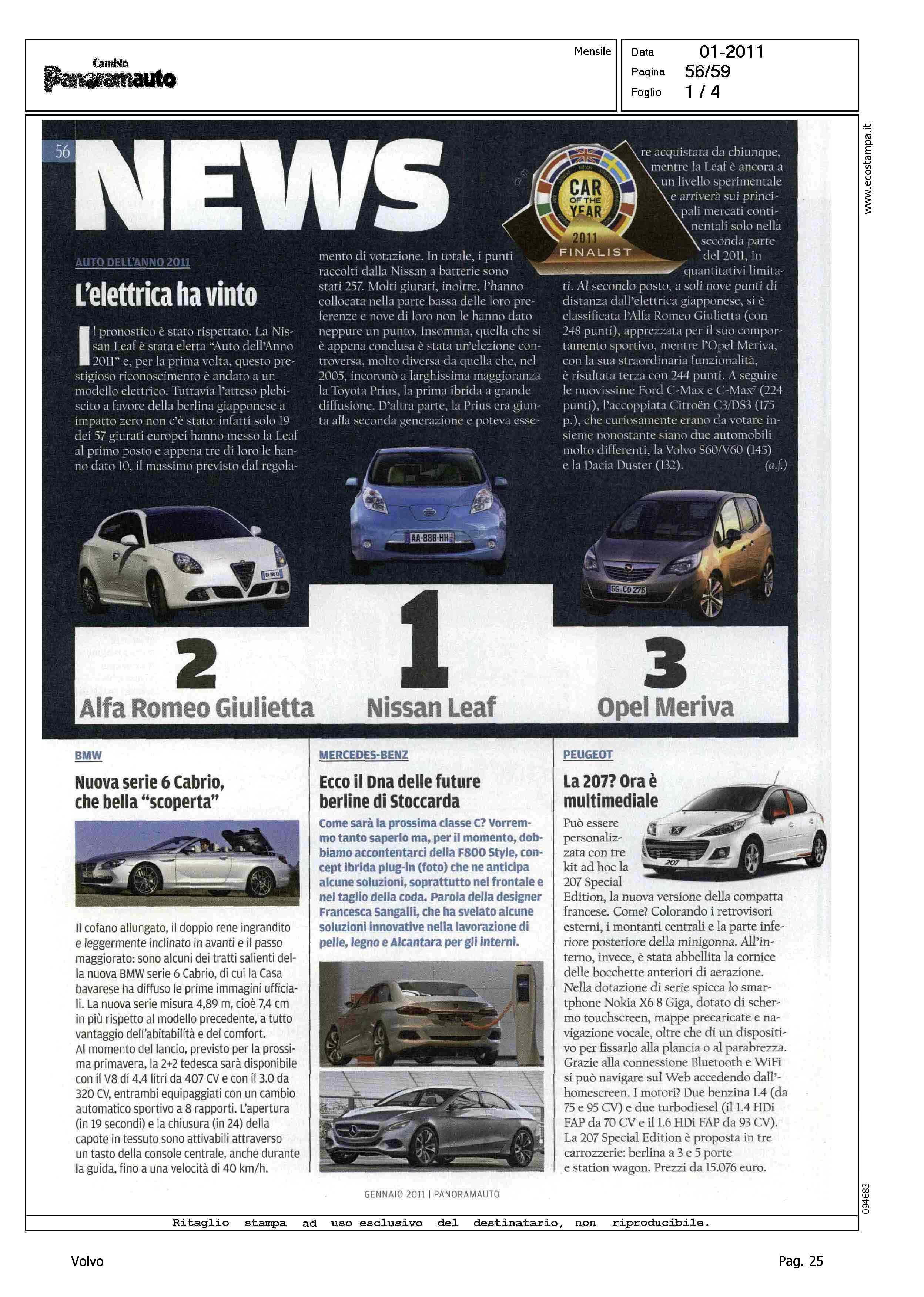 Author: Line: Corporate Model: Corporate Subject: - Title: AUTO DELL'ANNO 2011 - L'ELETTRICA HA VINTOHighlight: ELETTA L'AUTO DELL'ANNO 2011 - VOLVO S60/V60