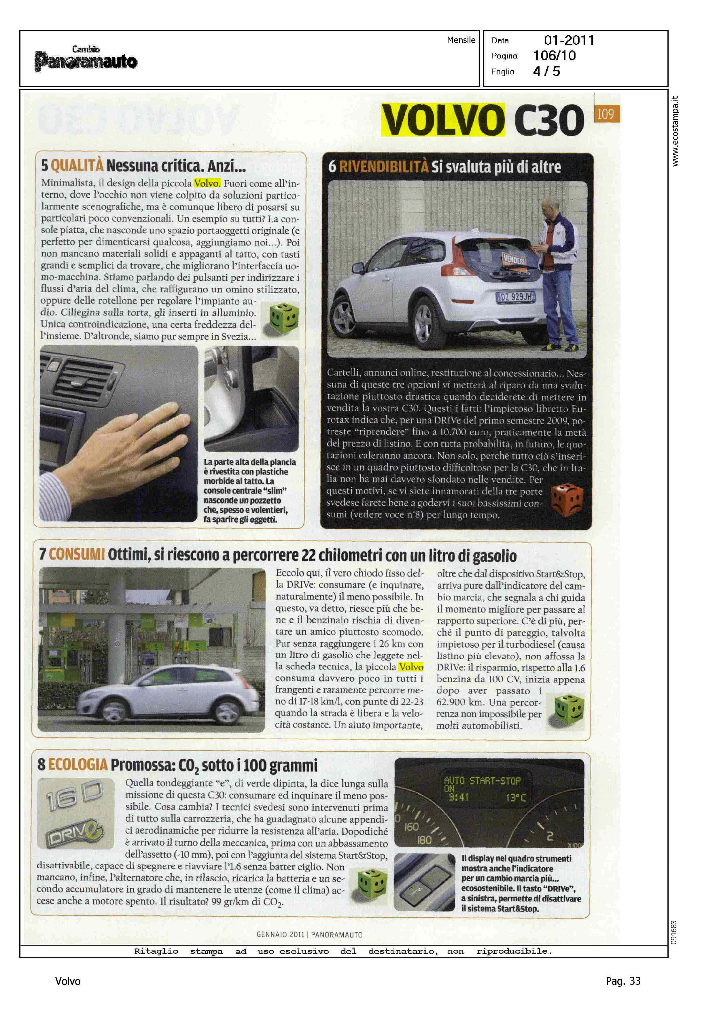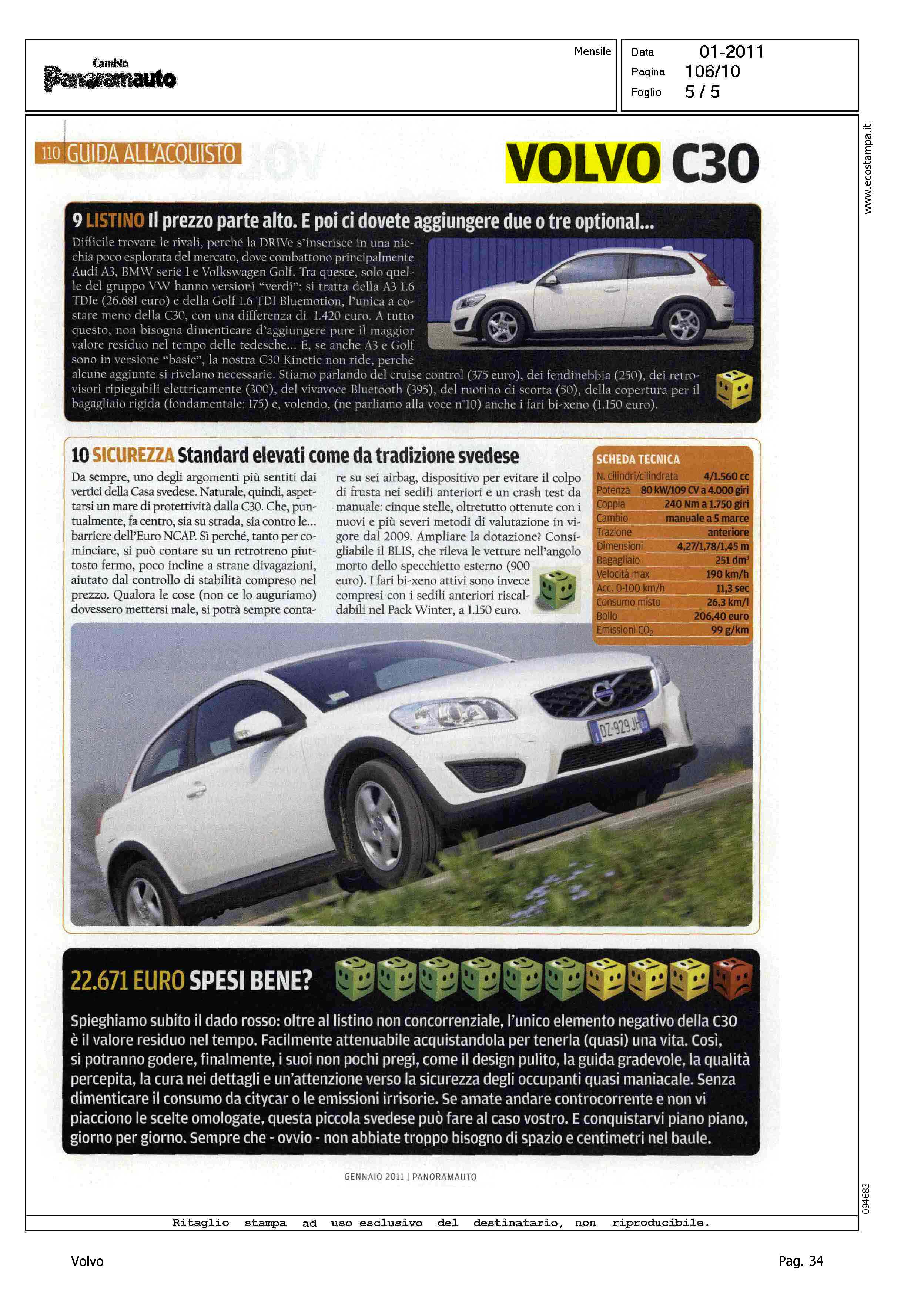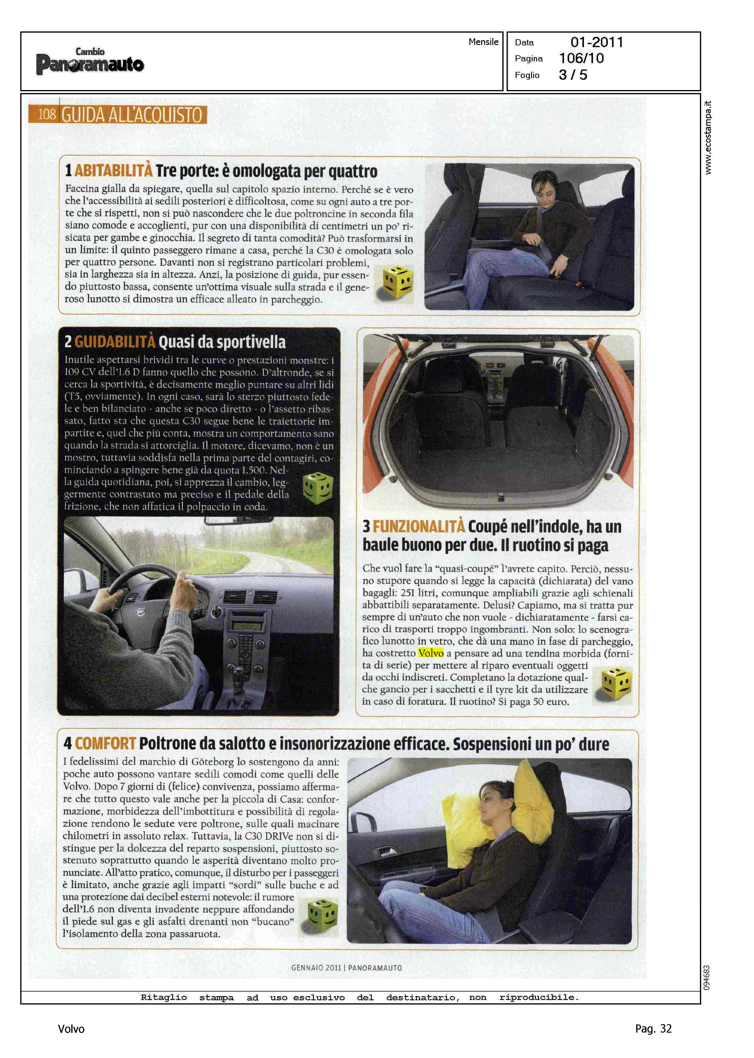Highlight: (USCITA GENNAIO 2011) - GUIDA ALL'ACQUISTO - VOLVO C30 DRIVE KINETIC - SOMMARIO: