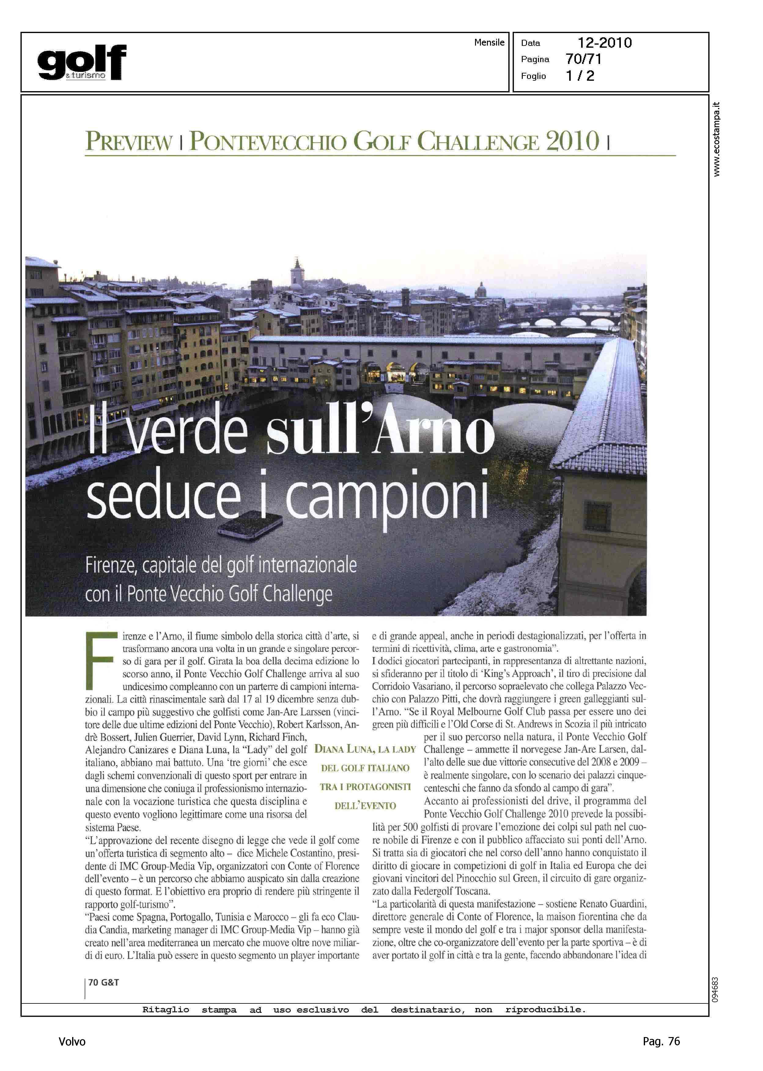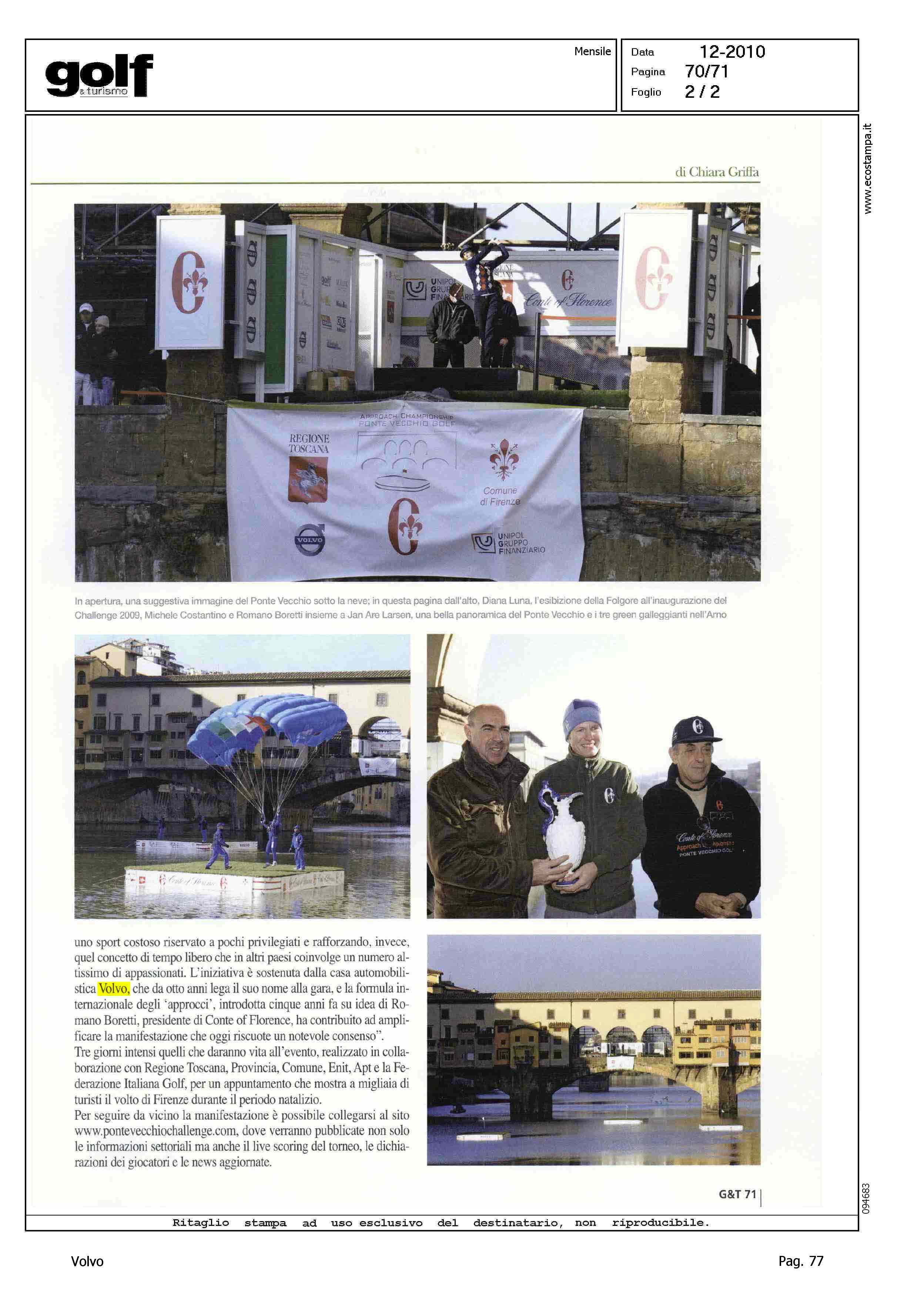Author: Line: Corporate Model: Corporate Subject: Volvo Master Title: IL VERDE SULL'ARNO SEDUCE I CAMPIONIHighlight: VOLVO MASTER - VOLVO CENTER - PONTE VECCHIO CHALLENGE - FIRENZE