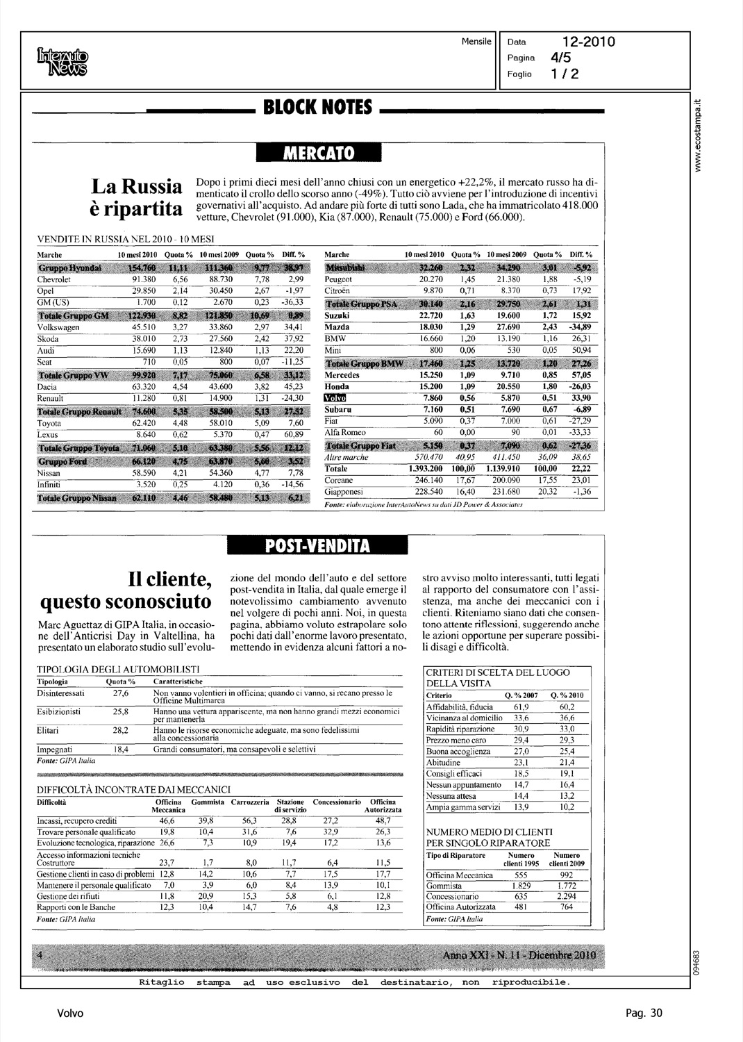 Author: Line: Corporate Model: Corporate Subject: - Title: LA RUSSIA E' RIPARTITAHighlight: MERCATO RUSSO - TABELLA - POSIZIONE VOLVO