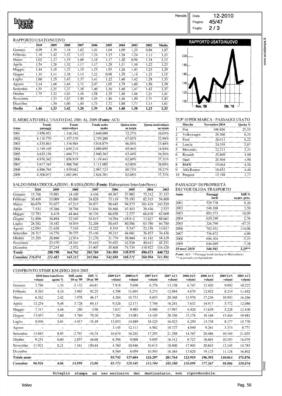 Author: Line: Corporate Model: Corporate Subject: - Title: USATO - PASSAGGI DI PROPRIETA0 IN POSITIVO A NOVEMBREHighlight: MERCATO USATO - TABELLE - POSIZIONE VOLVO
