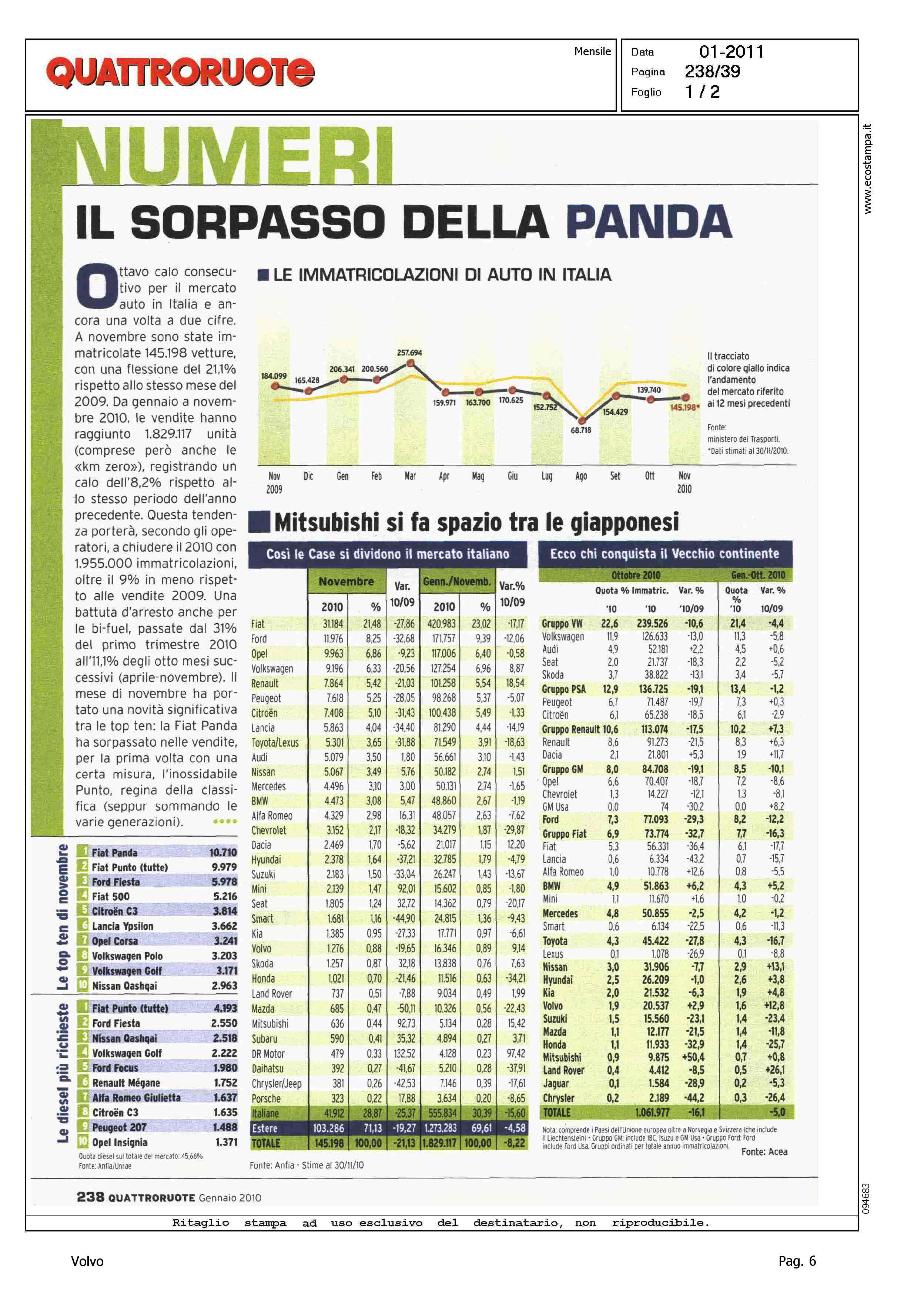 Author: Line: Corporate Model: Corporate Subject: - Title: NUMERI - IL SORPASSO DELLA PANDAHighlight: MERCATO ITALIA - TABELLA IMMATRICOLAZIONI - POSIZIONE VOLVO