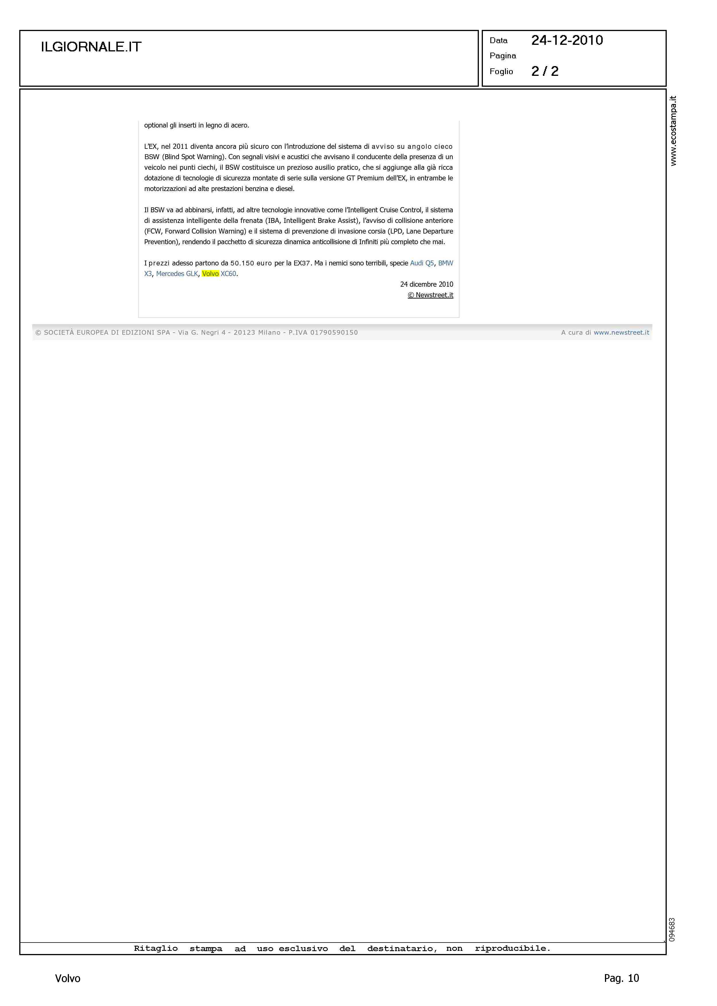 Author: Line: XC60 Model: Subject: - Title: NOVITA': INFINITI EX 2011Highlight: VOLVO XC60 - COMPETITOR - INFINITI EX