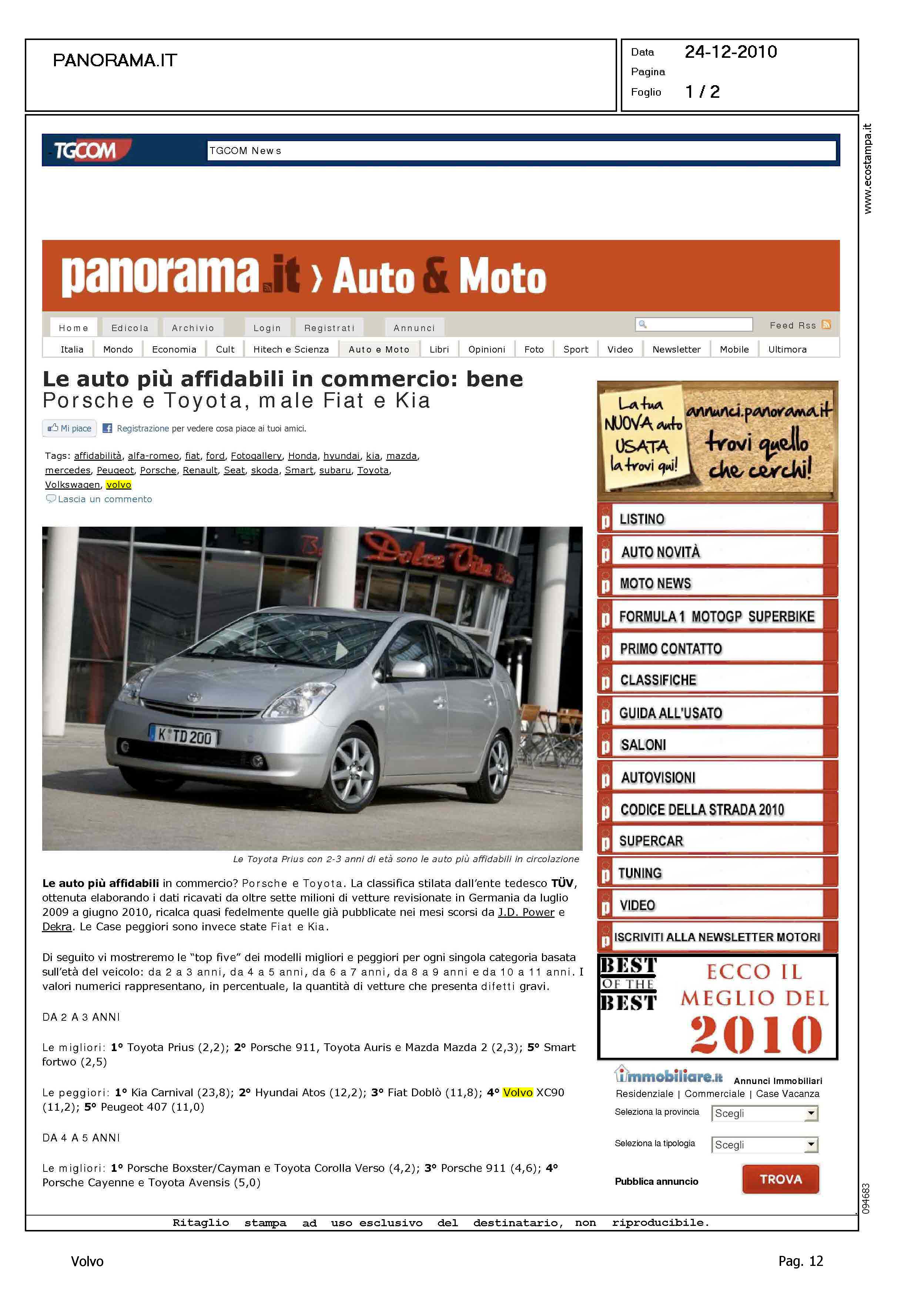 Title: LE AUTO PIU' AFFIDABILI IN COMMERCIO: BENE PORSCHE E TOYOTA, MALE FIAT E KIA
