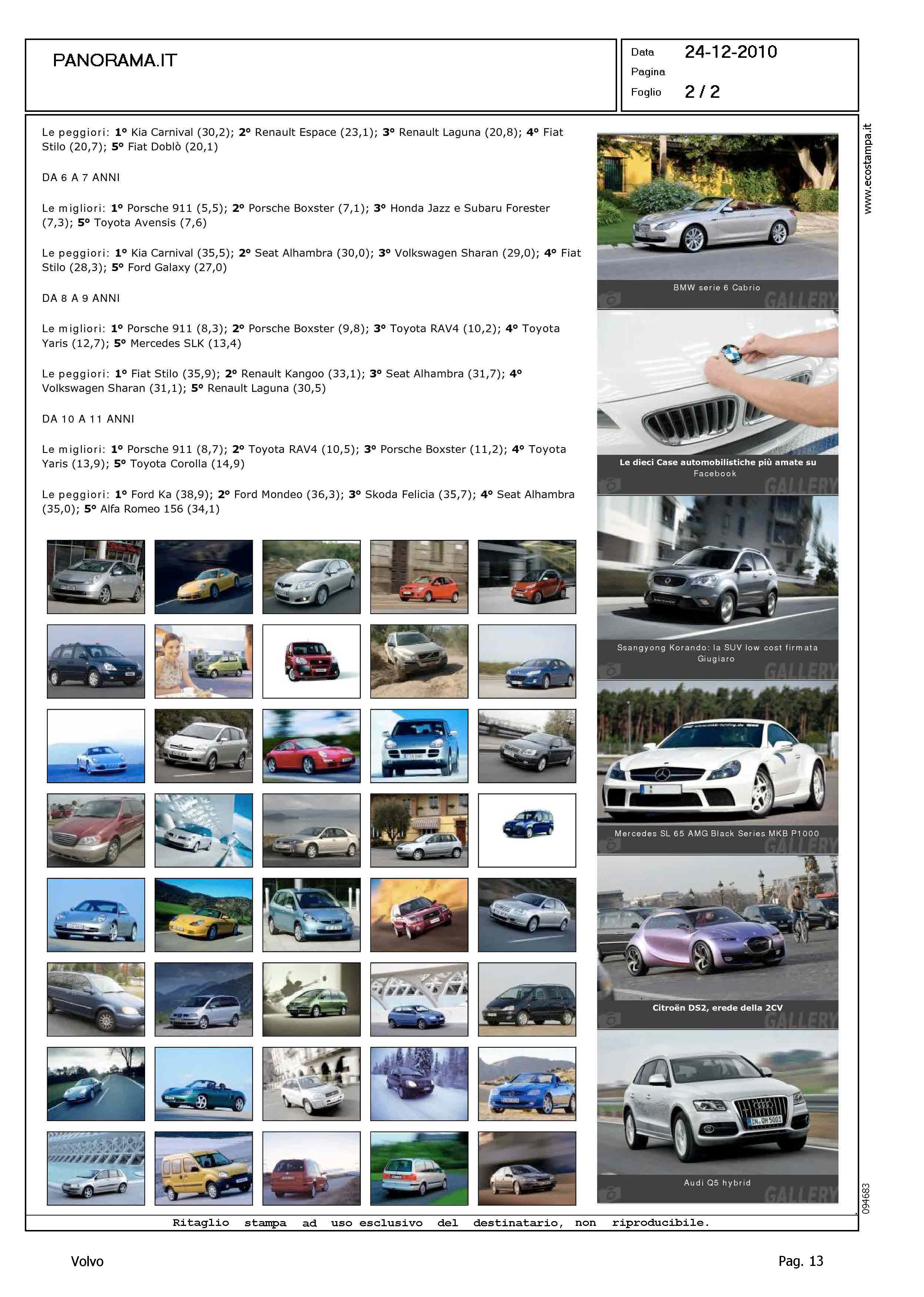 Highlight: CLASSIFICA TUV - GRADUATORIA TOP FIVE - AFFIDABILITA' PER FASCE DI ETA' - POSIZIONE VOLVO, DA 2 A 3 ANNI IN QUARTA POSIZIONE IN CATEGORIA 'LE PEGGIORI' CON 11,2 PUNTI