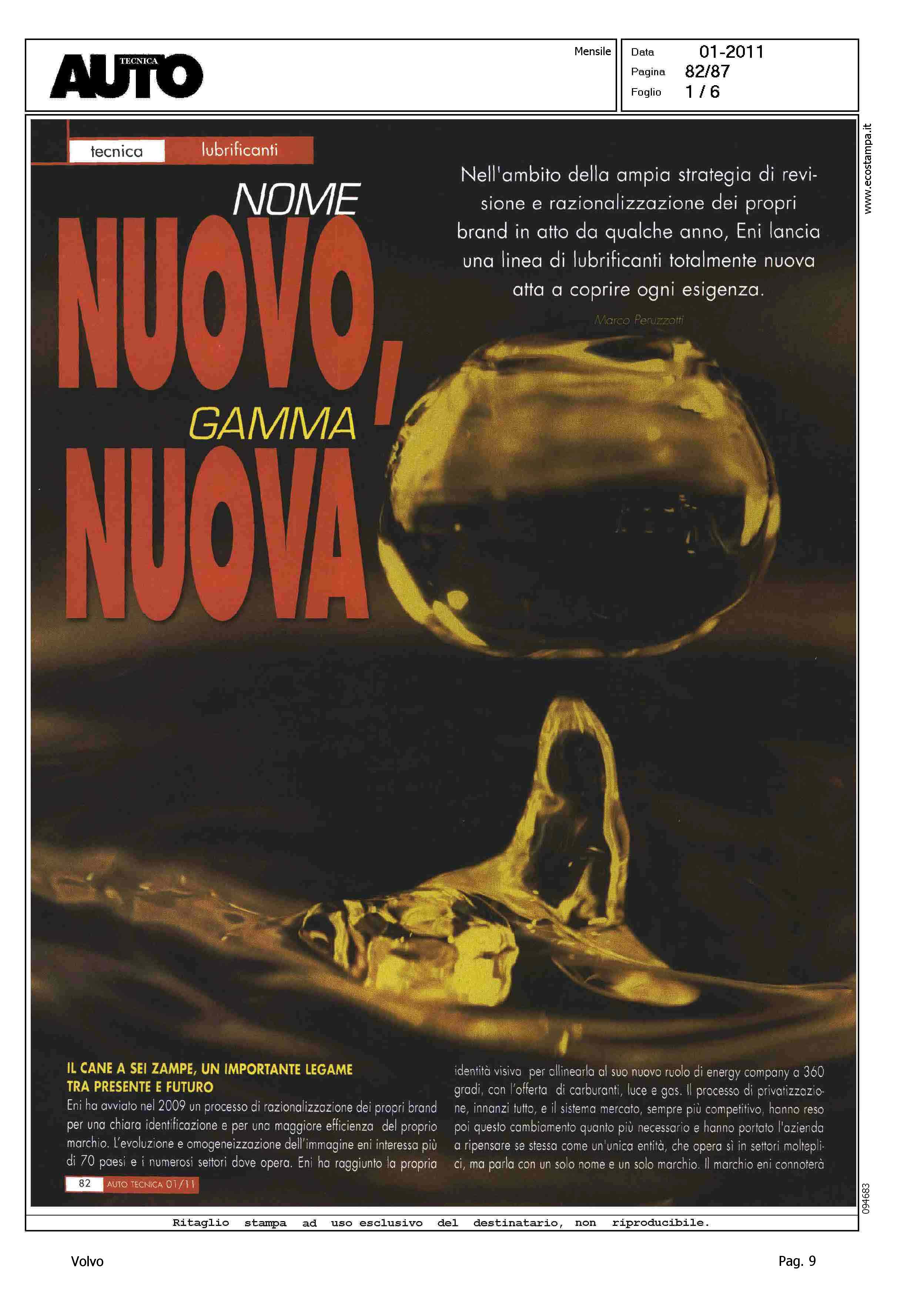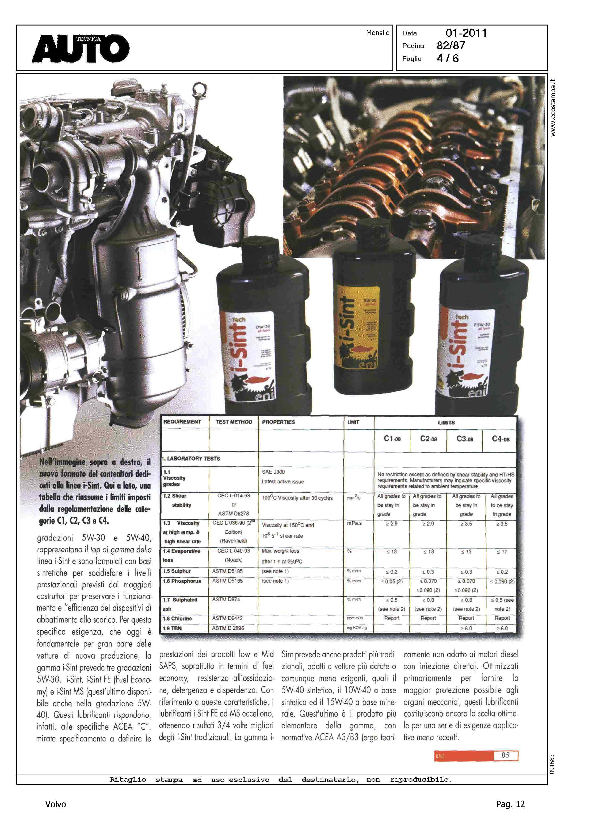 Author: PERUZZOTTI, MARCOLine: Corporate Model: Corporate Subject: - Title: NOME NUOVO, GAMMA NUOVAHighlight: VOLVO - MOTORE FAMIGLIA D - LUBRIFICAZIONE